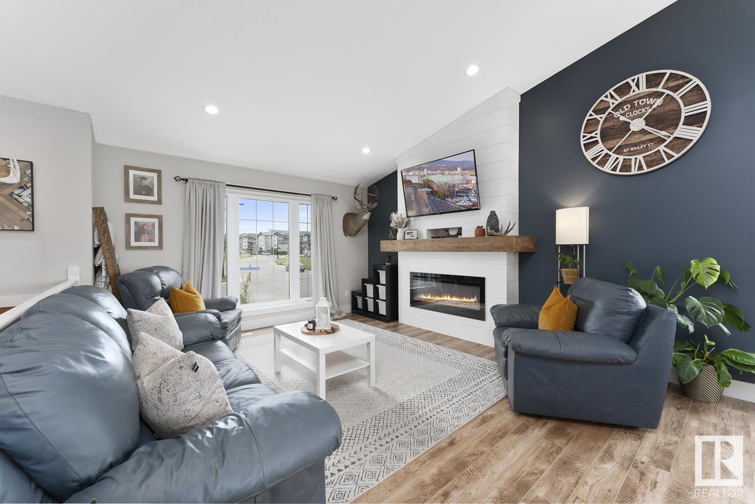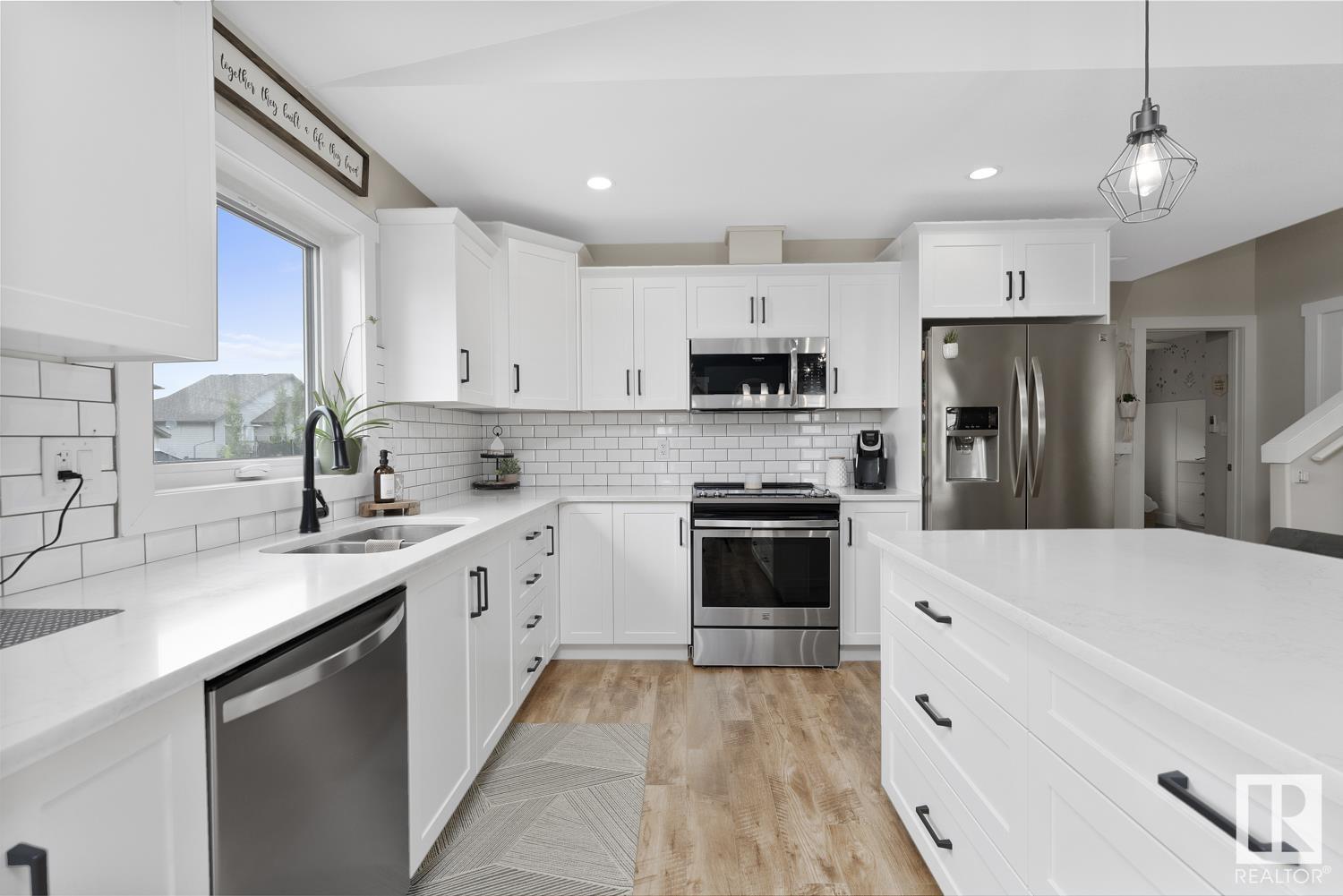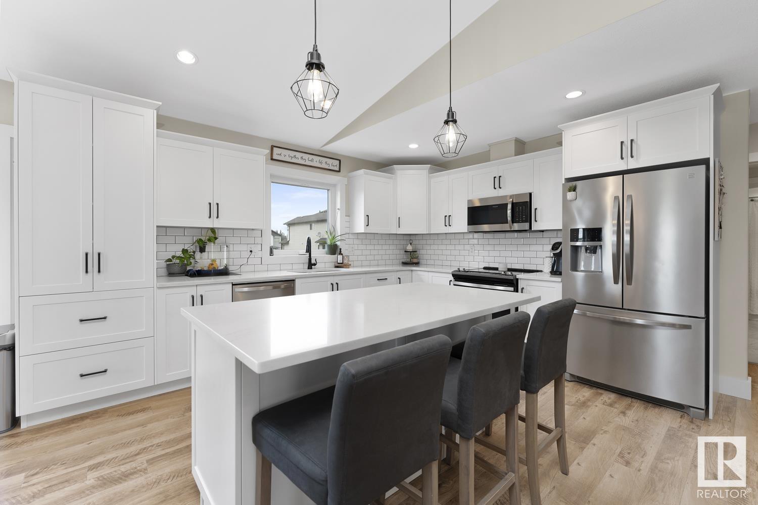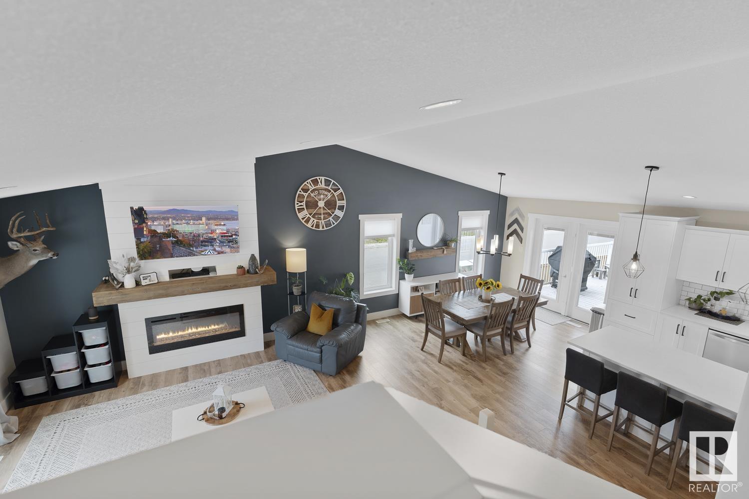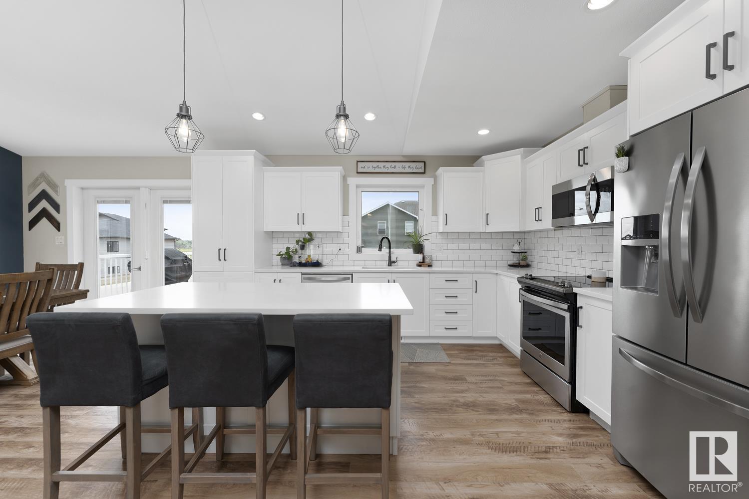This STUNNING,TIMELESS, open concept bi-level can be found in one of the newest Cold Lake North subdivisions know as Parkview Estates! Extra inviting curb appeal situated on a corner lot. Bright entrance with direct access to the heated double car garage. MODERN open concept living/dining and dream kitchen with a large island, custom kitchen cabinets and quartz countertops. Feature wall with the shiplap floor to ceiling fireplace, wood mantel and timeless neutral colors.Patio doors off the dining area to access the main deck overlooking the second patio area and large fenced backyard. Master suite with custom tiled shower, 2 closets and heated floors. Two more bedrooms, 4 pce bath complete this level. Large family room, 4 pce bath, laundry room and 4th bedroom. In floor heat, central air, continues hot water. Walking distance to the to the MD park and the shores of Kinosoo Beach! Add this to your list of MUST SEE! (id:22211)