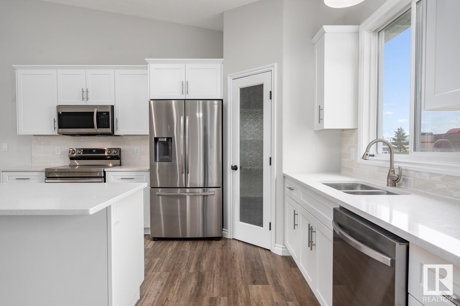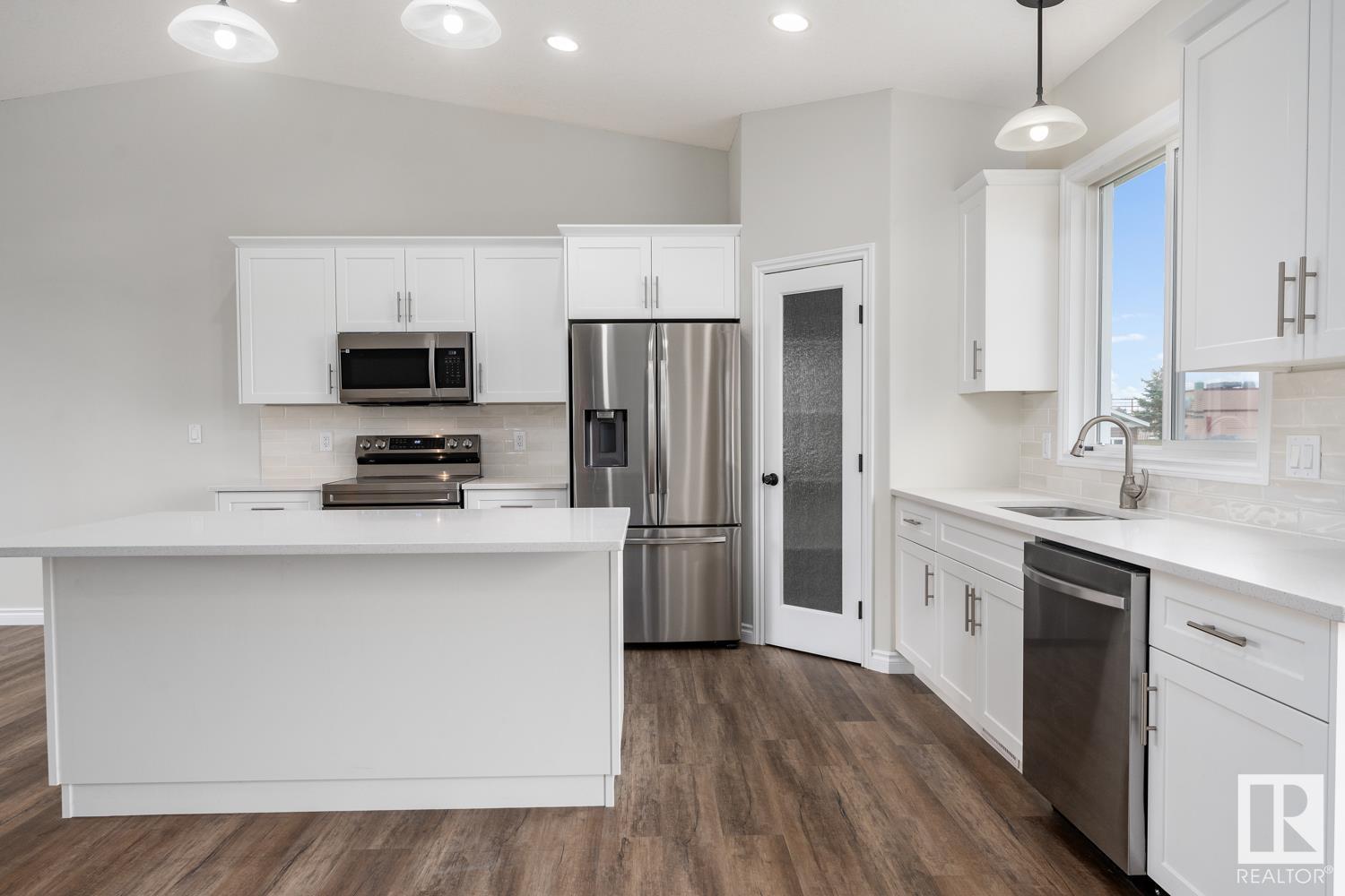 Stunning Bi-level Centrally located in Tri-City Estates! Family friendly neighbourhood, close to the mall, walking trials, public transit and schools. So much to offer and you will fall in love the minute you see it! Updated and fully finished turnkey -- BRAND NEW-- kitchen w/granite counters and eat at island, stainless steel appliances, vinyl plank flooring throughout and freshly painted. Enter into your massive foyer with direct garage access. Grand open concept luxurious living/dining kitchen, bright with natural light and vaulted ceilings. Patio access off the dining area onto the deck overlooking the fenced yard backing onto the green space. Master suite with 3 pce ensuite and walk in closet. Four pce bath with 2 additional bedrooms complete the main level. Downstairs is warmed with infloor heat, massive bright family room, 2 more large bedrooms, 3 pce bath and finished laundry room. Double attached garage. Add this one to the MUST SEE list! (id:22211)