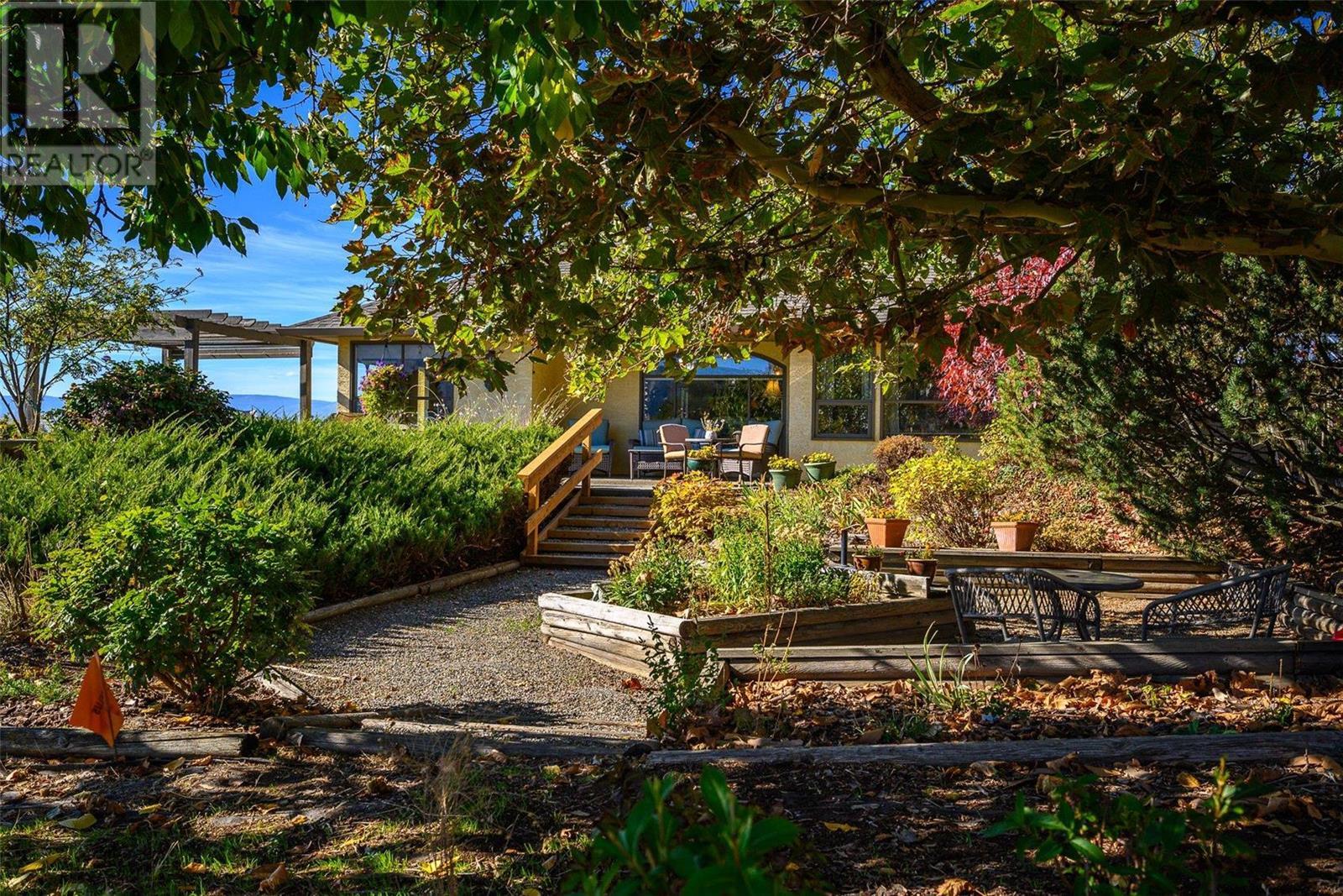 When your lifestyle includes lots of outdoor living, this 1.24-acre property is waiting! You will appreciate the mature landscaping connected with walkways to patios and serene sitting/entertainment areas. Pergola to enjoy the most expansive valley views, sunrise and set! ! Easy, level access driveway with room to develop RV parking and perhaps a shop? Home offers two primary suites! One on the main level- perfect for a parent or mobility issues and one ultra private one on the upper level with fireplace and sitting area! Light filled great room with updated kitchen, casual dining and living room with gas fireplace. Formal dining room too! Harwood and tile floors, lots of deep windows to bring the outside in. The kitchen features Corian counters, 5 burner gas range and huge center island with beverage fridge! Office with built-in murphy bed. Near new gas furnace and central air. Quiet, no-through road ends in cul-de-sac- perfect for children at play! Long established neighborhood of large lots and small acreages. Under 10 mins to schools, beaches, golf and downtown City of Vernon (id:22211)