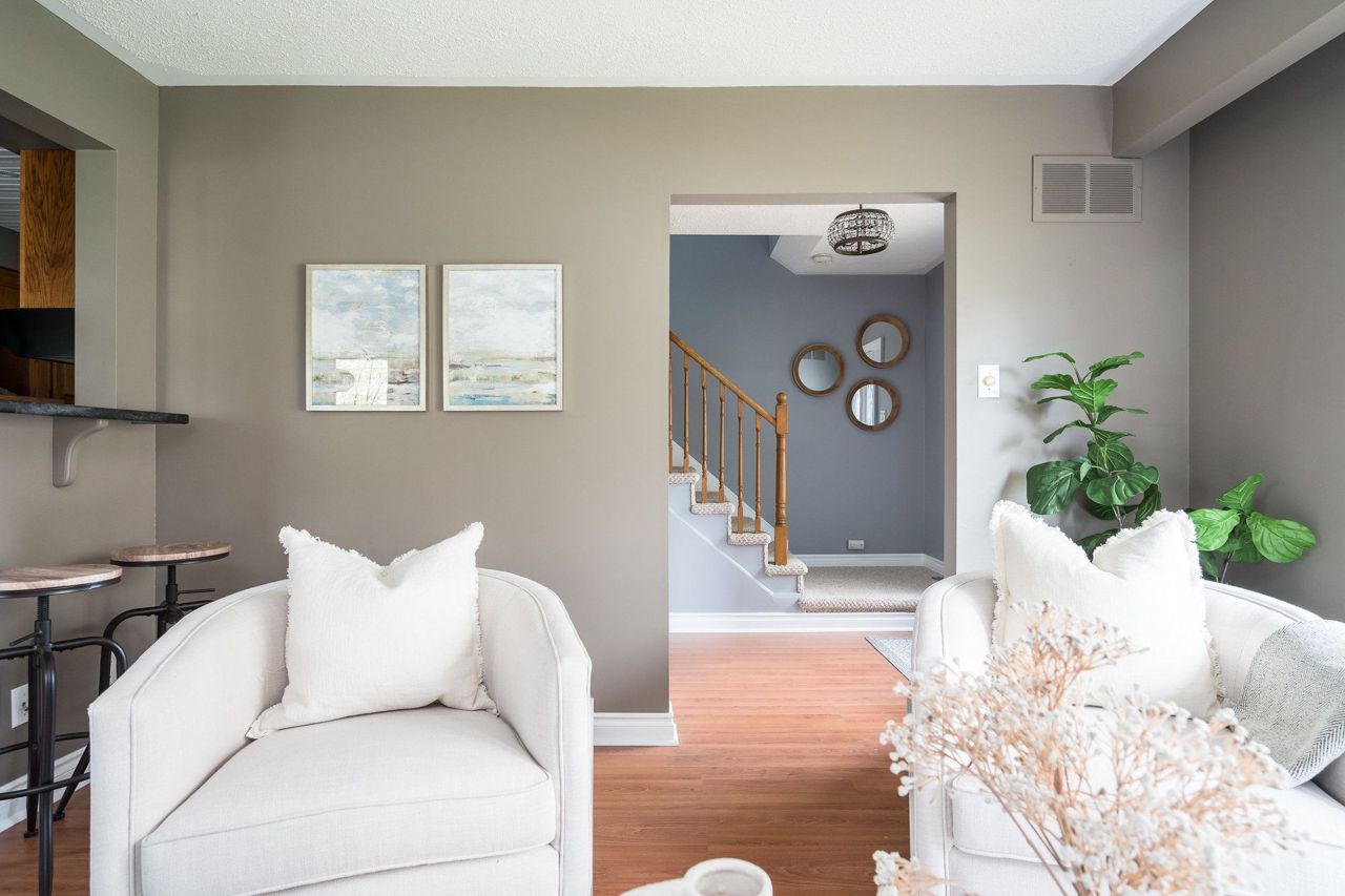 Immaculately maintained 4 bed (3+1) two-storey home in central Collingwood. Renovated kitchen with gas stove and modern appliances. Adjacent dining area with sliding glass door to side yard. Spacious living room for gatherings with friends and family. Second floor with beautiful primary bedroom and double closets. Two additional bedrooms and a bright renovated 4-piece bathroom complete this floor. Finished basement with family room, 4-piece bathroom, den/bedroom, laundry, storage. Egress window in family room for lower level versatility. Fully fenced private backyard with patio, retractable awning, mature trees, gardens. Immaculate garage for parking/storage. Low maintenance exterior. Upgraded windows, doors, furnace, AC for peace of mind and energy efficiency. Short walk to trails, local parks. Close to downtown, shops, restaurants, ski hills, Georgian Bay waterfront. Ideal for new families or downsizing.