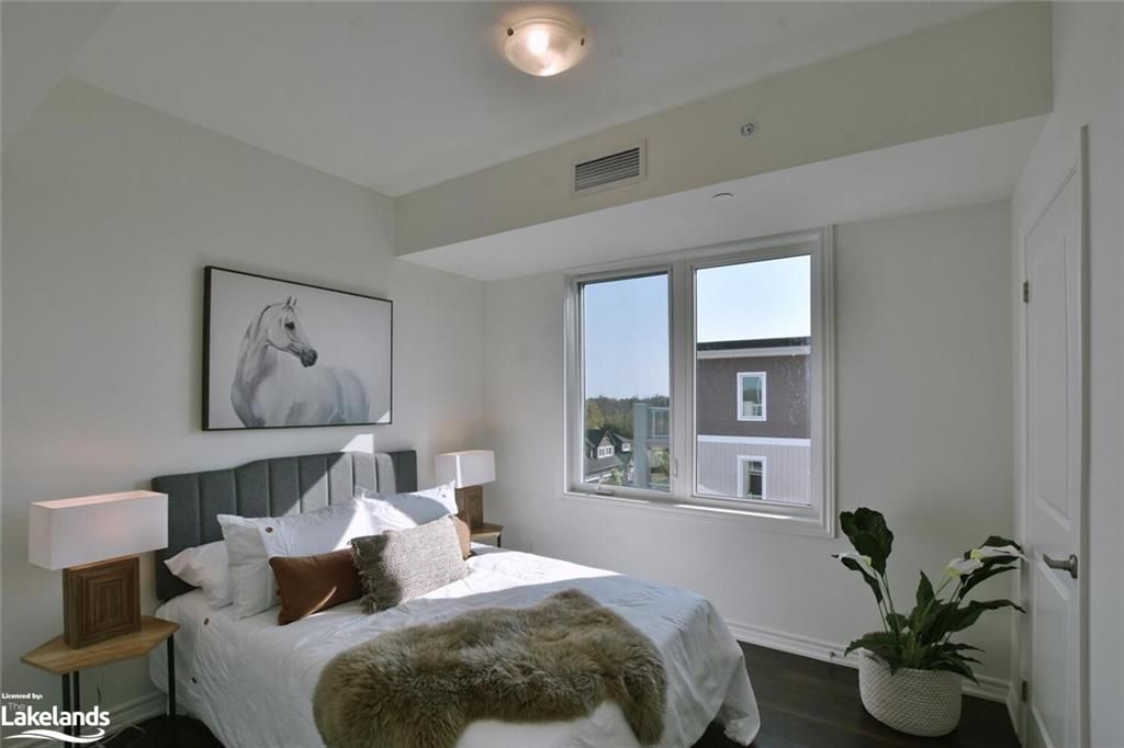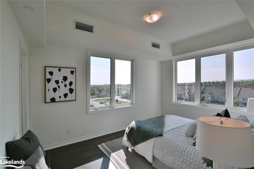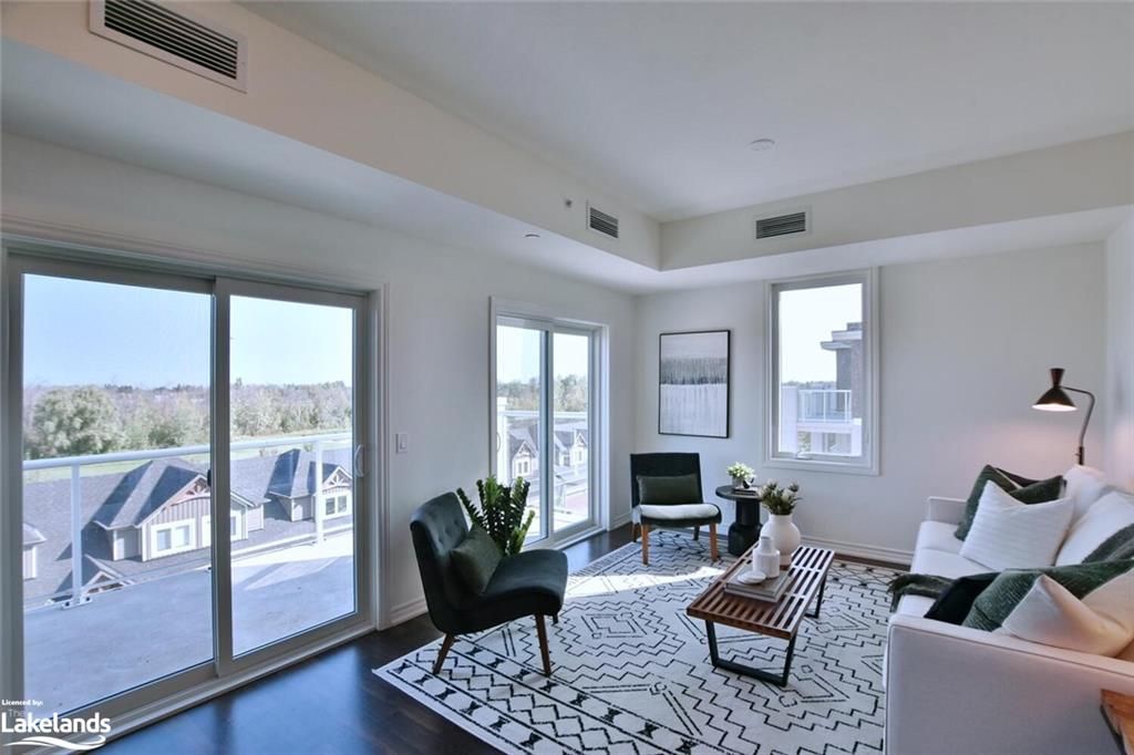 2,99% BUILDER FINANCING AVAILABLE. 2 YEAR TERM. PAYMENTS AS LOW AS 1835/MO* BRAND NEW CONDO AT THE VIEW with UNDERGROUND PARKING! TOP FLOOR, CORNER UNIT WITH 3 WALLS WITH WINDOWS AND GORGEOUS VIEWS! Just completed, and READY TO MOVE IN, this lovely Artisan floorplan has a large, private 17'x8' balcony with glass railings. Located in Blue Fairway, a gorgeous development nestled in the Cranberry Golf Course. The condo boasts laminate and tile floors, 9' ceilings, granite tops in kitchen and both bathrooms, upgraded appliance package (6) with gas stove, soaker tub in ensuite, gas heat and central air, gas line for future BBQ on balcony. Each unit has its own storage locker. The View is close to the Georgian Trail, Cranberry Mews for shopping and restaurants within walking distance. 15 Minutes to ski hills, 5 min to downtown Collingwood or cycle into town on your bike. Numerous beaches and golf courses nearby. One assigned underground parking space. Garbage removal included in condo fees. Brand new pool and fitness center nearing completion for use by View owners. Built by MacPherson Builders. Easy to tour! * on approved credit. Minimum $80,000 down. NO APPRAISAL FEES! Call LB for more details.