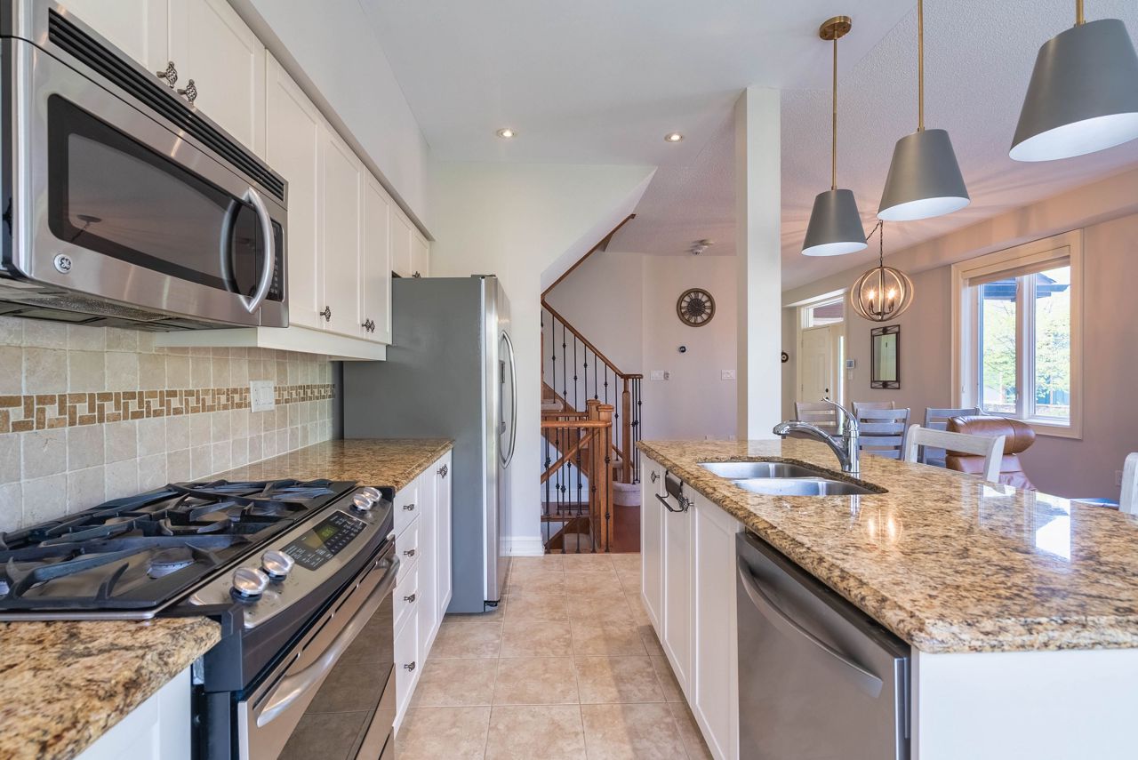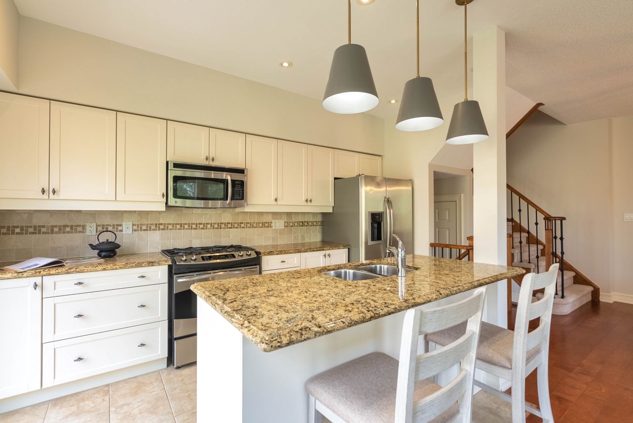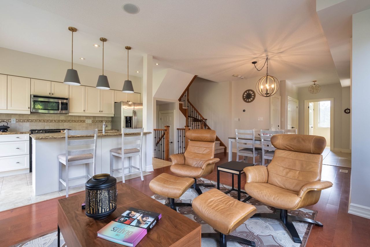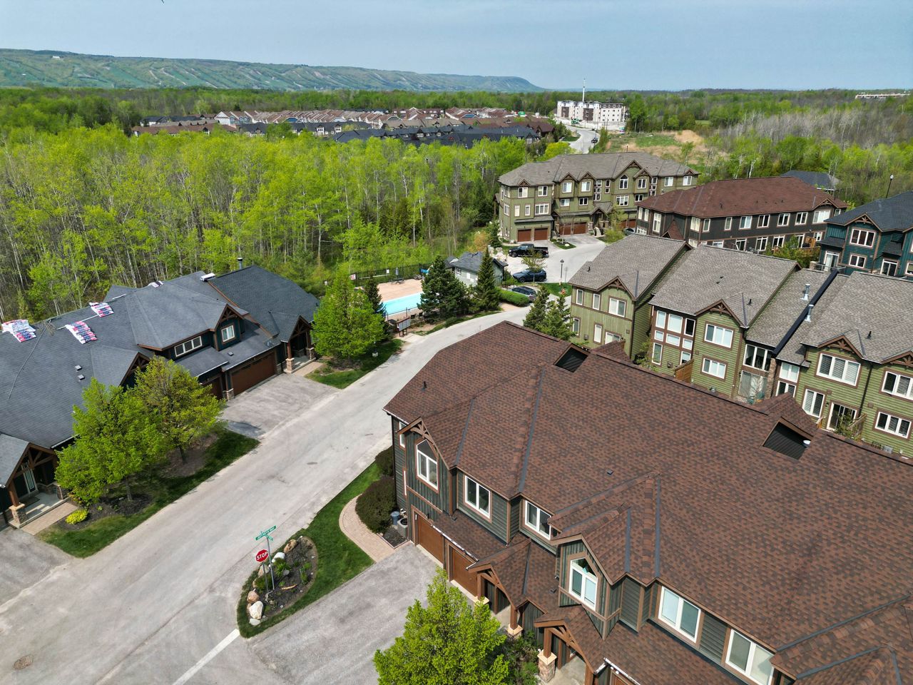 Stunning end-unit home in the sought after Tanglewood estates in Collingwood. Minutes from Ski Hills, Historic Downtown, Waterfront, and walking/biking trails. This home is an entertainer's dream, only steps to the outdoor heated pool and the golf course. This 4 bed, 2.5 bath home has large windows, offering natural light throughout and mature trees for privacy. The living room has beautiful hardwood floors, an updated kitchen with granite countertops, a large island, and a gas stove. A multiroom sound system with speakers on the main level, backyard, and master bedroom is included. This home is equipped with a smart home technology alarm system. Upstairs, the spacious primary bedroom features a 4-pc ensuite. The basement has potential with a rough-in for a future fourth bathroom. Updated deck is 12’ by 20’.6 with a new privacy fence, and a natural gas hook-up for the BBQ. Central vac. Large single car garage with plenty of space. This quiet neighborhood requires little maintenance.Monthly maintenance fees are $638.13 that include exterior maintenance/repairs, snow removal, lawn maintenance, visitor parking, and outdoor pool access.
