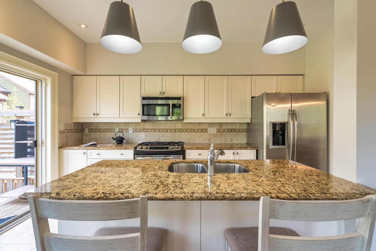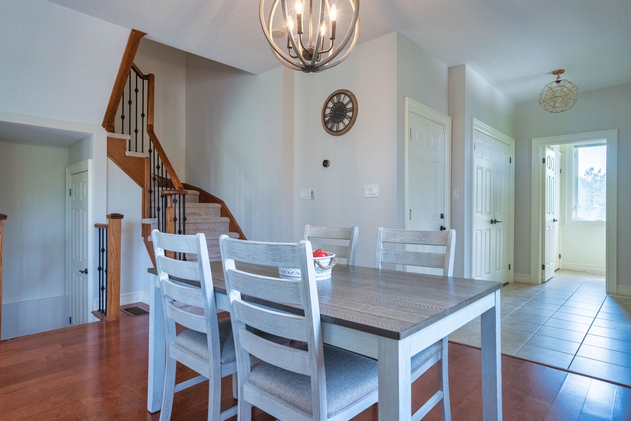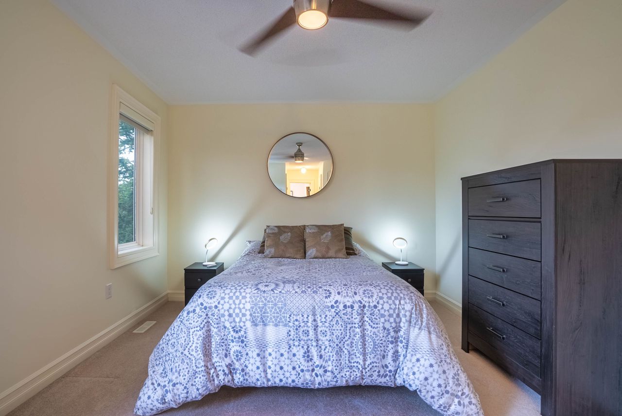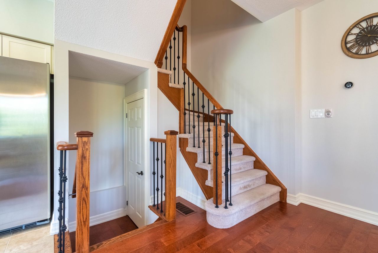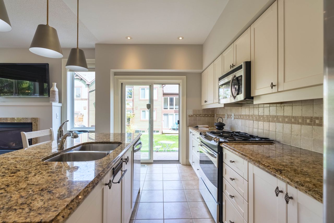 Stunning end-unit home in the sought after Tanglewood estates in Collingwood. Minutes from Ski Hills, Historic Downtown, Waterfront, and walking/biking trails. This home is an entertainer's dream, only steps to the outdoor heated pool and the golf course. This 4 bed, 2.5 bath home has large windows, offering natural light throughout and mature trees for privacy. The living room has beautiful hardwood floors, an updated kitchen with granite countertops, a large island, and a gas stove. A multiroom sound system with speakers on the main level, backyard, and master bedroom is included. This home is equipped with a smart home technology alarm system. Upstairs, the spacious primary bedroom features a 4-pc ensuite. The basement has potential with a rough-in for a future fourth bathroom. Updated deck is 12’ by 20’.6 with a new privacy fence, and a natural gas hook-up for the BBQ. Central vac. Large single car garage with plenty of space. This quiet neighborhood requires little maintenance.Monthly maintenance fees are $638.13 that include exterior maintenance/repairs, snow removal, lawn maintenance, visitor parking, and outdoor pool access.