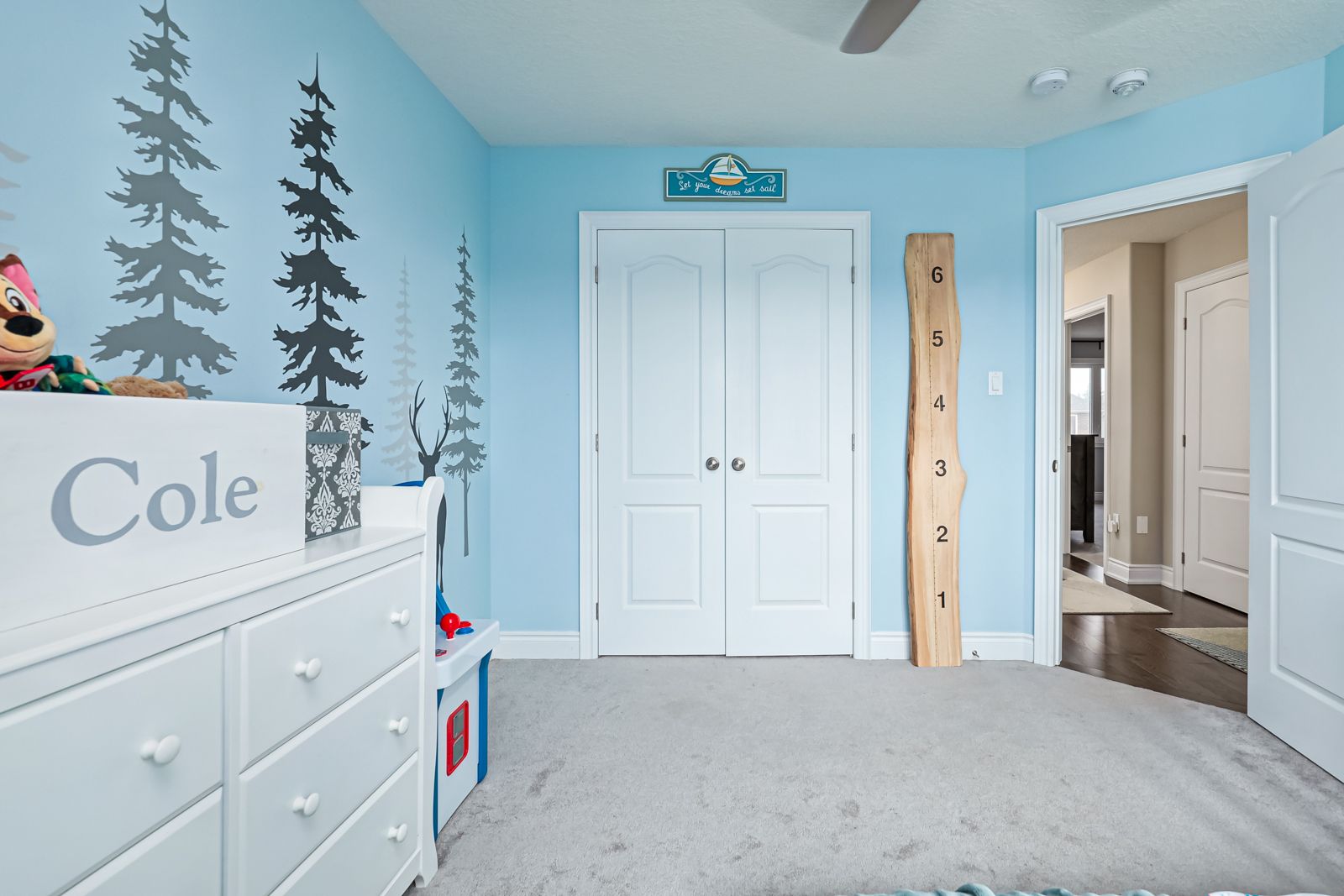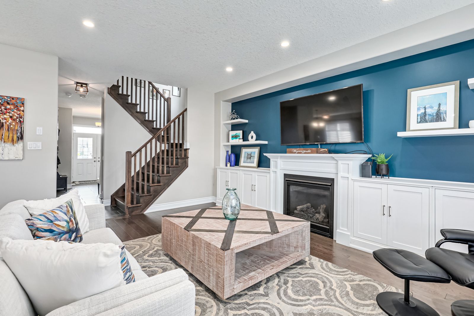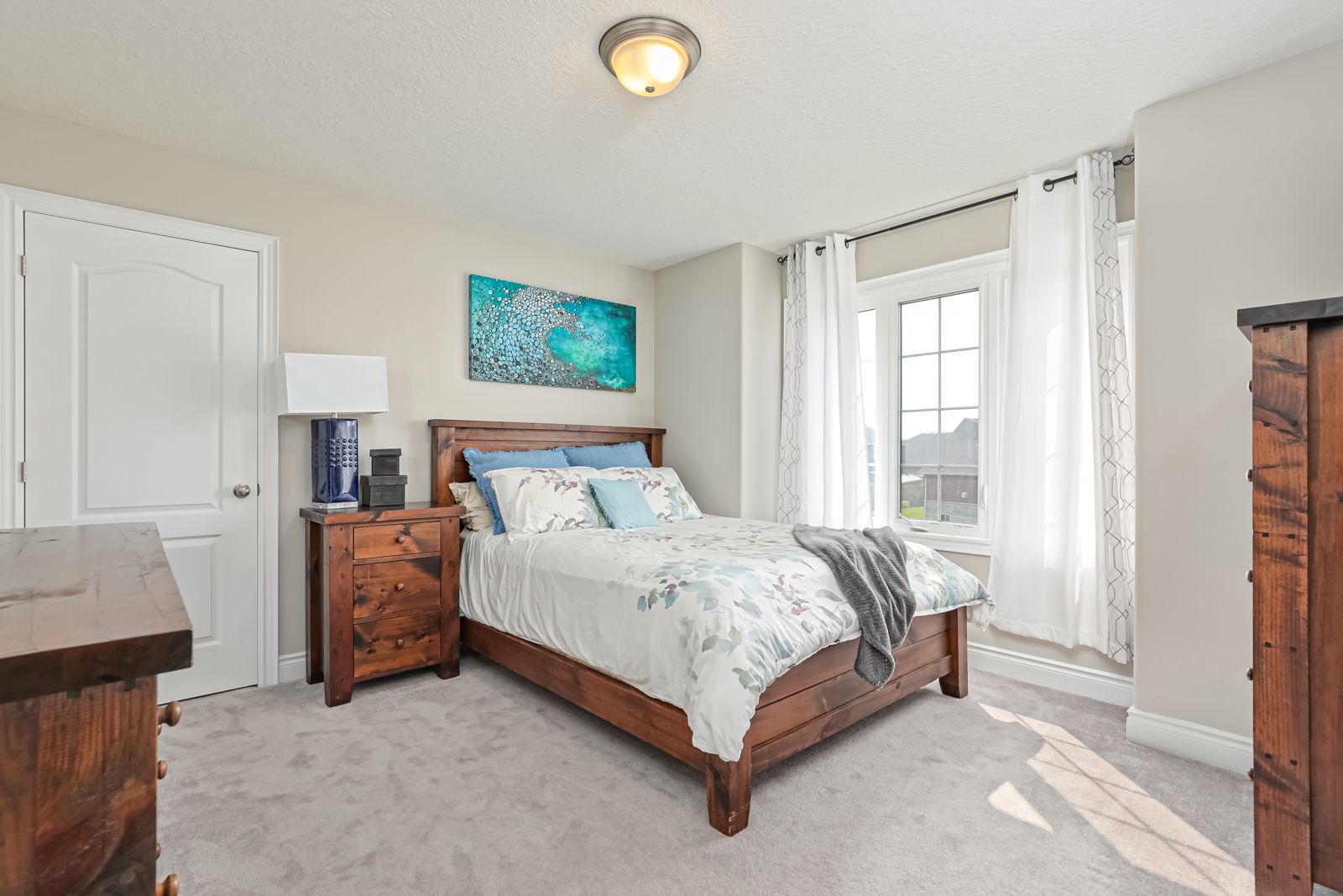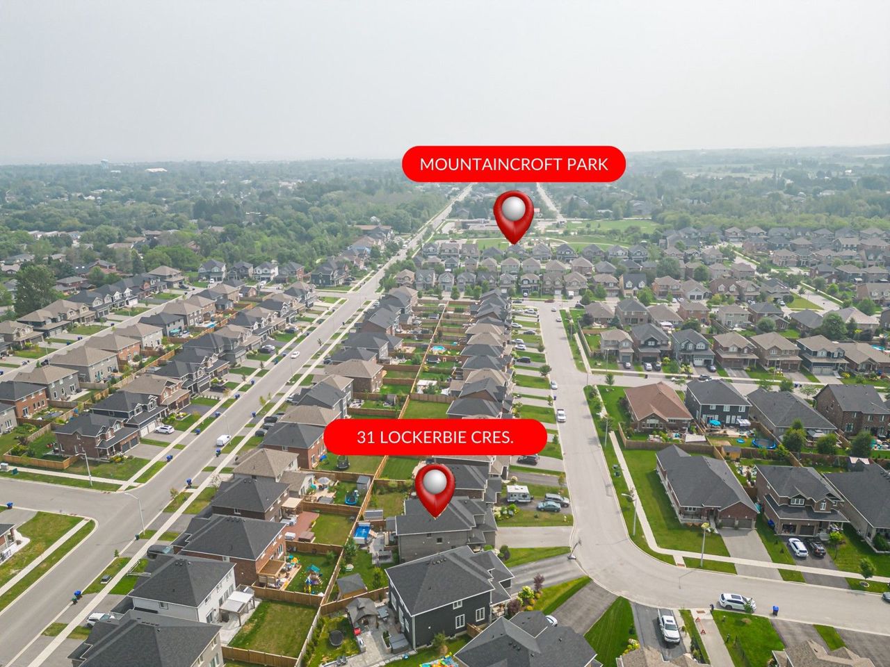 31 Lockerbie features 4 bed, 2.5 bath, upstairs laundry with granite counters & plenty of space to fold. The main floor offers a spacious tiled entry way through the front door or use your mudroom through the garage; the livingroom is highlighted by the gas f/p, built in storage, pot lights, hardwood floors and California Shutters. The beautiful kitchen provides plenty of space to cook, while still entertaining with s/s appliances (gas stove), built-in microwave, double sink, quartz counters, soft close drawers, upgraded light fixtures a space to add a bar area all leading into the spacious dining area with walk-out to the professionally designed landscaped backyard with Timber Frame covered deck, stone patio, Swim Spa, shed and fully fenced. Upstairs the Primary Bedroom provides lots of space with your own walk-in closet ensuite with glass shower, stone counters. All windows throughout the home have an upgraded colour from the builder with upgraded casement windows in every room.The bsmnt is unfinished but owners paid to increase the ceiling height & have 5 full sized larger windows. Located steps away from the park, trail access &more, family friendly Mountaincroft Subdivision has everything you're looking for