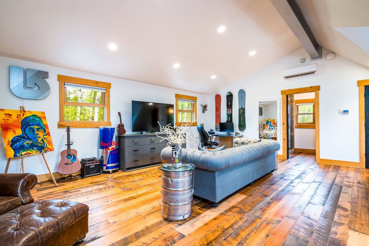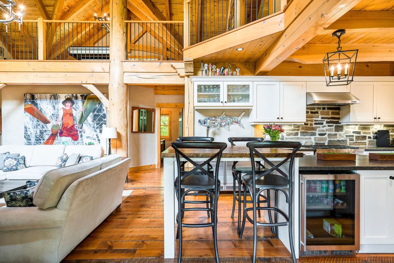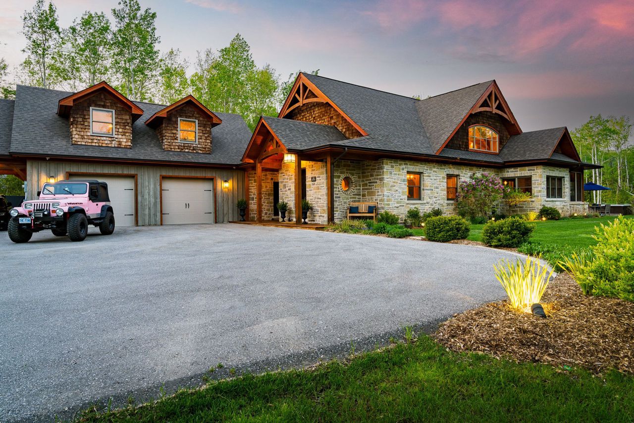 Live in this 4-season playground in desirable Collingwoodlands. This mountain-style home, created by a visionary builder & passionately tended by its current owners, is one of a handful of properties in Ontario built with Hempcrete. Named The Joint, in honour of its unique construction, it looks like a traditional timber frame home but it's 12" walls allow efficiency, thermal regulation & humidity control all year. Beautiful maintenance free clay walls have no off-gassing materials lending to the ultimate clean air home. Soaring timber ceilings wow in the open concept living space. The stonework, from exterior walls & amazing grotto-like showers to the kitchen backsplash is stunning. The kitchen features beer taps, wine fridge & cozy ambiance. A huge loft is a play space w/pool table, music area, office & separate room for a gym or bedroom. A separate living space over the garage is a teenage retreat, in-law or guest suite. Outdoors offers a sunken stone patio w/dining, living, sundeck& hot tub area. The private yard is surrounded by towering trees, irrigated perennial & raised garden beds & sprawling lawns. At the back of the property, is a professionally designed snowboard track with start gate & stadium lighting.