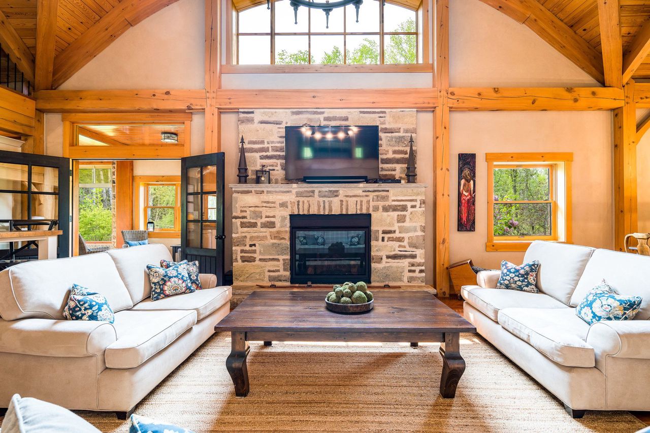 Cathedral Ceiling Hardwood Floor Gas Fireplace
