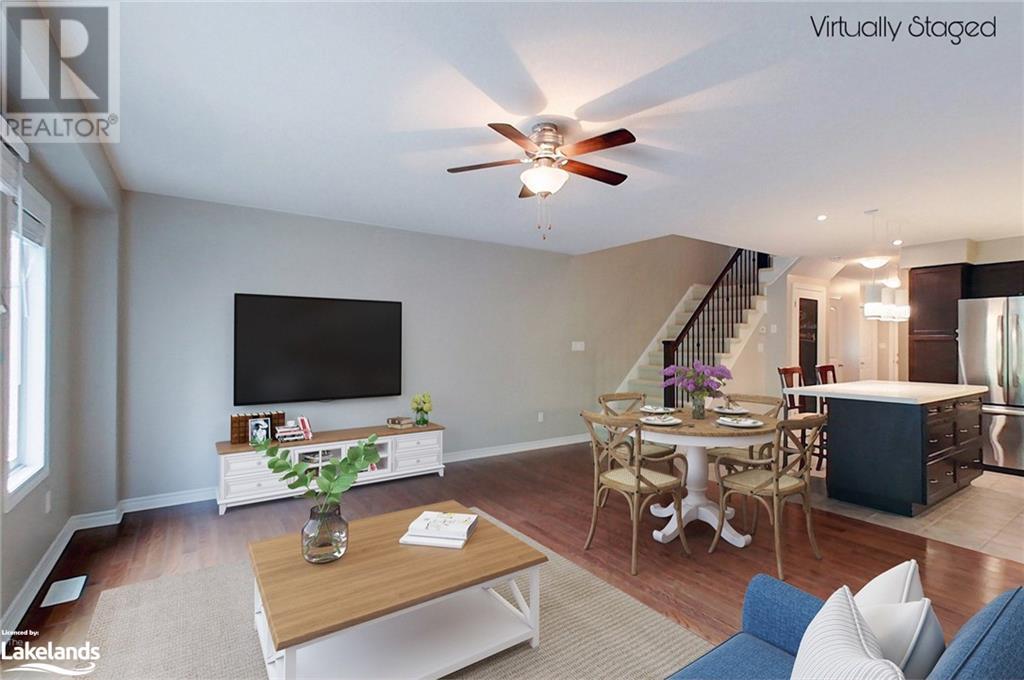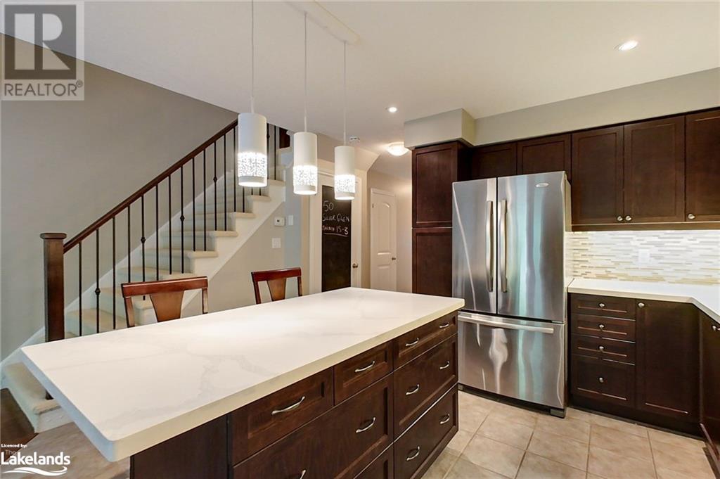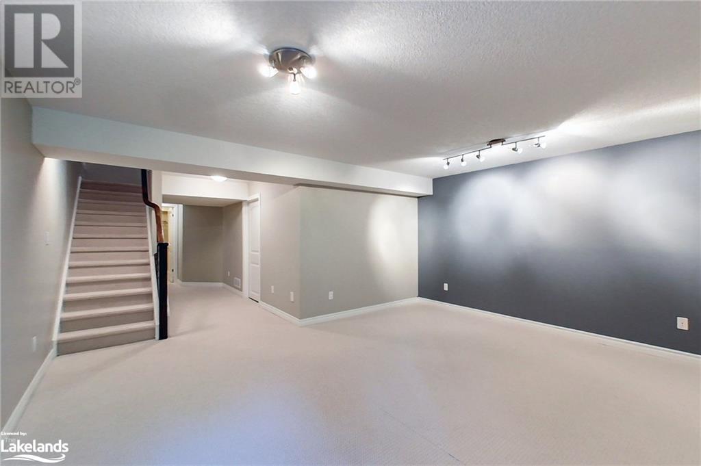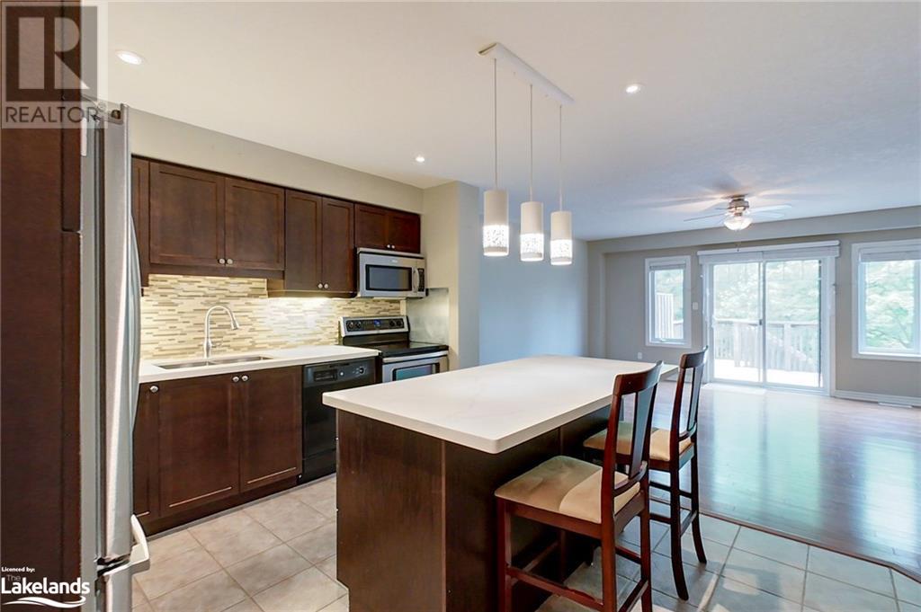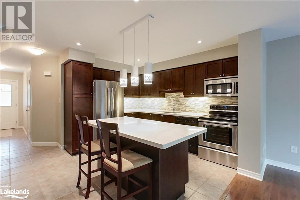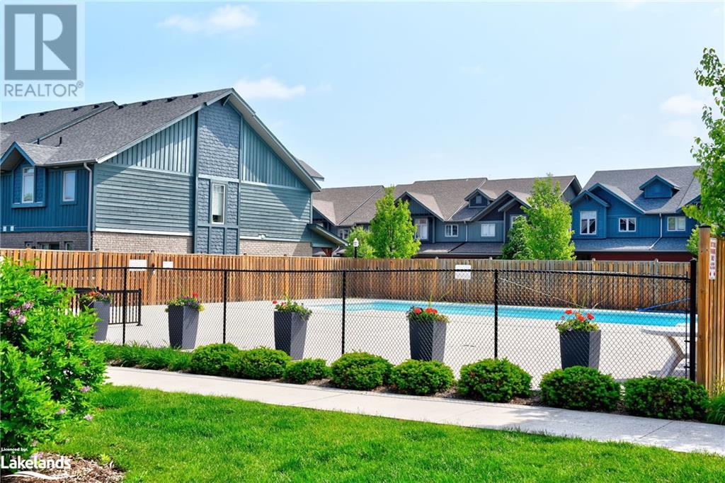 Four-Season Resort Style Living! The life you love! Outdoor enthusiasts, Nature Lovers, welcome to paradise! This Townhome features a beautiful open concept main floor with gleaming quartz kitchen countertops and an island, well lit family room and a 2-piece bathroom. Walkout onto your rear deck for a BBQ or just relax and enjoy the sounds of nature from the Conservation area right behind you. Single car garage with built-in storage shelves and inside entry door. Upstairs you will find the large Primary Bedroom with en-suite privileges to the bathroom that offers 2 showers,2 sinks, a jetted tub, heated floor and laundry. You will also find 2 additional well sized bedrooms. The basement is finished with a full bathroom, lots of storage space, extra pantry and a great open space for a second family room, kids playroom and/or 4th open concept bedroom. Gas furnace and central air. Take a few steps out your front door and into the clean, well kept Recreation Center for a plunge in the outdoor pool, a workout in the full gym, or a family gathering in the party room with a full kitchen and dining tables. Hang out with friends in the games room featuring pool tables, foosball, shuffleboard, ping pong and darts, or just relax in the sauna, this beautiful complex has it all! Lots to do nearby as well, most amenities are only minutes away including Golf, Skiing, beaches, boating, restaurants and shopping. Just as the sign reads when you enter this incredible neighborhood, “You’re Home, Relax, Slow Down” CALL NOW. (id:22211)