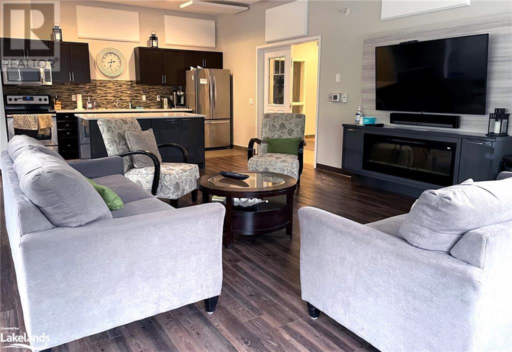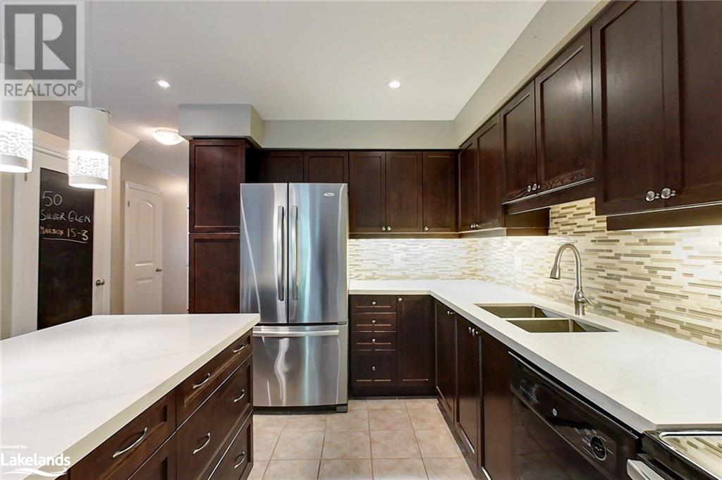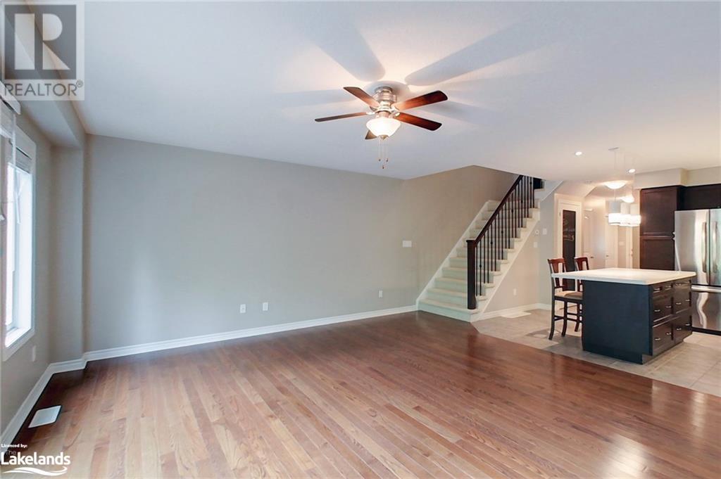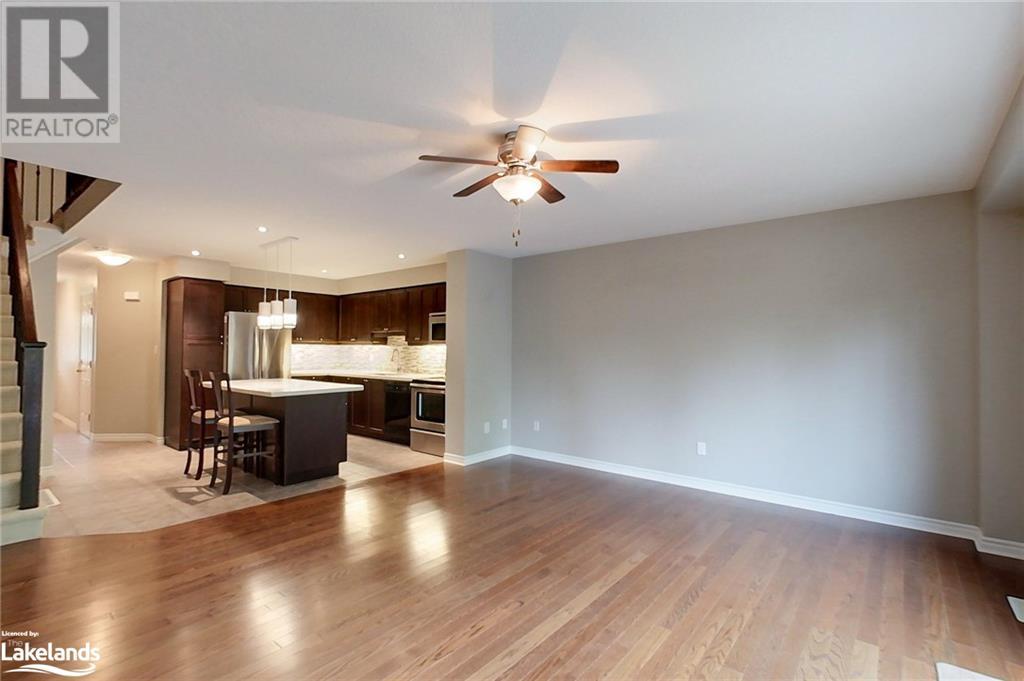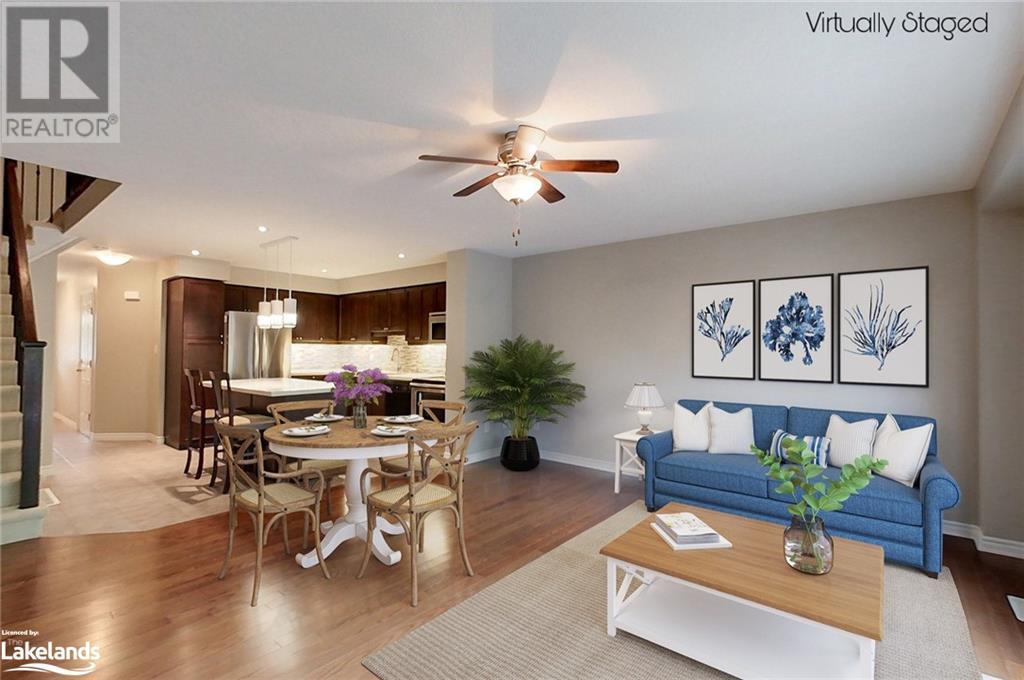 Four-Season Resort Style Living! The life you love! Outdoor enthusiasts, Nature Lovers, welcome to paradise! This Townhome features a beautiful open concept main floor with gleaming quartz kitchen countertops and an island, well lit family room and a 2-piece bathroom. Walkout onto your rear deck for a BBQ or just relax and enjoy the sounds of nature from the Conservation area right behind you. Single car garage with built-in storage shelves and inside entry door. Upstairs you will find the large Primary Bedroom with en-suite privileges to the bathroom that offers 2 showers,2 sinks, a jetted tub, heated floor and laundry. You will also find 2 additional well sized bedrooms. The basement is finished with a full bathroom, lots of storage space, extra pantry and a great open space for a second family room, kids playroom and/or 4th open concept bedroom. Gas furnace and central air. Take a few steps out your front door and into the clean, well kept Recreation Center for a plunge in the outdoor pool, a workout in the full gym, or a family gathering in the party room with a full kitchen and dining tables. Hang out with friends in the games room featuring pool tables, foosball, shuffleboard, ping pong and darts, or just relax in the sauna, this beautiful complex has it all! Lots to do nearby as well, most amenities are only minutes away including Golf, Skiing, beaches, boating, restaurants and shopping. Just as the sign reads when you enter this incredible neighborhood, “You’re Home, Relax, Slow Down” CALL NOW. (id:22211)