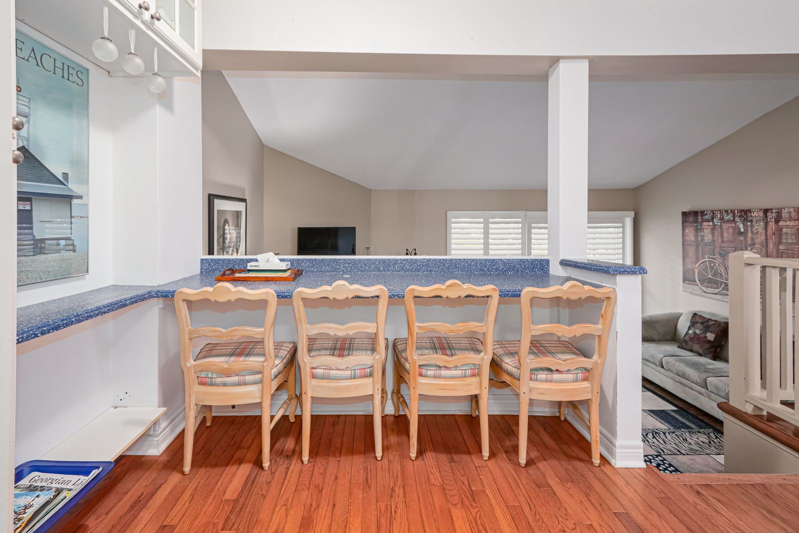 Open House July 9th 2-4pm 3 bed, 4 bath end unit townhome with finished basement in the perfect location! Close proximity to downtown, shopping, dining, schools, parks, biking paths, golf courses more. Excellent, family-friendly floor plan with a cozy sunken living room off the kitchen. Living room with gorgeous corner gas fireplace and sliding patio doors leading to the newly renovated back deck. Bright kitchen has tons of storage, attractive glass-front cupboards & functional 4 seater breakfast bar overlooking the living room. Dining room can accommodate a large 10-12 seat dining table. Upstairs is the lovely Primary Bedroom with tons of closet space, ensuite powder room & peaceful, private balcony! 2 additional bedrooms & a full 4 pc bath round out the upstairs. Basement is fully finished, carpeted & boasts a great recreation room with a gas fireplace, a 3 pc bathroom, laundry and another 2 pc bath. Newly renovated back deck is private, shady has a back entrance to visitor parking.Single car garage has been converted into a serviceable mudroom area just off the foyer - ideal spot for skis and other outdoor equipment, bicycles, boots etc but could also be used as a den, playroom or even office space.