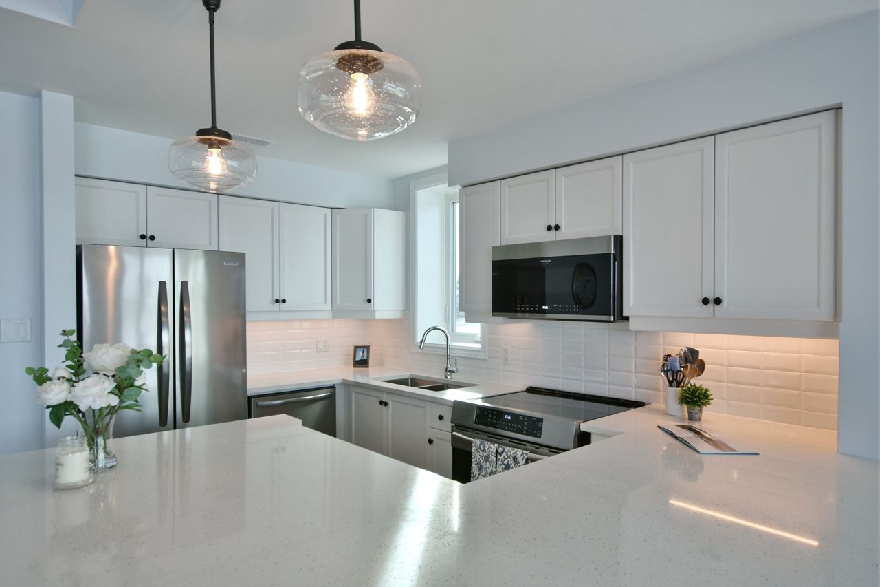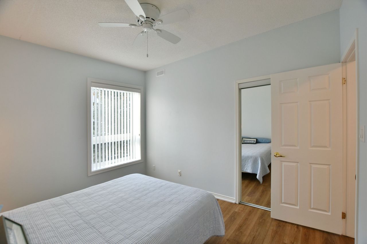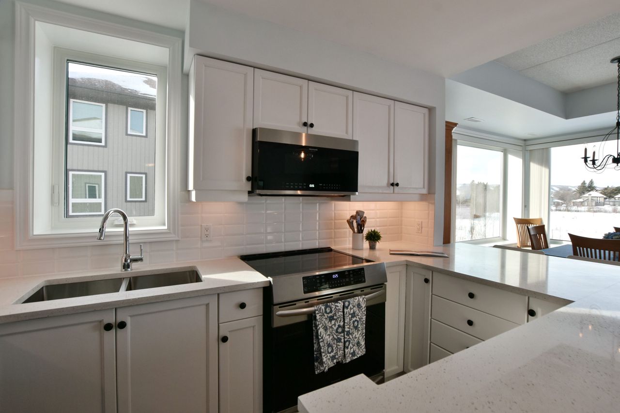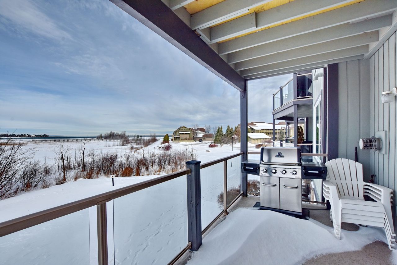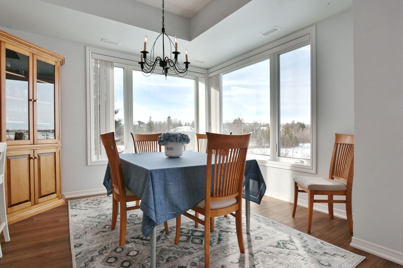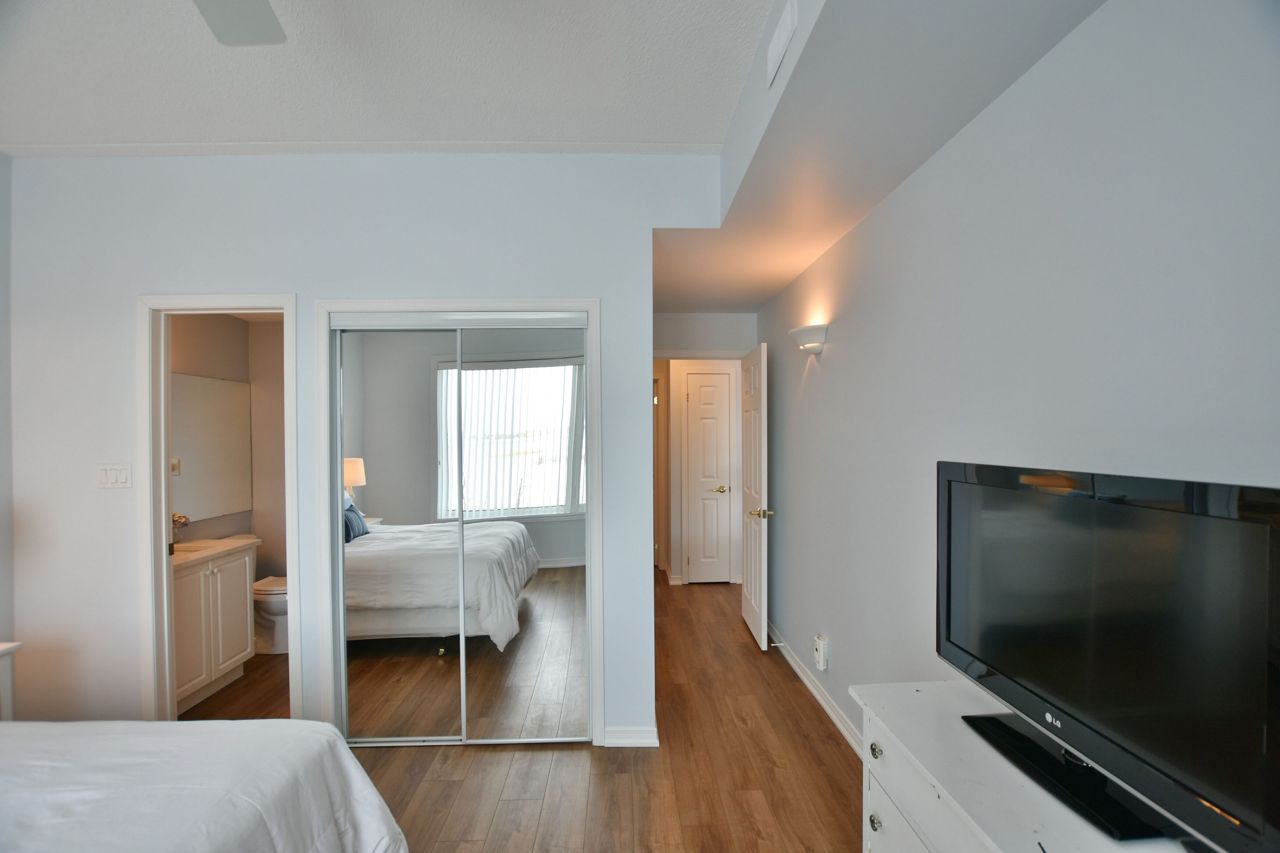 LIGHTHOUSE POINT Second level Spacious Unobstructed Water View Corner Unit. This freshly upgraded residence features Beautiful Panoramic Views Of Georgian Bay & Blue Mountain. 3 Bedrooms and 2 Baths, an open concept Living, Dining and Kitchen with gleaming quartz countertops, and four appliances. Enjoy the breathtaking sunset and views towards the water from your expansive west-facing windows and Large 8'X16' Balcony patio, connected to the Living Room, featuring a gas fireplace. The Primary Bedroom is equipped with a 3-piece ensuite, while the 2 additional Guest Bedrooms enjoy a 4-piece separate Bathroom. Additional storage located beside the unit with it's own locked door, further storage located in the building across. The resort-like experience continues with access to 9 tennis courts, 4 pickleball courts, 2 outdoor swimming pools, 2 sandy beaches, over a mile of winding nature trails, 10 acres of protected natural beauty, marina facilities, and a recreation center that houses an indoor pool, rejuvenating spas, a sauna, well-equipped gym, games room, library, inviting outdoor patio seating, a social room graced by a grand piano, and more. Beautiful Sunsets! Resort Like Living! **EXTRAS** couch, dining room hutch, beds can be negotiated.