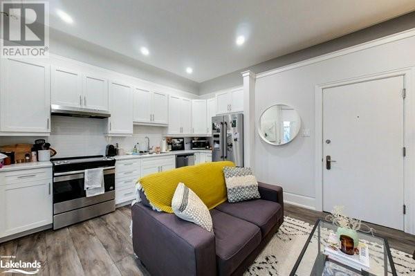 Welcome to a rare offering in the heart of downtown Collingwood! This exceptional property features a main floor 1 bedroom renovated rental suite that has been transformed into a modern haven of style and comfort. With a focus on quality and attention to detail, the 650 sq ft unit showcases a stunning array of features and upgrades. You'll love the abundance of natural light that floods the interior through the new windows, illuminating the exquisite flooring and highlighting the impeccable craftsmanship throughout. The unit boast a generous ceiling height of 10 feet, imparting an open and airy feel. With a brand new kitchen and bathroom, not to mention your own en-suite washer and dryer, you will never want to leave. But when you do, the exterior of this property has received a complete makeover and exudes an unmistakable sense of sophistication and curb appeal. Parking & Guest parking is included. Utilities (separately metered) are in addition to rent. Located in prime downtown Collingwood, this property offers unparalleled convenience, with all area amenities just steps away within easy reach. Additionally, outdoor enthusiasts will appreciate the proximity to Blue Mountain, trails, and Georgian Bay providing endless opportunities for adventure and recreation. Schedule a showing today and witness the epitome of modern elegance and comfort in downtown Collingwood! (id:22211)