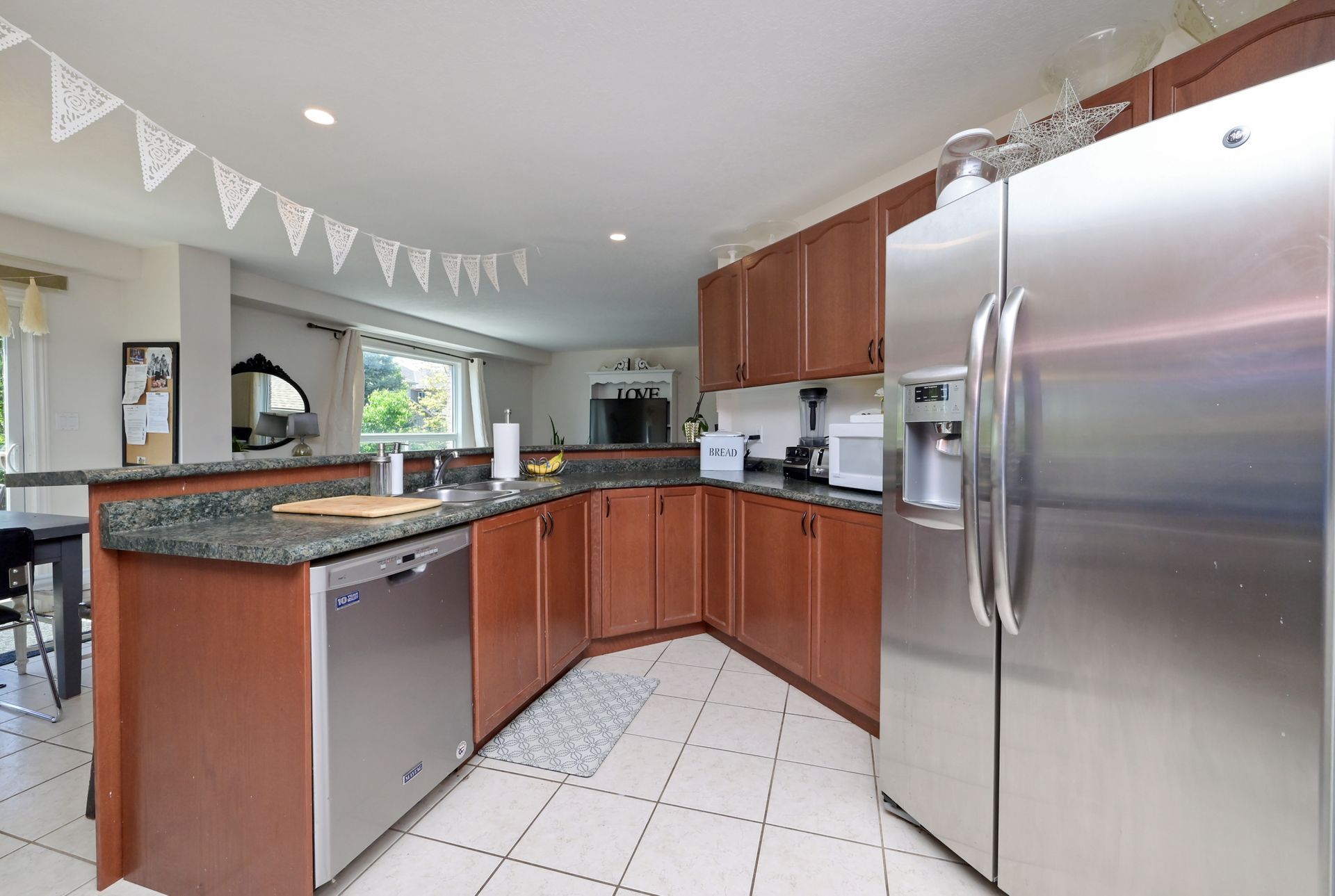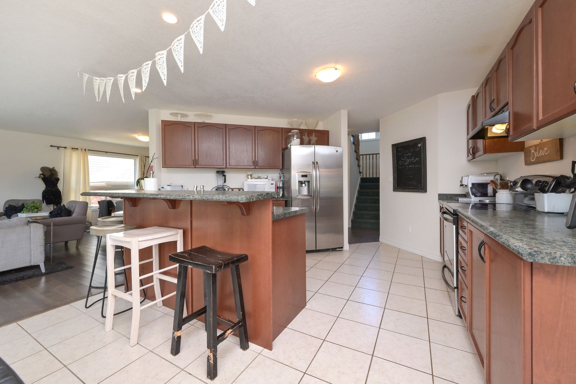 Stainless Steel Appl Tile Ceiling Open Concept