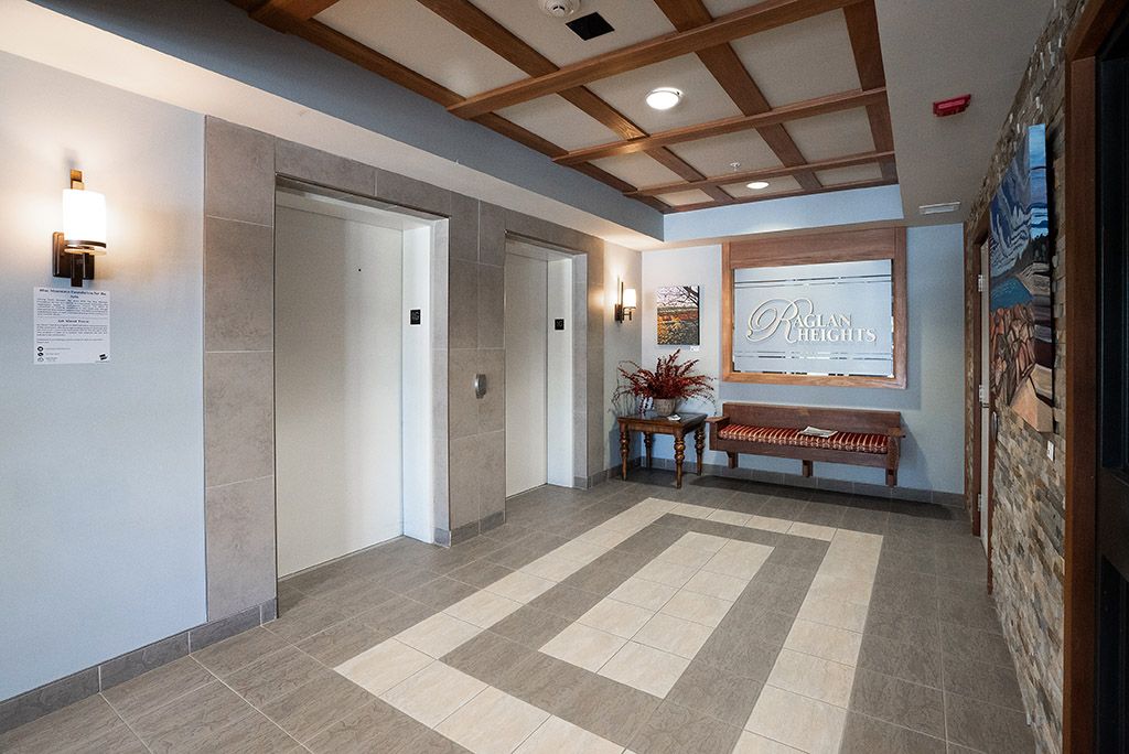 This well priced retirement condo offers immediate occupancy! Located on the east side of beautiful Collingwood, close to Sunset Point Park and the Collingwood General and Marine Hospital sits one of the area's finest retirement communities, Raglan Village. This good sized, two bedroom, two bath unit has been well thought out with a full kitchen, combined living/dining area, step in shower with grab bar in the primary ensuite, in-suite laundry facilities, and balcony overlooking the front entrance. The occupants also enjoy use of the Raglan Club which includes therapeutic swimming pool and hot tub, exercise room, bar/bistro, games room, library and so much more. Never worry about brushing snow off of your car with the indoor, heated parking area that is included in the condo fee (storage locker also included).