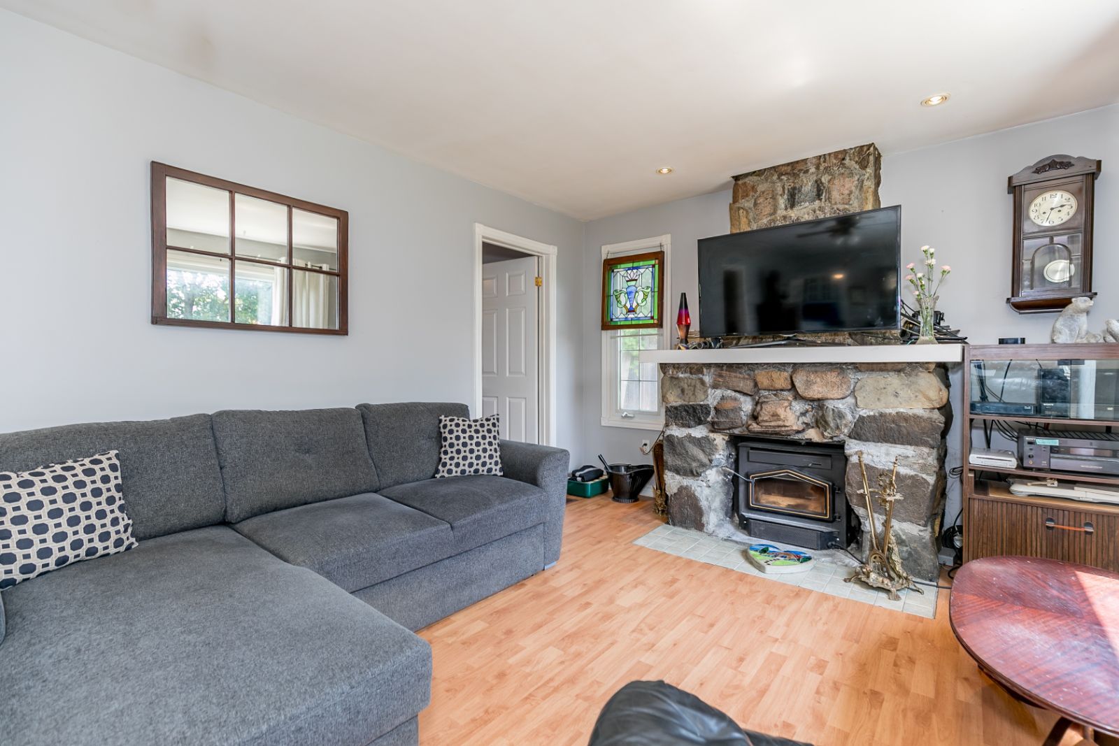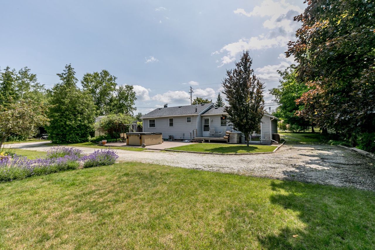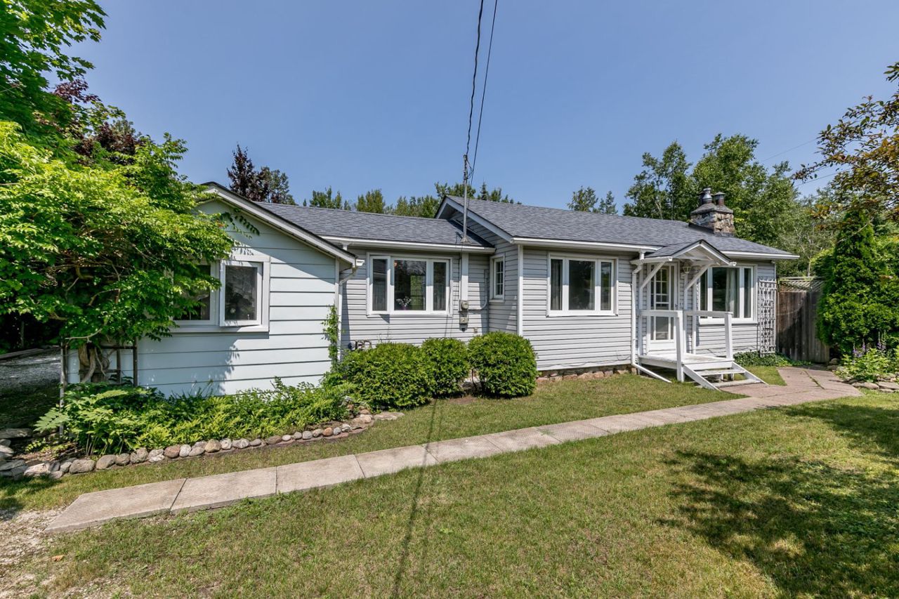 DISCOVER THIS CHARMING DETACHED BUNGALOW ON A PRIVATE CORNER LOT STEPS TO THE SHORES OF GEORGIAN BAY! Welcome to 9496 Beachwood Road. This charming detached bungalow caters to retirees, first-time buyers & investors. Mature trees frame the home, complemented by perennial gardens. The living room is bright & open, with laminate flooring & a cozy wood-burning f/p insert with a stone mantle. The kitchen features ceramic floors, ample cabinets & a cooktop on the island. The primary bedroom has a w/o to the back patio, while the other is bright & airy. The bathroom is spacious, with a w/i shower & soaker tub. Outside, a massive patio awaits, complete with a hot tub & outdoor fireplace. Ideally situated close to Blue Mountain, Collingwood & Wasaga Beach. The property sits on a third of an acre, with three sheds (two powered). Updates include windows, plumbing, electrical, insulation & siding. Let this remarkable #HomeToStay enchant you with its warmth, beauty & countless possibilities.