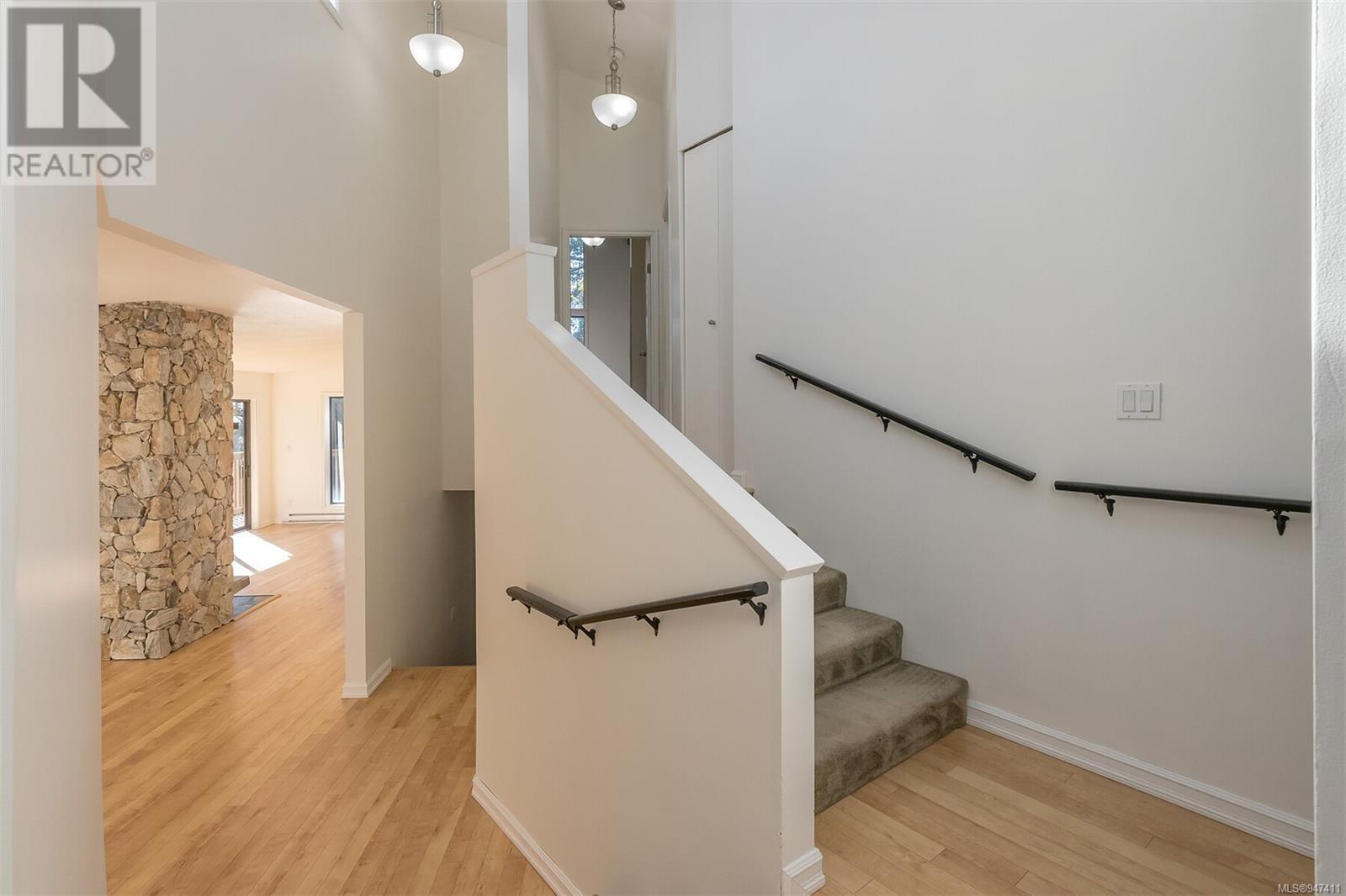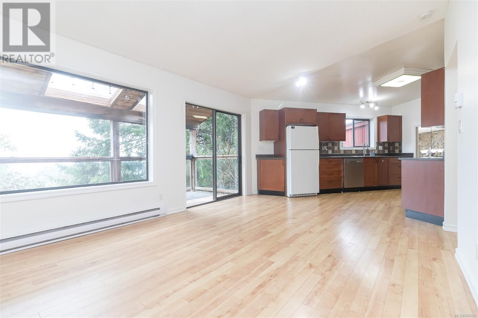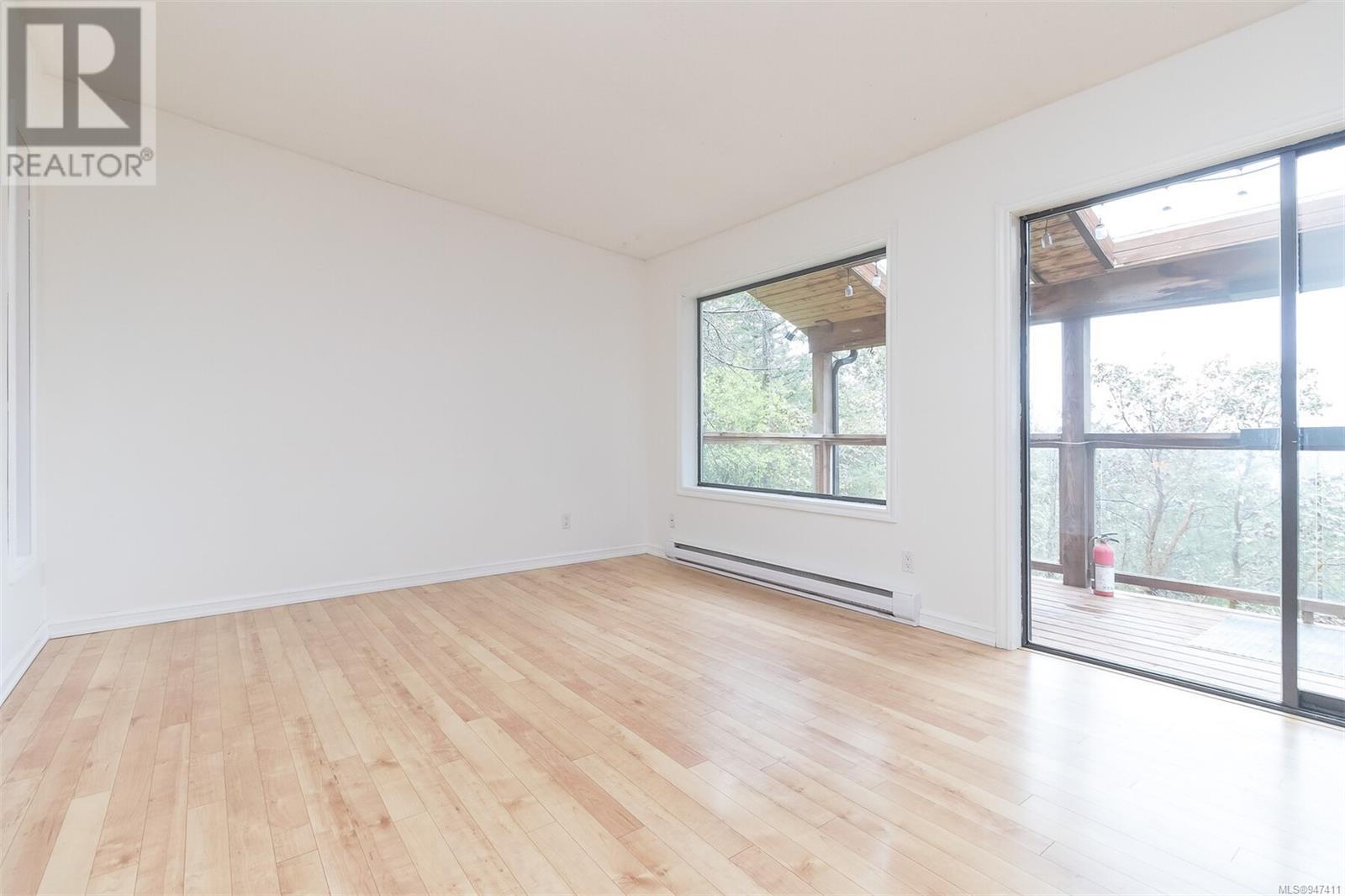 West coast contemporary style home on a very secluded large lot with views towards north Langford, water views of the Juan De Fuca Straight and Victoria. Freshly painted, vaulted ceilings, windows abound, hardwood floors, and a massive primary bedroom are just a few features hard to find in todays market. With a total of 3 bedrooms, 2 bathrooms and a huge (1,279 sq.ft.) undeveloped basement, there is room to grow. The garage was converted into a closed shop area but easily converted back. The main floor has been repainted, professionally cleaned and is awaiting a new family to call this house home. Call to view! (id:22211)
