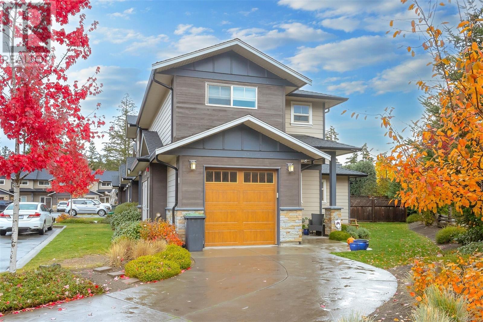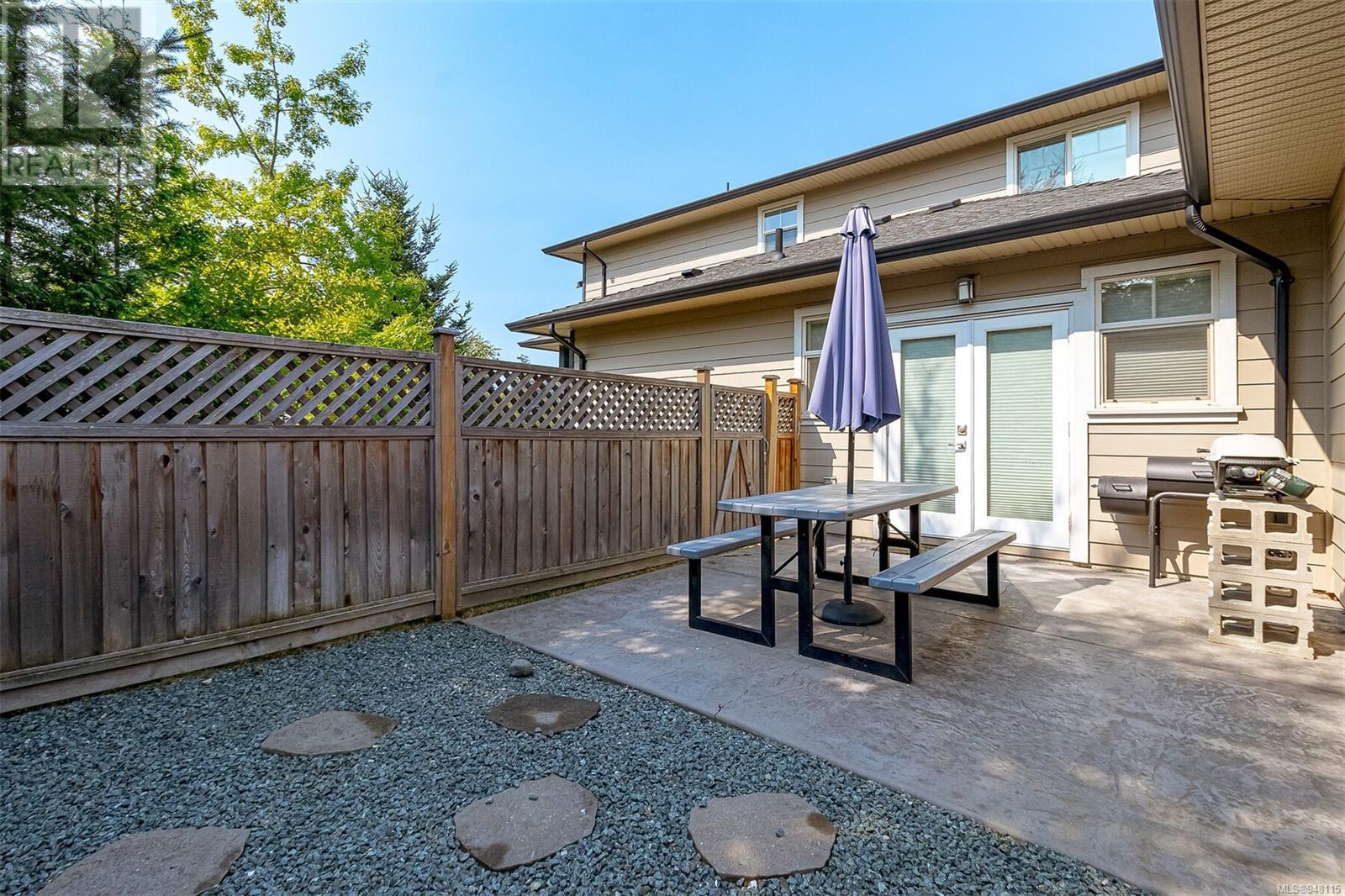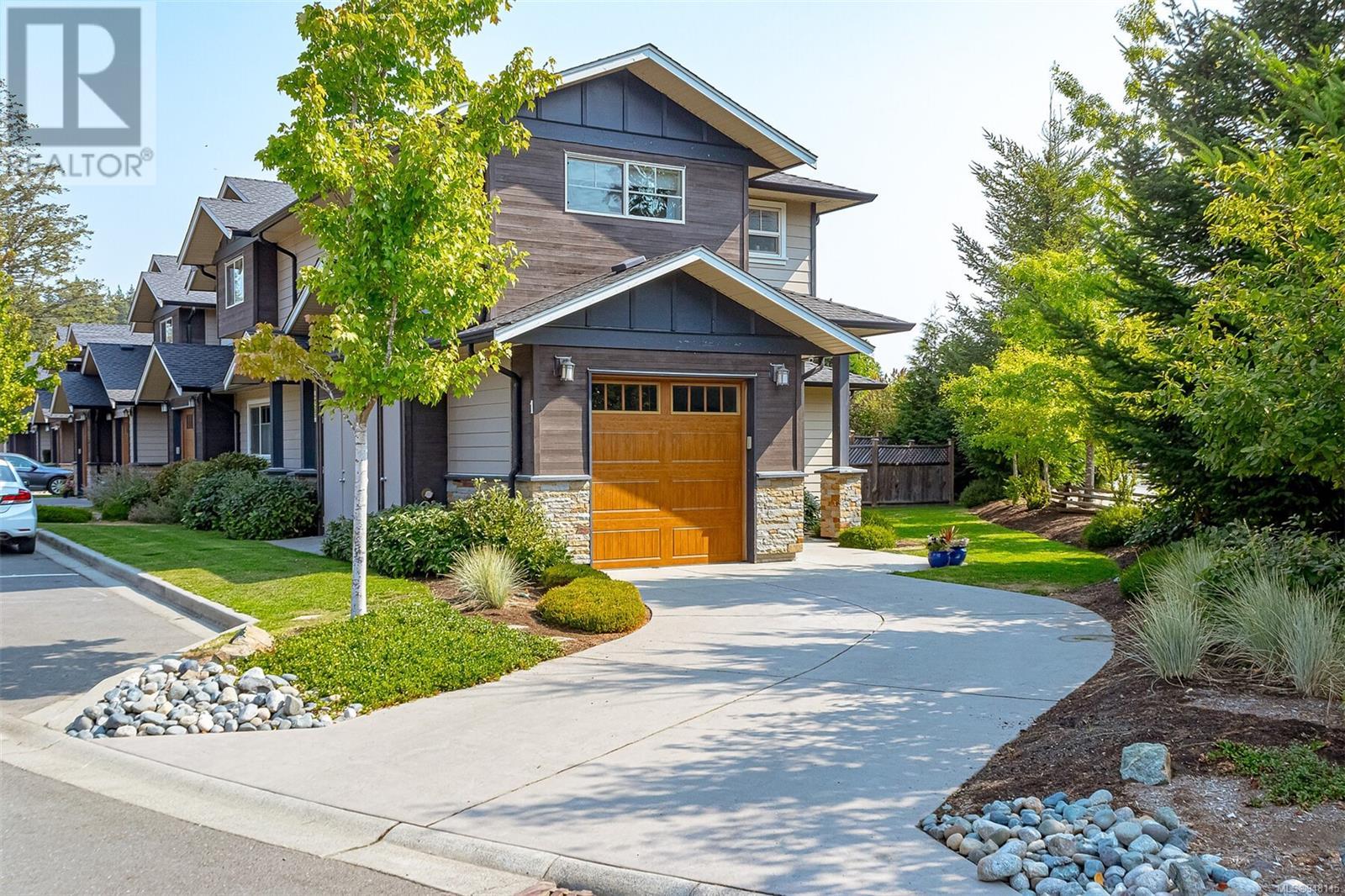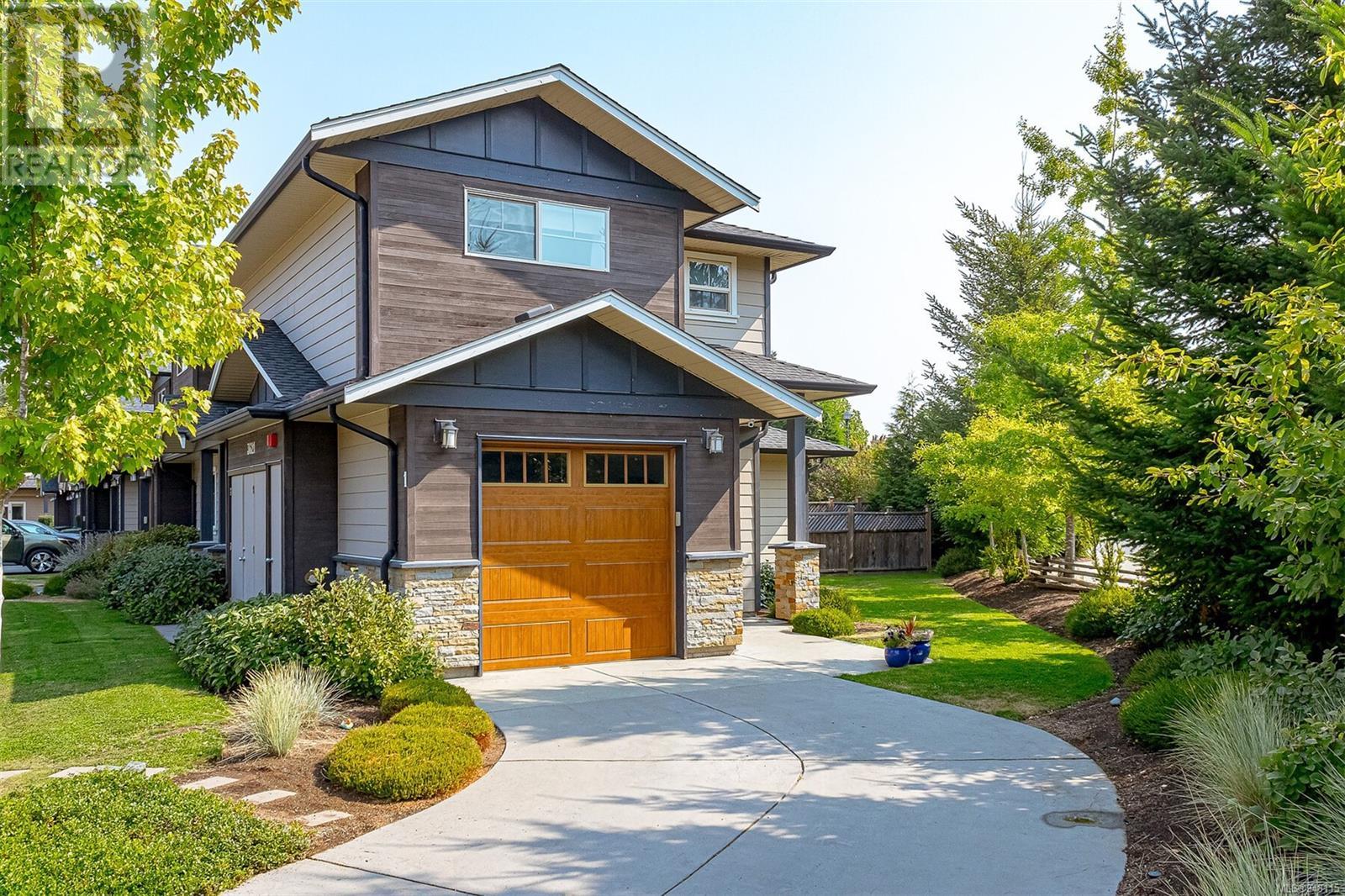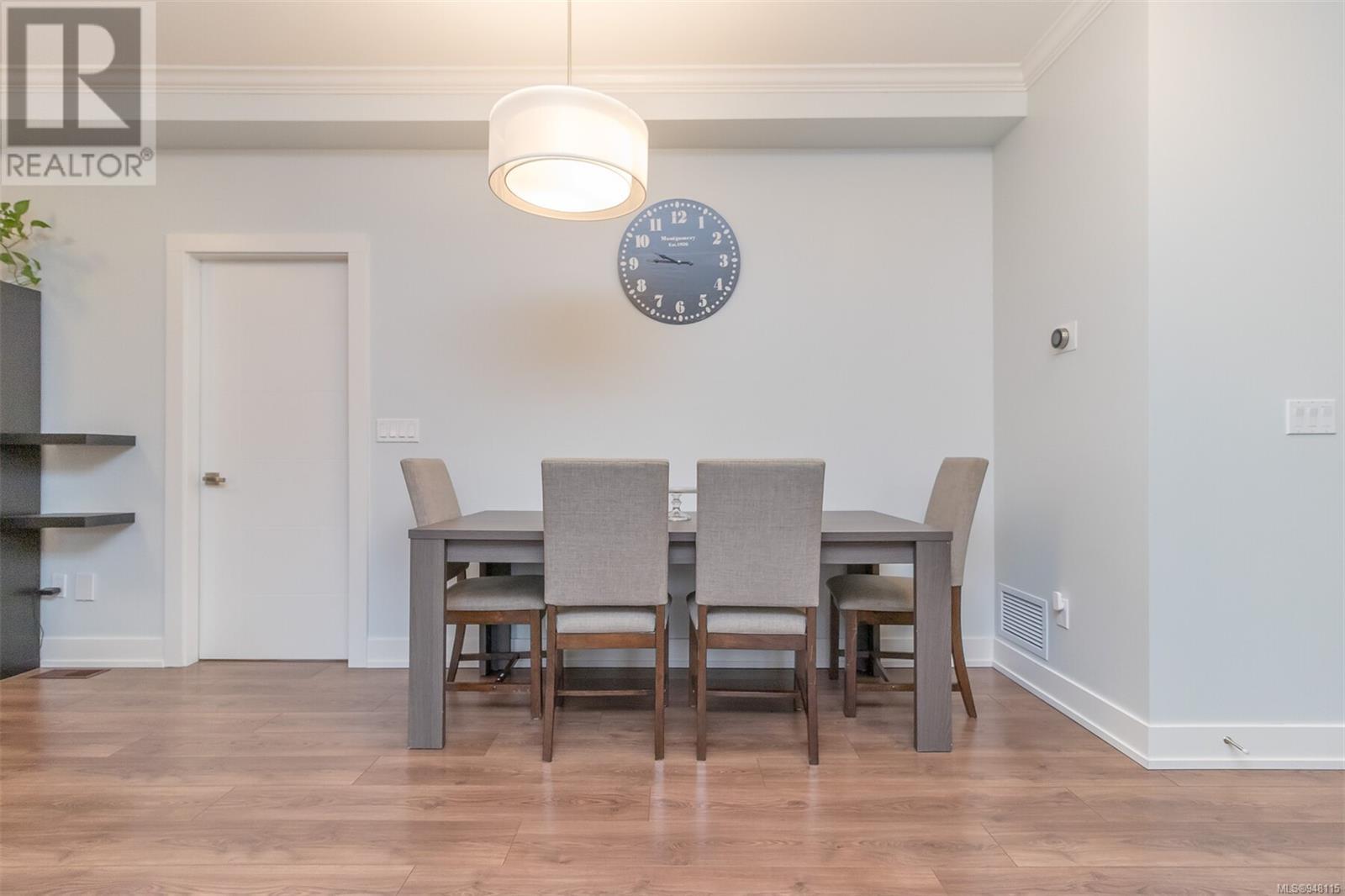 This gorgeous end unit townhome was the original show home at Latoria Heights Offering a unique, flexible floor plan, you have the choice of two primary bedrooms - either upstairs or down. The downstairs primary bedroom can also be a flex space as either an office/den, or a space for guests. Perfect home for entertaining, the kitchen overlooks the living and dining areas and features quartz countertops and upgraded appliances. Tall ceilings with crown molding on the main offers lots of natural light and gives it a nice open feeling. GeoThermal & A/C is a bonus! Lots of storage space with a huge crawlspace and a single car garage with two extra parking spots. Outside offers a private and peaceful patio space with lots of sunshine and great for relaxing. Located in the heart of Latoria and only a short distance to The Beachlands, Royal Bay, hiking, biking trails, sport fields and only minutes from central Langford. (id:22211)