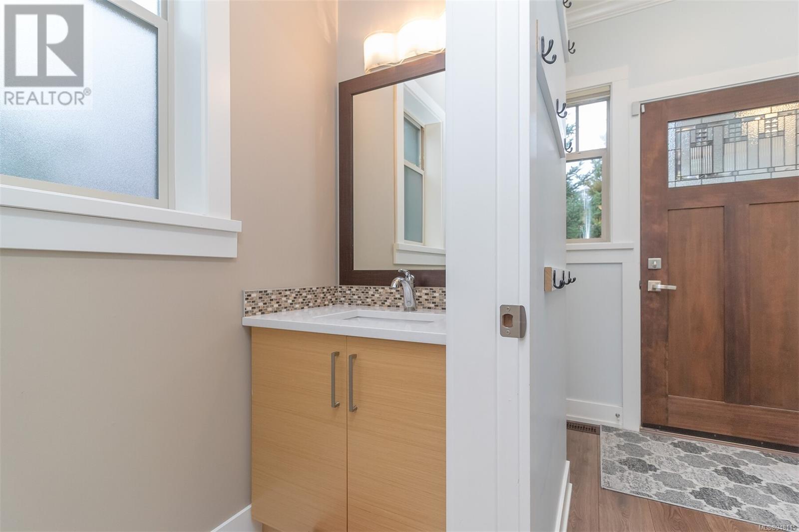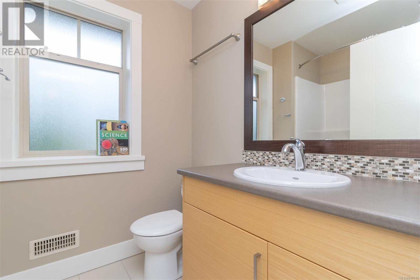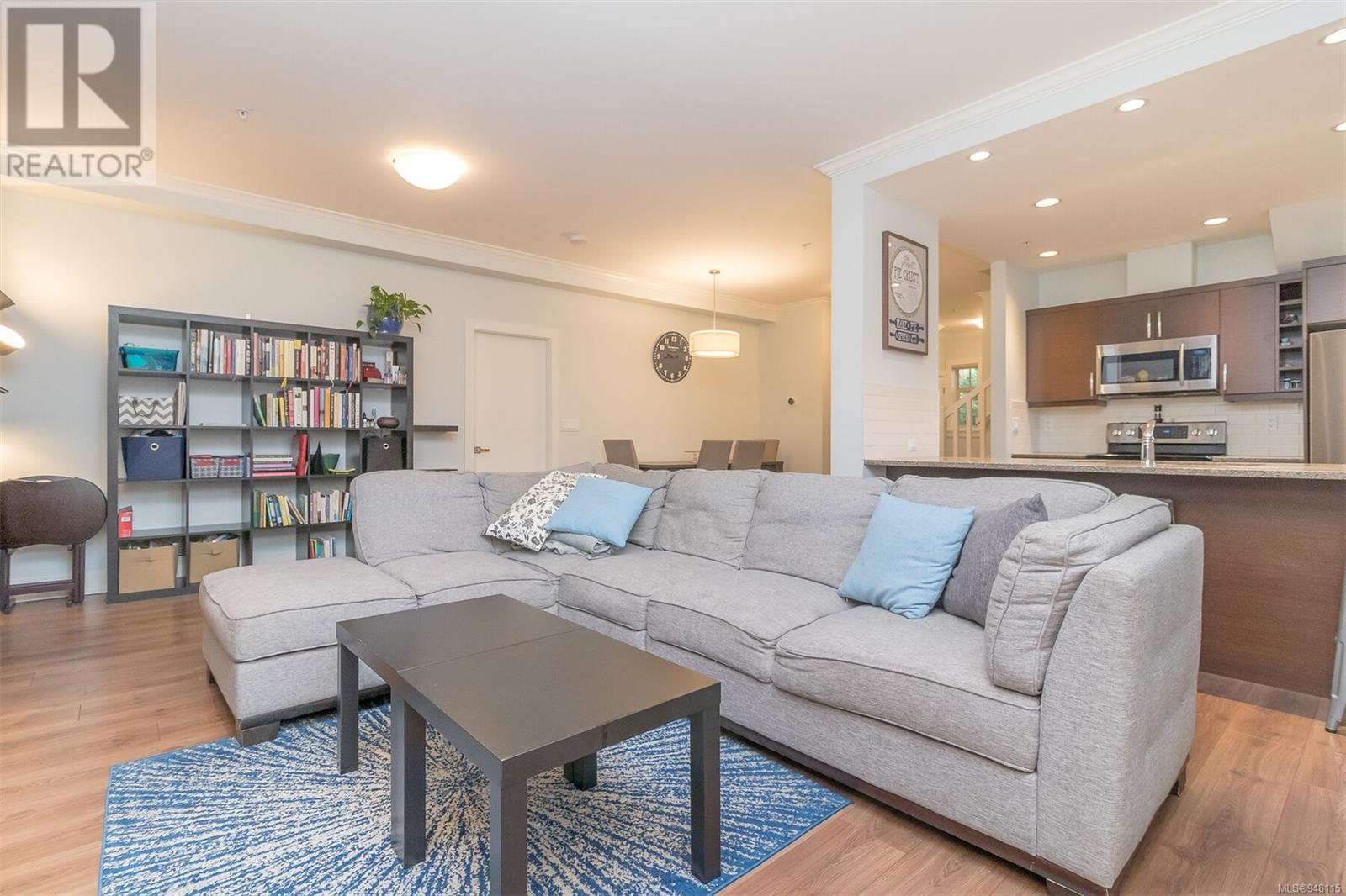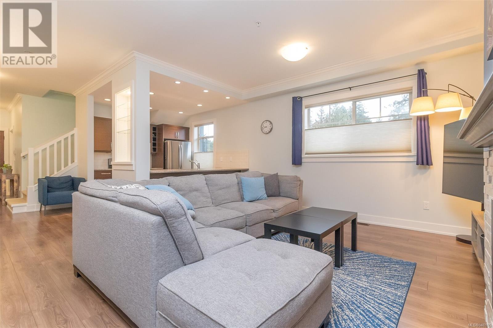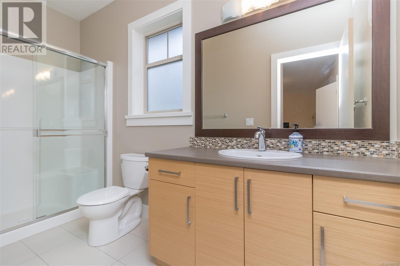 This gorgeous end unit townhome was the original show home at Latoria Heights Offering a unique, flexible floor plan, you have the choice of two primary bedrooms - either upstairs or down. The downstairs primary bedroom can also be a flex space as either an office/den, or a space for guests. Perfect home for entertaining, the kitchen overlooks the living and dining areas and features quartz countertops and upgraded appliances. Tall ceilings with crown molding on the main offers lots of natural light and gives it a nice open feeling. GeoThermal & A/C is a bonus! Lots of storage space with a huge crawlspace and a single car garage with two extra parking spots. Outside offers a private and peaceful patio space with lots of sunshine and great for relaxing. Located in the heart of Latoria and only a short distance to The Beachlands, Royal Bay, hiking, biking trails, sport fields and only minutes from central Langford. (id:22211)