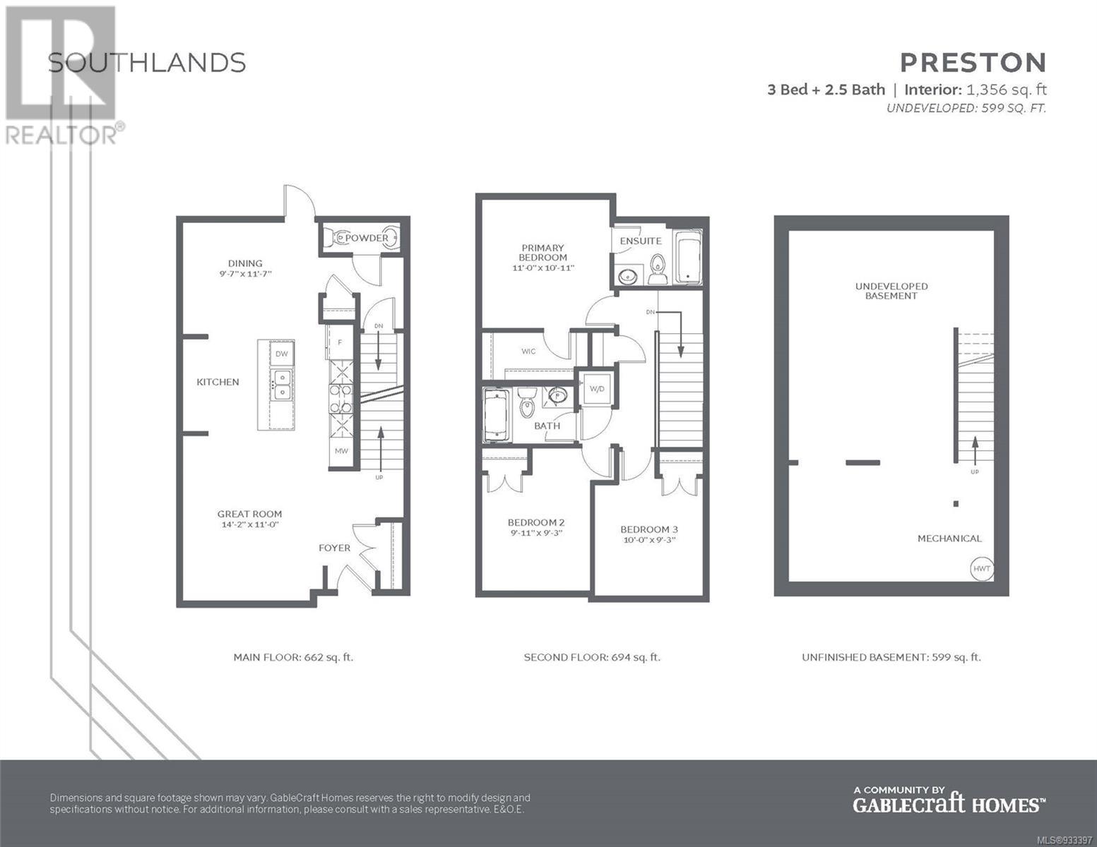 Welcome to GableCraft Homes newest Single Family phase at Royal Bay, ''Southlands'' where they proudly present the Preston—a remarkable new home design spanning 1356 sq. ft. Immerse yourself in the cozy charm of this delightful residence, boasting three bedrooms & 2.5 baths. Step inside the Preston & experience the seamless flow of its open concept layout. The great room effortlessly transitions into the well-appointed kitchen, complete with an island & a bright dining nook. In keeping with the Southlands designs, the Preston offers a unique opportunity to grow into the home as you wish. Choose to develop the basement as an extension of the main home, allowing for additional living space, or opt for a one-bedroom legal suite, perfect for generating extra income. This flexibility ensures that the Preston can adapt to your changing needs over time. Visit our HomeStore at 394 Tradewinds Avenue, off Latoria Blvd. Open daily 12-5pm; Fridays By Appointment Only. Price is plus gst. (id:22211)