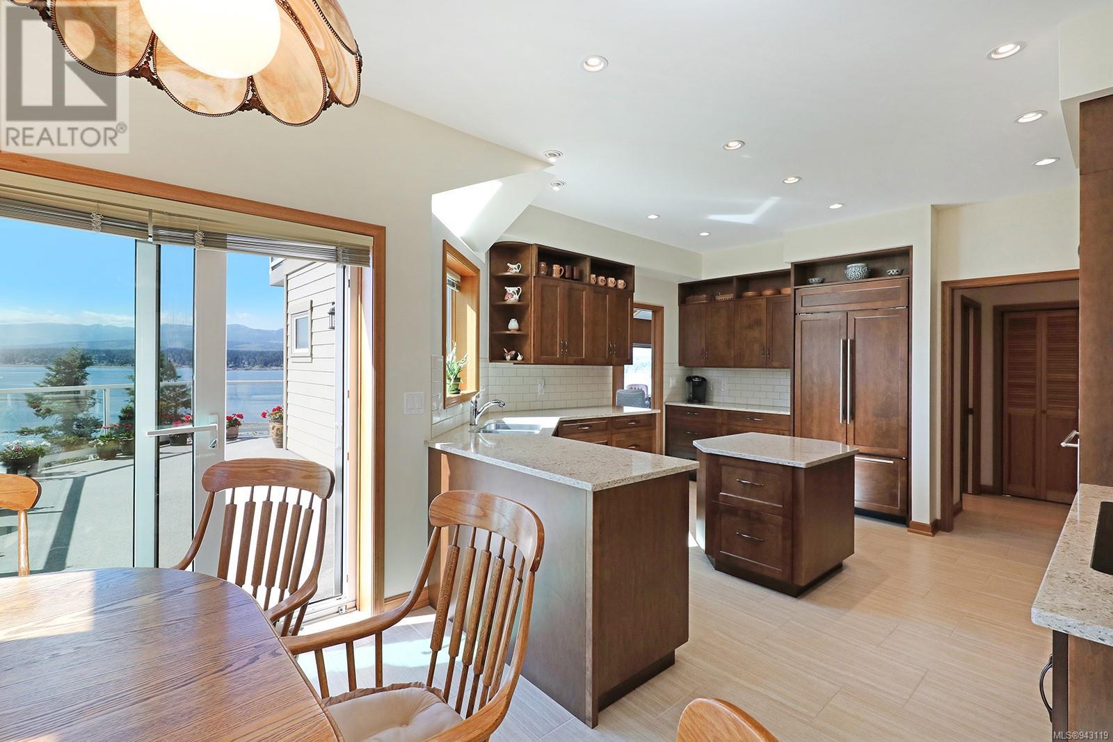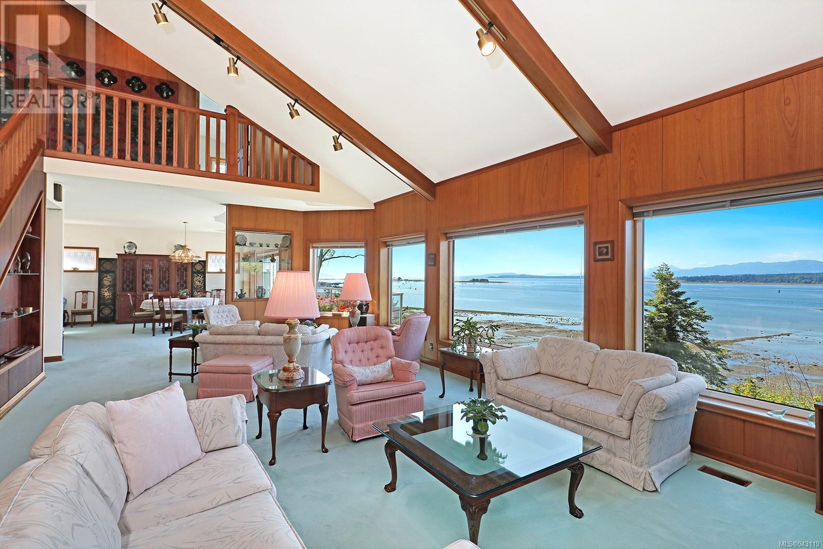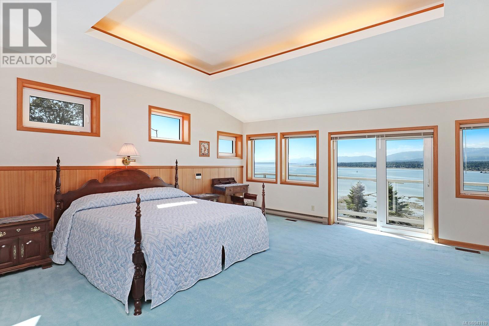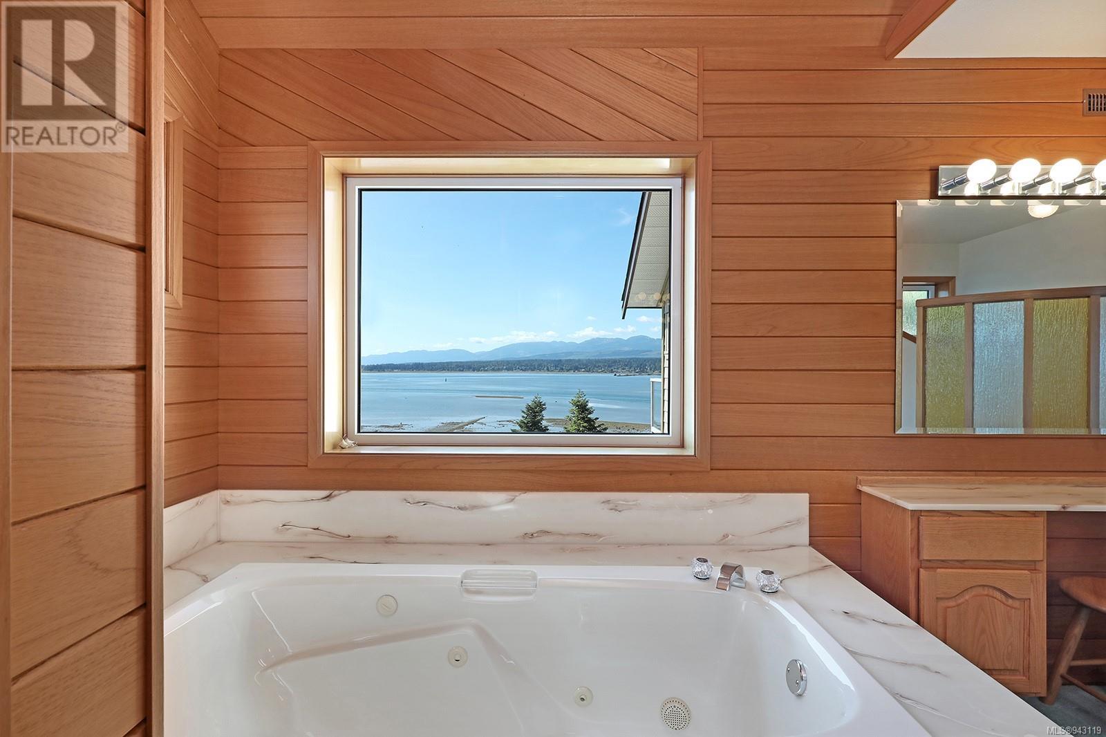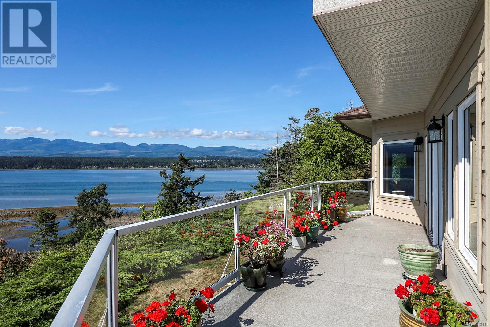 West Coast Highbank Waterfront with stunning ocean views southwest to the Straight of Georgia and to the Beaufort Range. Located on a quiet cul de sac in Comox, a short walk to the Marina, shops & restaurants. Meticulous craftsmanship and thoughtful design create a unique opportunity to enjoy luxury living at it’s finest. Vaulted ceilings soar 19’ overhead and millwork of exotic mahogany from the Philippines create the hallmark of this impressive design. A spacious plan of 4,380 sf, 5 Bedrooms, all with ensuites, and the primary suite on the upper level with 10’ ceilings and captivating views. Those with a culinary flair will love the kitchen reno – 2013, Wolf induction cooktop, wall oven, Sub Zero custom paneled fridge and baking station island. Lower level/walk out offers a games room, bedroom, an abundance of storage rooms & cabinets and stairs leading to the housekeeper’s suite, and 3 car garage. Rehau tilt & turn doors, windows 2012, roof 2009, heat pump 2018, HRV, poly b removed. (id:22211)