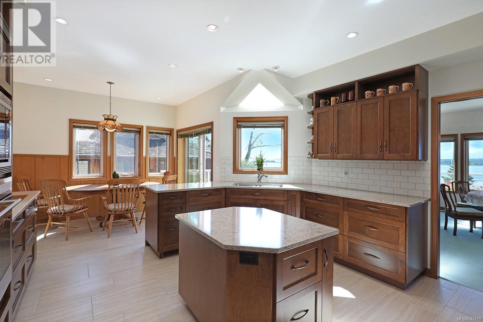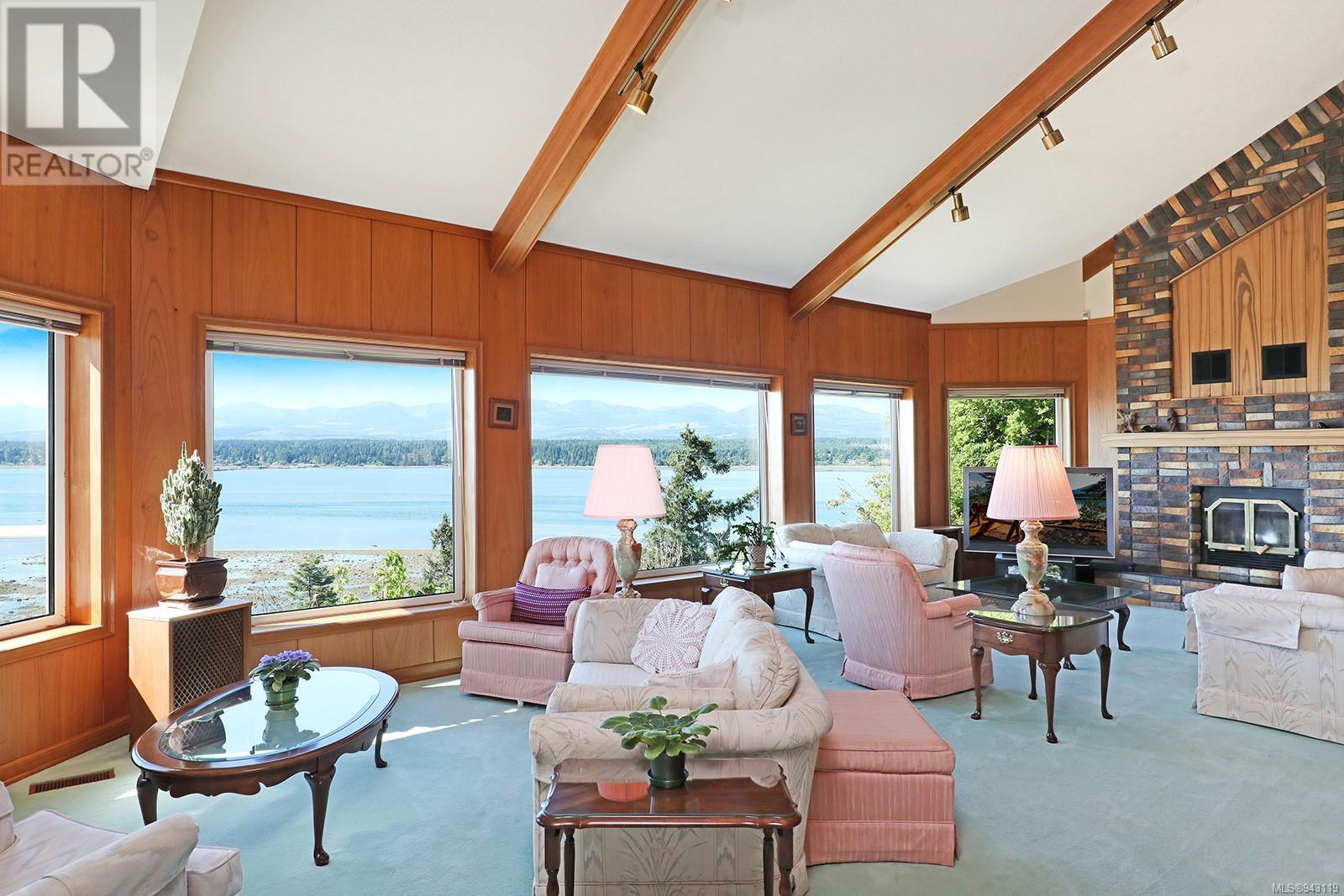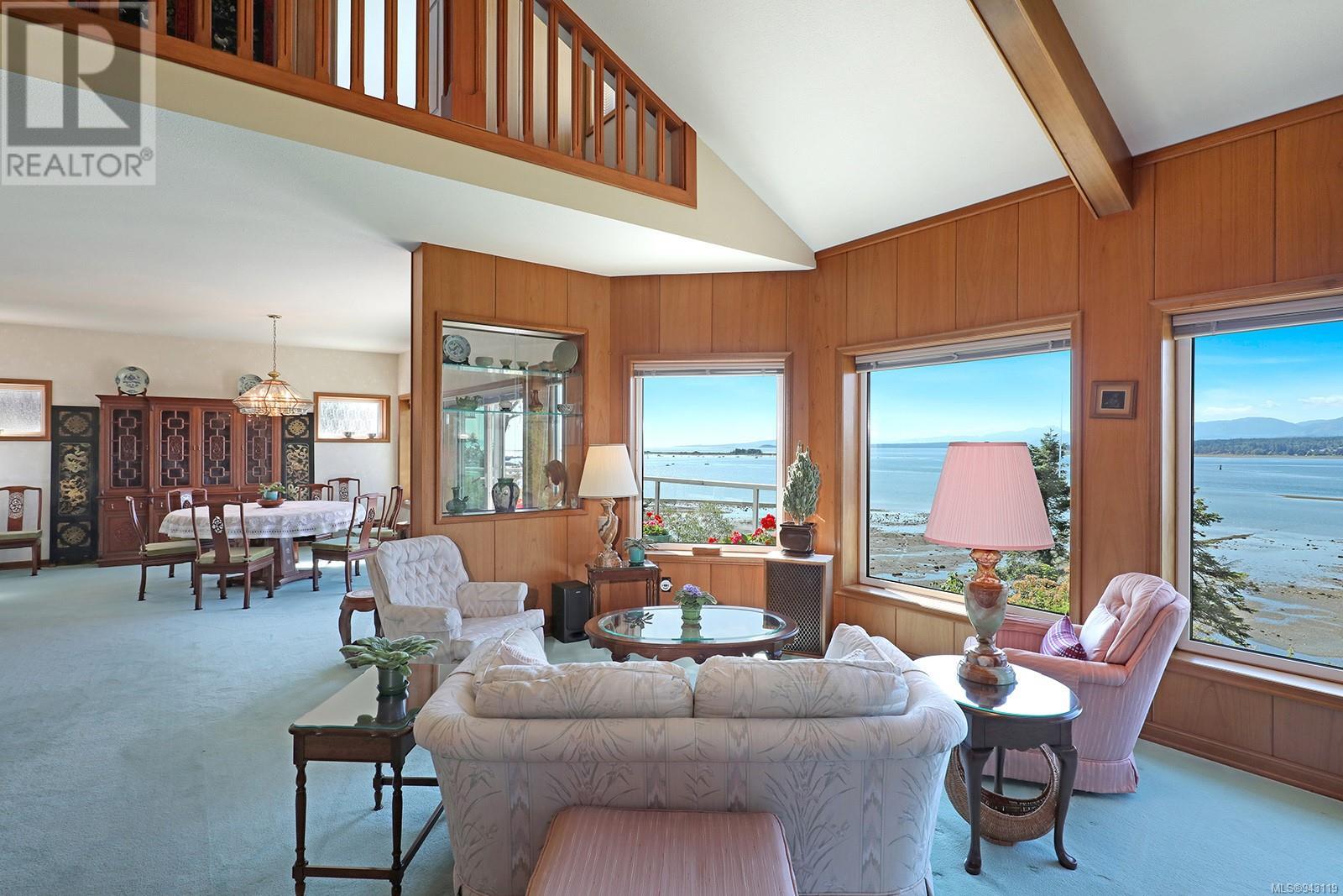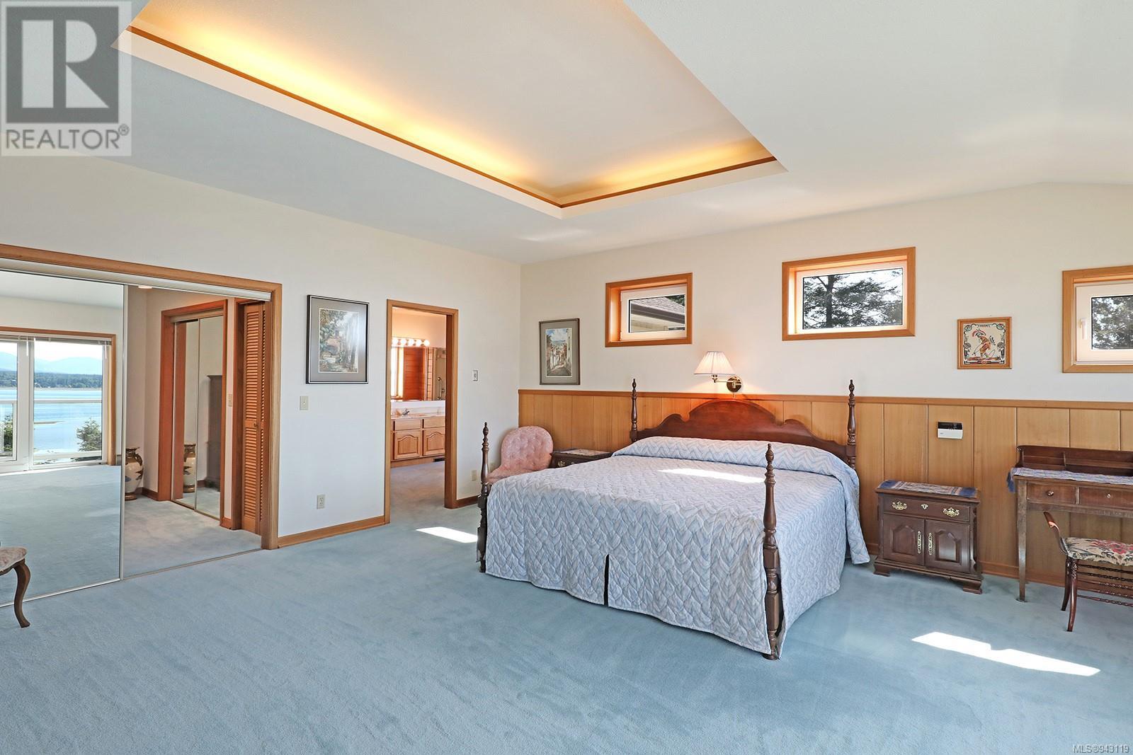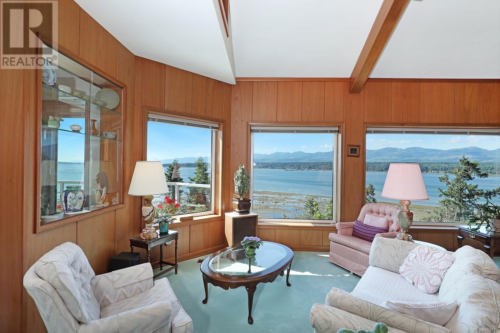 West Coast Highbank Waterfront with stunning ocean views southwest to the Straight of Georgia and to the Beaufort Range. Located on a quiet cul de sac in Comox, a short walk to the Marina, shops & restaurants. Meticulous craftsmanship and thoughtful design create a unique opportunity to enjoy luxury living at it’s finest. Vaulted ceilings soar 19’ overhead and millwork of exotic mahogany from the Philippines create the hallmark of this impressive design. A spacious plan of 4,380 sf, 5 Bedrooms, all with ensuites, and the primary suite on the upper level with 10’ ceilings and captivating views. Those with a culinary flair will love the kitchen reno – 2013, Wolf induction cooktop, wall oven, Sub Zero custom paneled fridge and baking station island. Lower level/walk out offers a games room, bedroom, an abundance of storage rooms & cabinets and stairs leading to the housekeeper’s suite, and 3 car garage. Rehau tilt & turn doors, windows 2012, roof 2009, heat pump 2018, HRV, poly b removed. (id:22211)