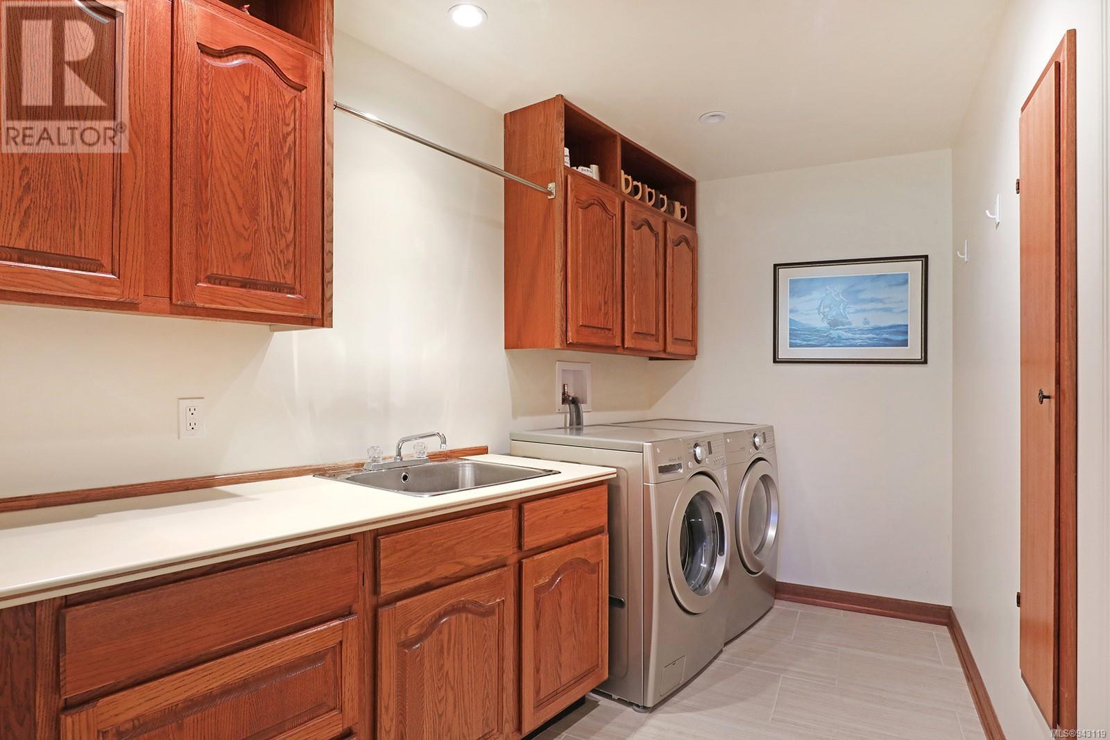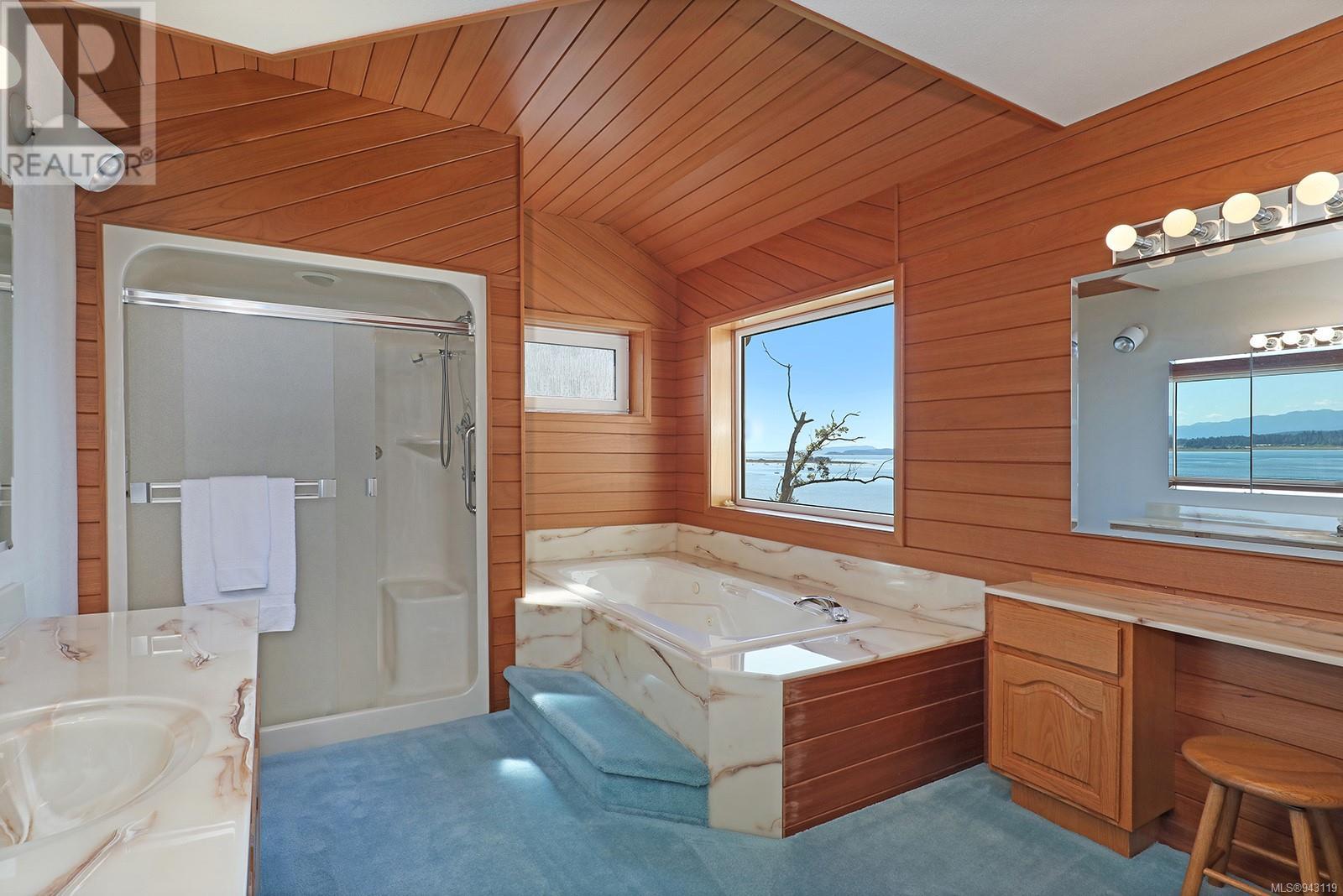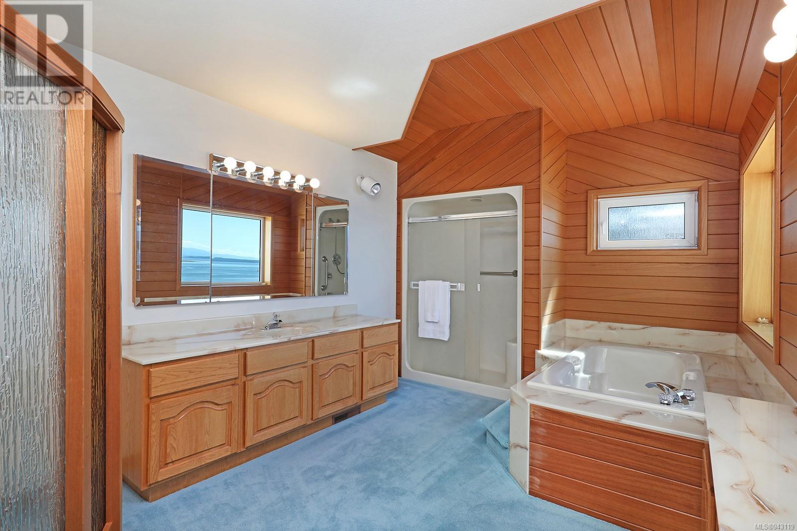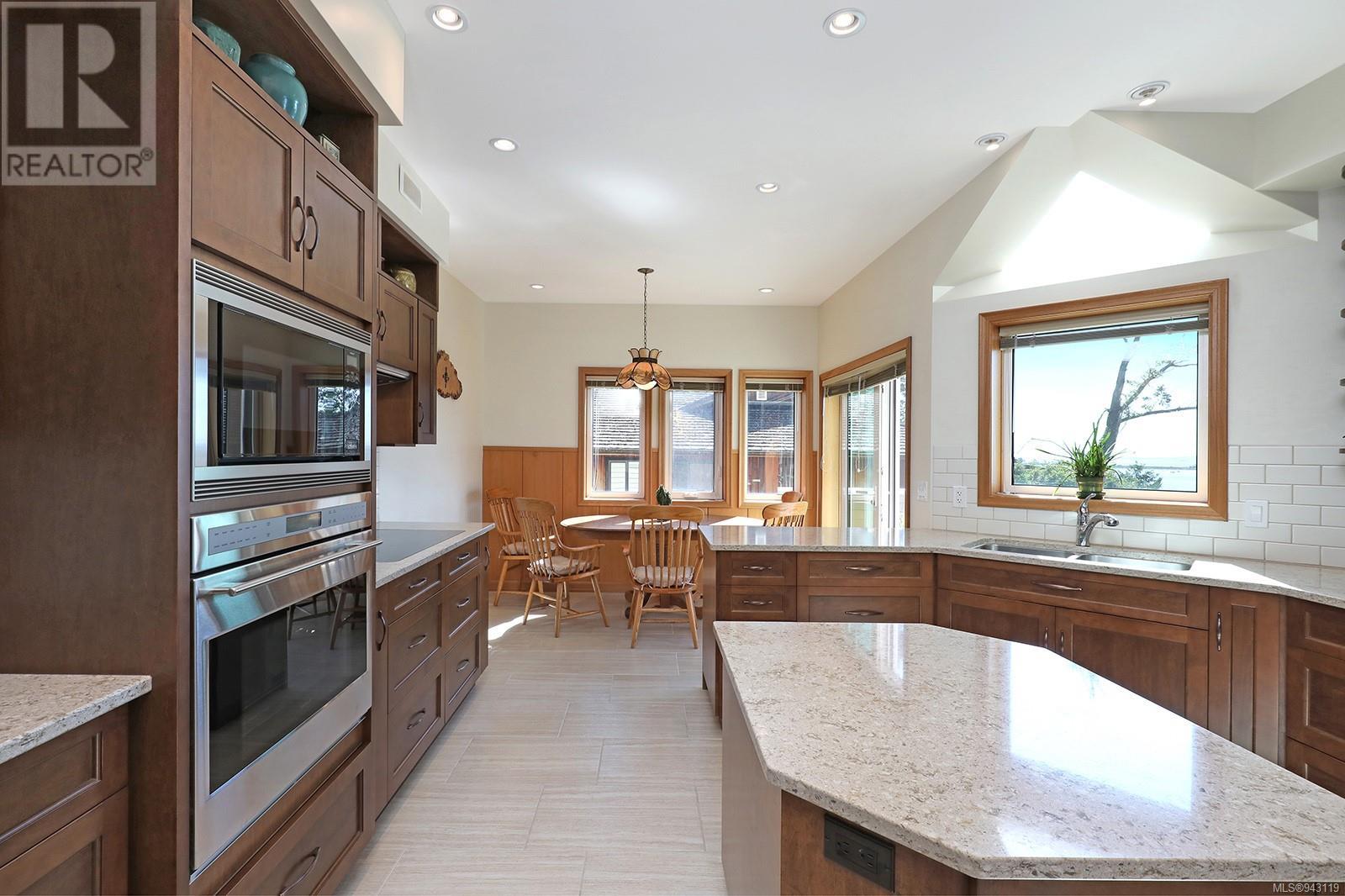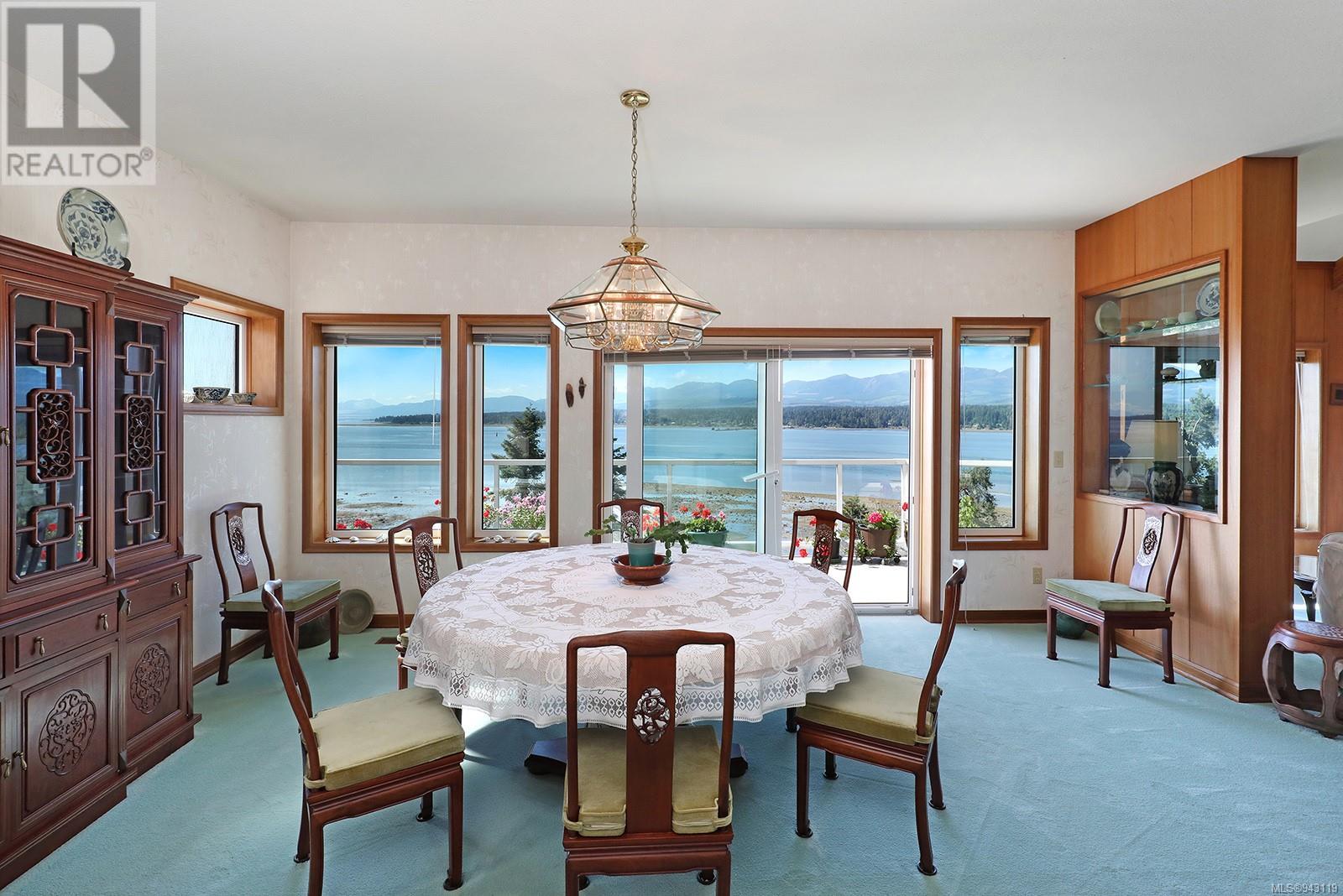 West Coast Highbank Waterfront with stunning ocean views southwest to the Straight of Georgia and to the Beaufort Range. Located on a quiet cul de sac in Comox, a short walk to the Marina, shops & restaurants. Meticulous craftsmanship and thoughtful design create a unique opportunity to enjoy luxury living at it’s finest. Vaulted ceilings soar 19’ overhead and millwork of exotic mahogany from the Philippines create the hallmark of this impressive design. A spacious plan of 4,380 sf, 5 Bedrooms, all with ensuites, and the primary suite on the upper level with 10’ ceilings and captivating views. Those with a culinary flair will love the kitchen reno – 2013, Wolf induction cooktop, wall oven, Sub Zero custom paneled fridge and baking station island. Lower level/walk out offers a games room, bedroom, an abundance of storage rooms & cabinets and stairs leading to the housekeeper’s suite, and 3 car garage. Rehau tilt & turn doors, windows 2012, roof 2009, heat pump 2018, HRV, poly b removed. (id:22211)