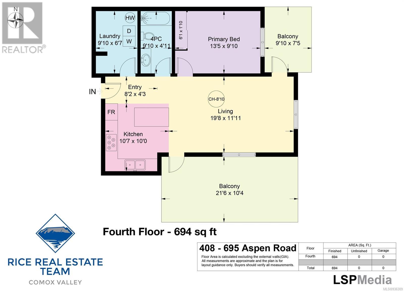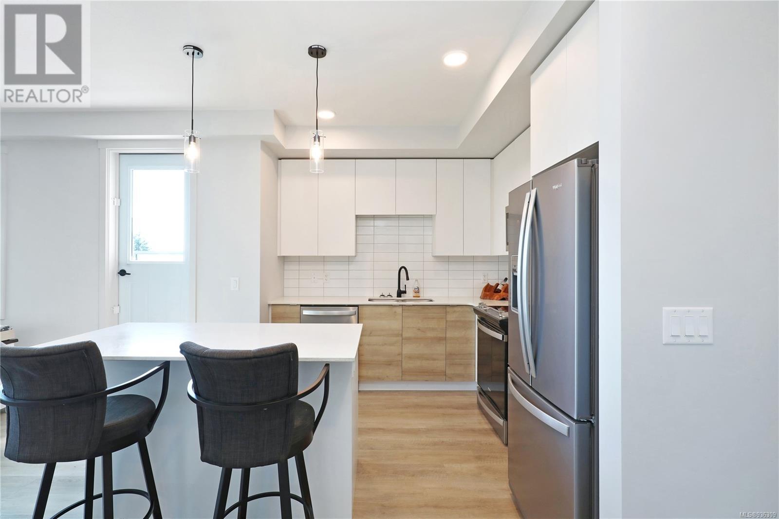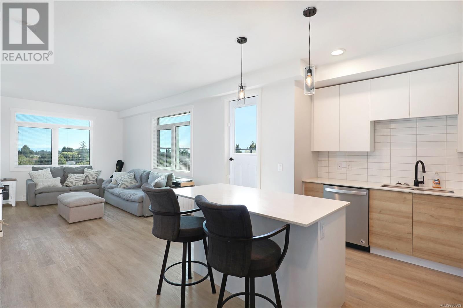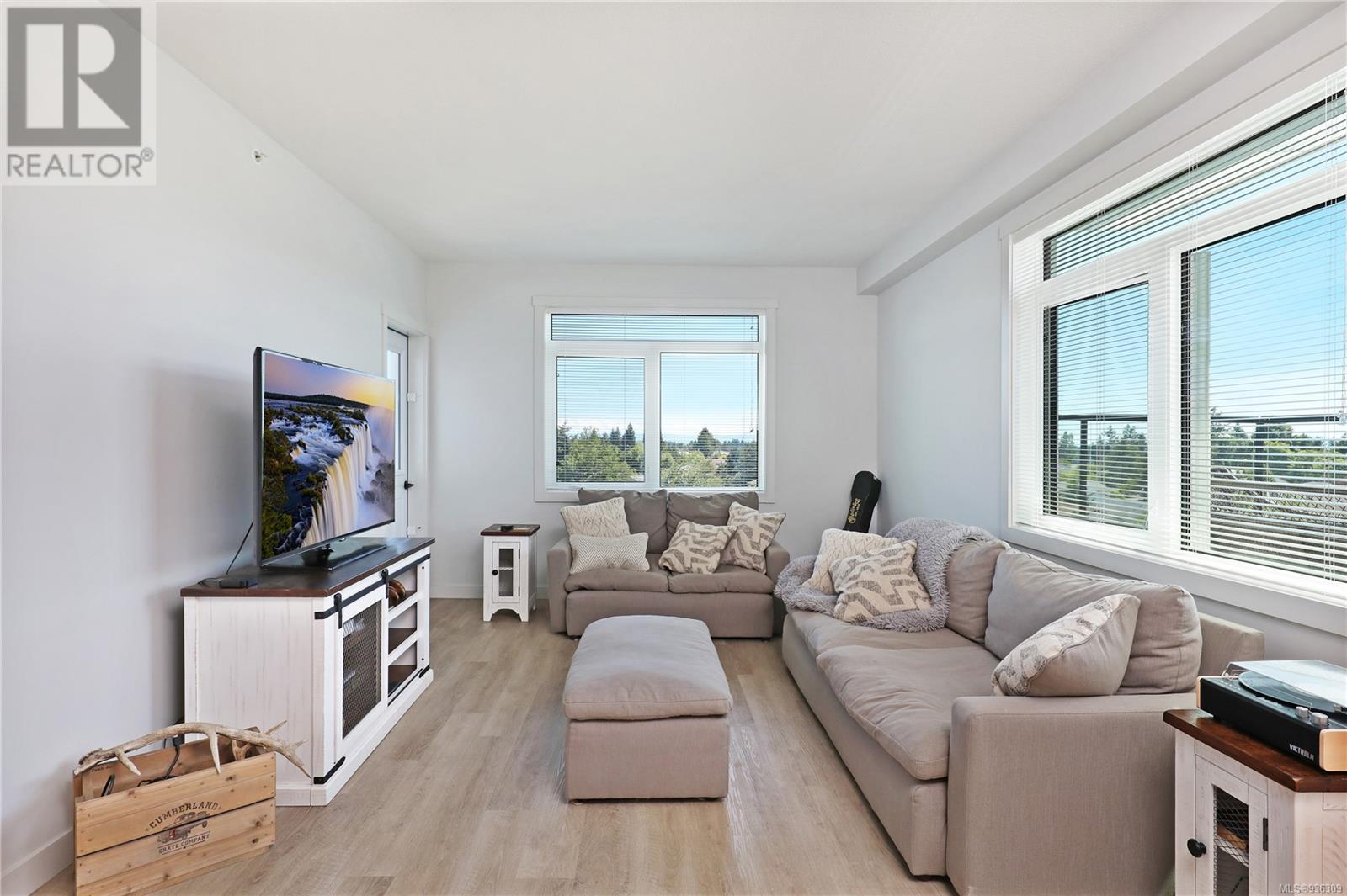 Welcome to Aurora, a 2 year old luxury condo complex in the heart of Comox. This modern corner penthouse condo includes 1 Bed and 1 Bath plus 2 south facing balconies, high end finishes and 694 square feet of easy living space. Step inside to be greeted by an open concept design that blends the living, dining, and kitchen areas. kitchen includes soft close cabinetry, sleek quartz countertops in the kitchen and bathroom, ample storage, and stainless steel appliances. The living area is bathed in natural light that pours in through large windows on 2 sides. From here, step out onto one of the two south-facing balconies and experience amazing views that stretch from the coastal range, ocean view and the Comox Glacier. This Building is secure with FOB access at all entrances and solar panels on the roof to off set the electricity for the common property. 2 Pets are allowed, as are Rentals, and close to many amenities including grocery, pharmacy and walking trails. (id:22211)