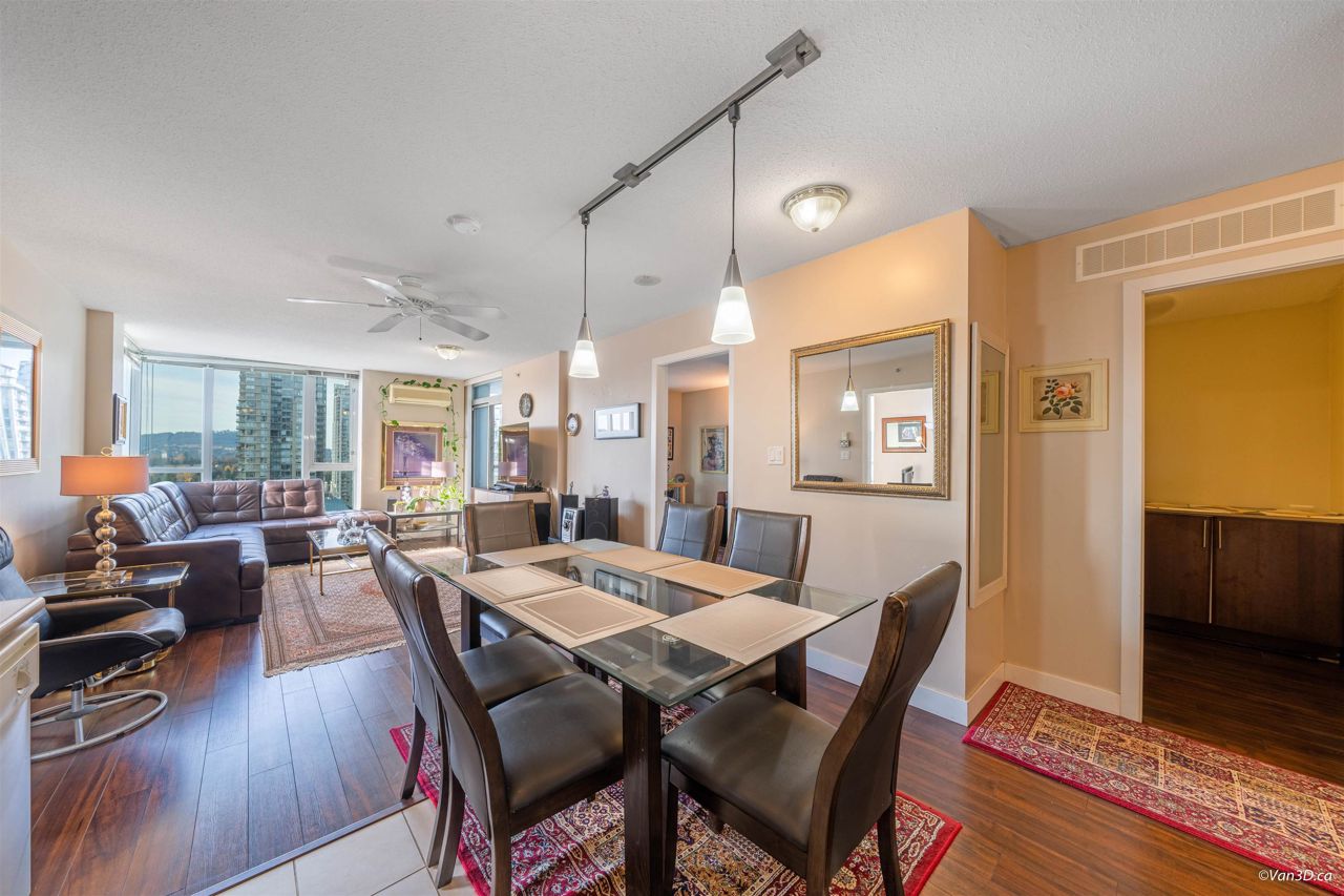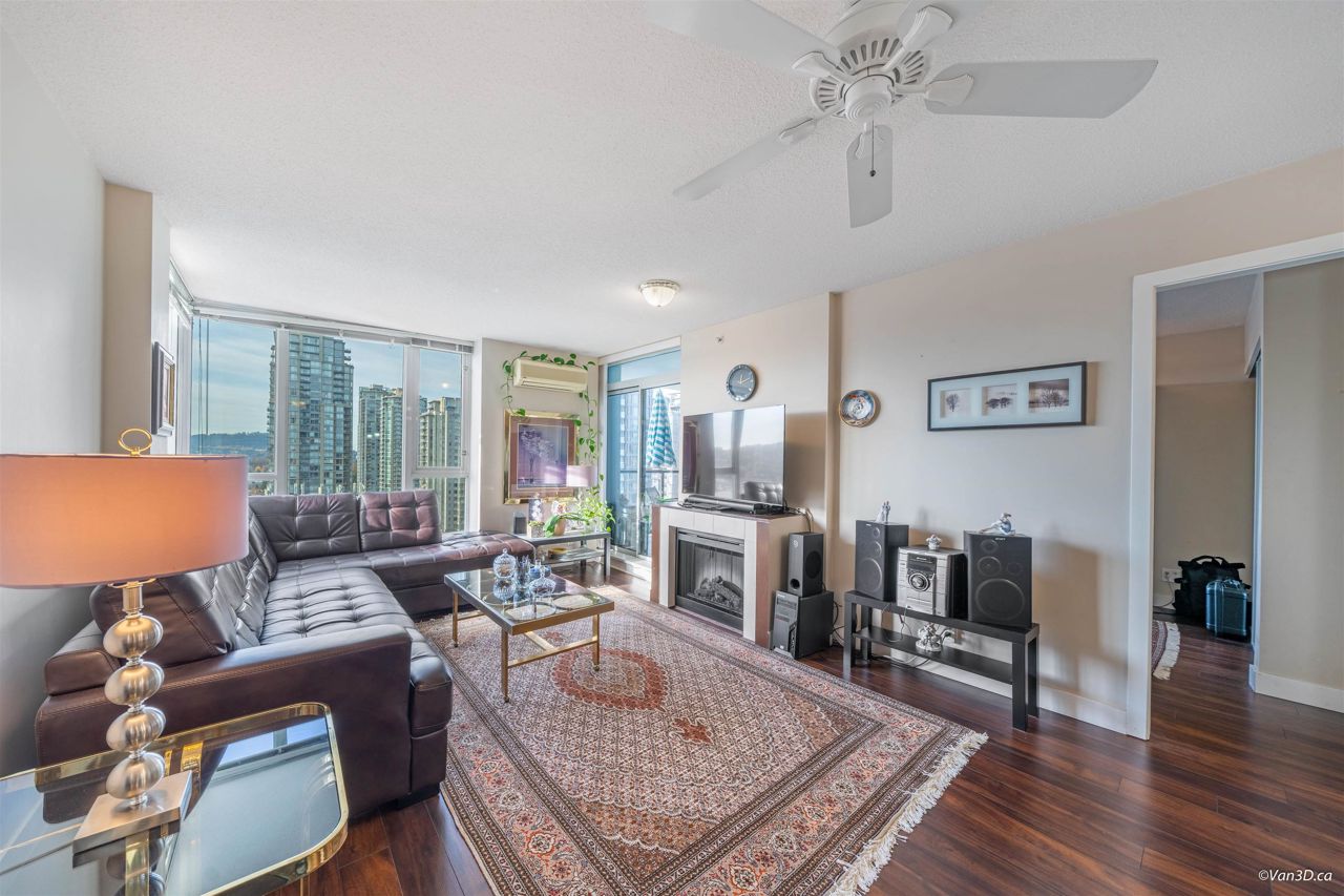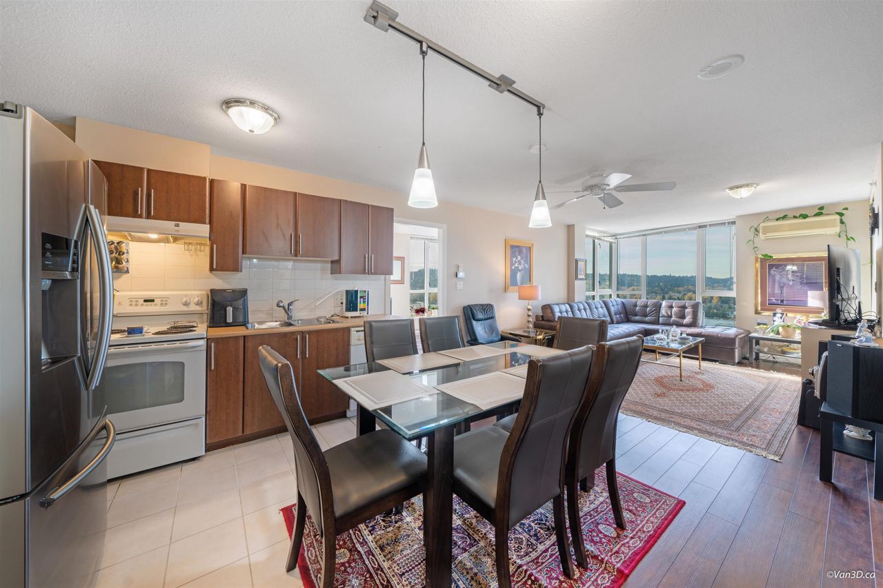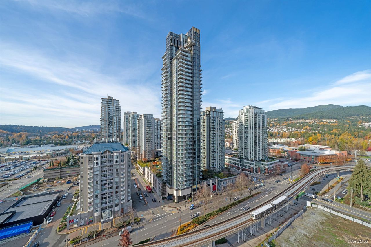 This fantastic south-west unit boasts an open concept layout with two bedrooms, two bathrooms, a den, and built-in air conditioning. It also offers unimpeded views of the city and mountains. Take pleasure in this thoughtfully designed and practical floor plan featuring an electric fireplace, mix S/S & white appliances, 4 years of laminate flooring throughout, a new garburator a 3-year fridge, & a floor-to-ceiling window in the living room. Savour the breathtaking view the city & mountains from your own balcony. Conveniently located near Douglas College, Pinetree Secondary, Evergreen Line Skytrain Station Coquitlam Centre Mail, restaurants, banks, shopping, Lafarge Lake 11brary & West Coast Express. There a party room, media room, dry sauna and gym in this building.