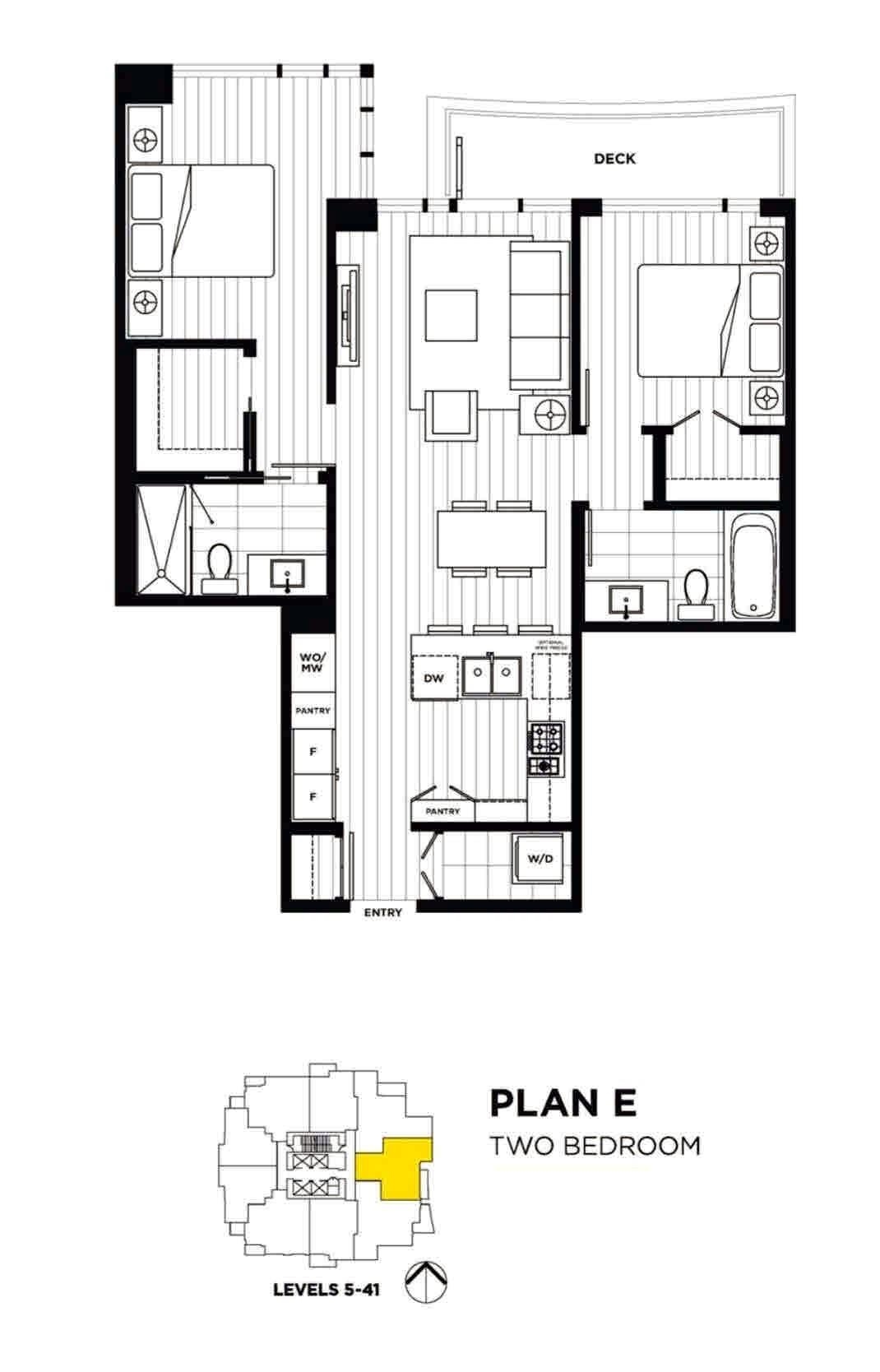 Rarely available mid-level (16th floor) spacious east facing, 2 bedroom 2 bathroom at this price for M3 built by renowned Cressey Developments. Famous "Cressey" kitchen w full-size pull-out pantry, 4 door fridge, built-in oven, microwave, loads of cupboards, quartz countertop. Enjoy the morning sun on your private sundeck with a view of the mountains and park. Party time at 9000 sq ft. Summit Club house on the 47th floor with unobstructed 360 degree mountain and lake views. Close to schools, Coquitlam Centre, Skytrain, Douglas College, library, Community Centre, Lafarge Lake and restaurants.