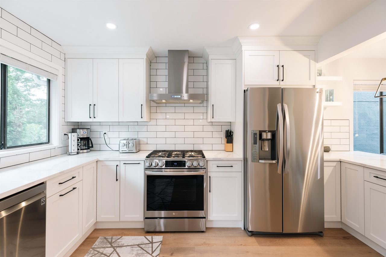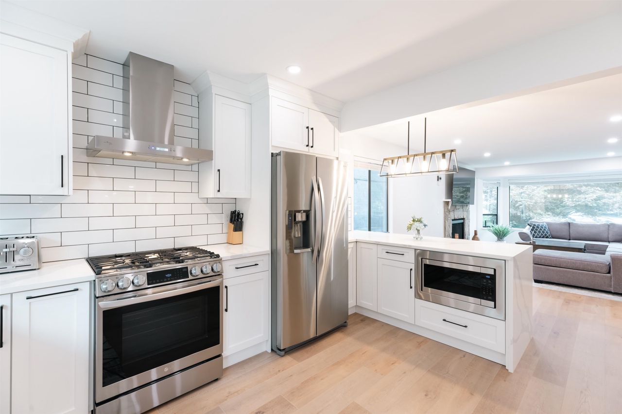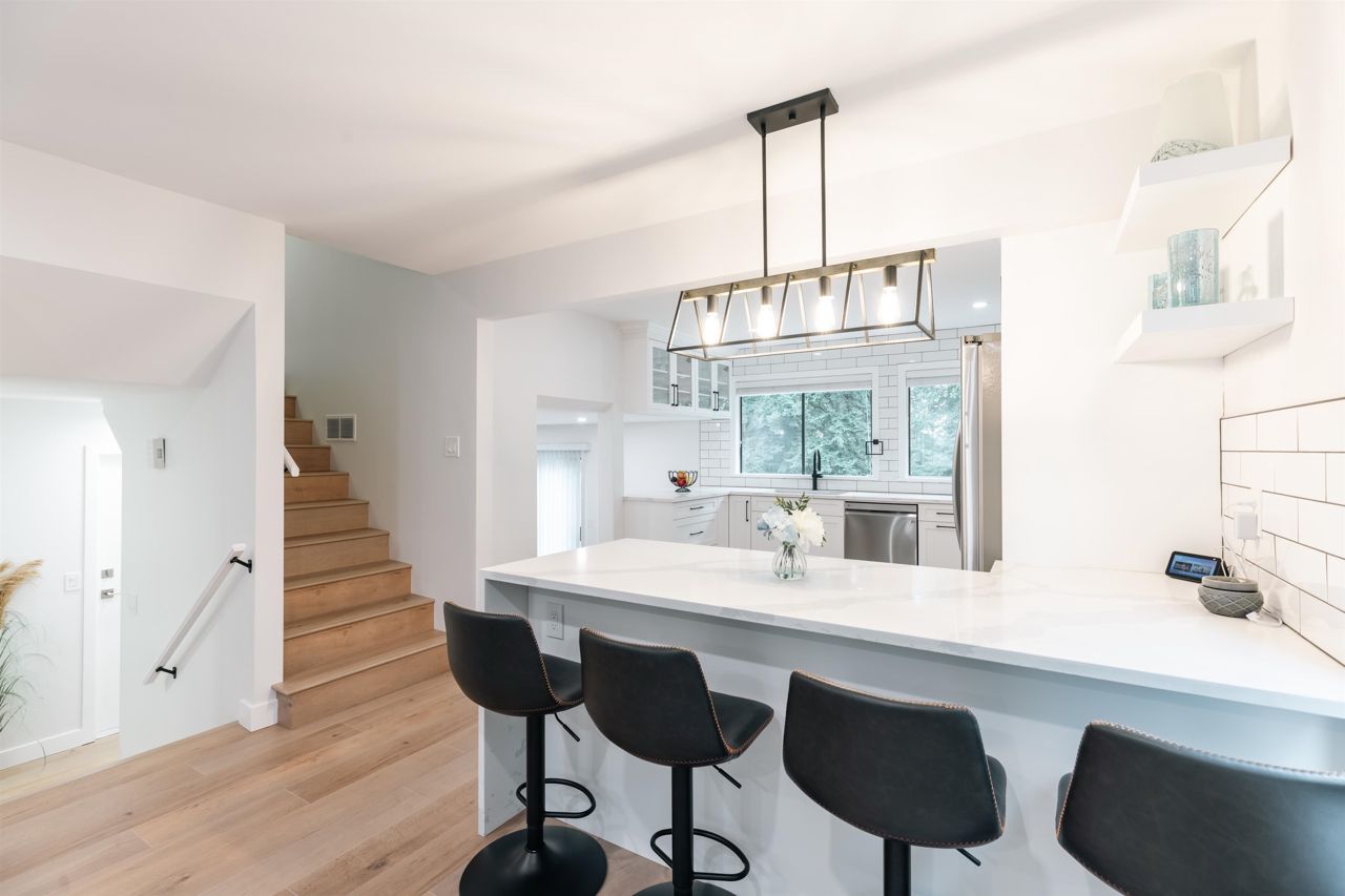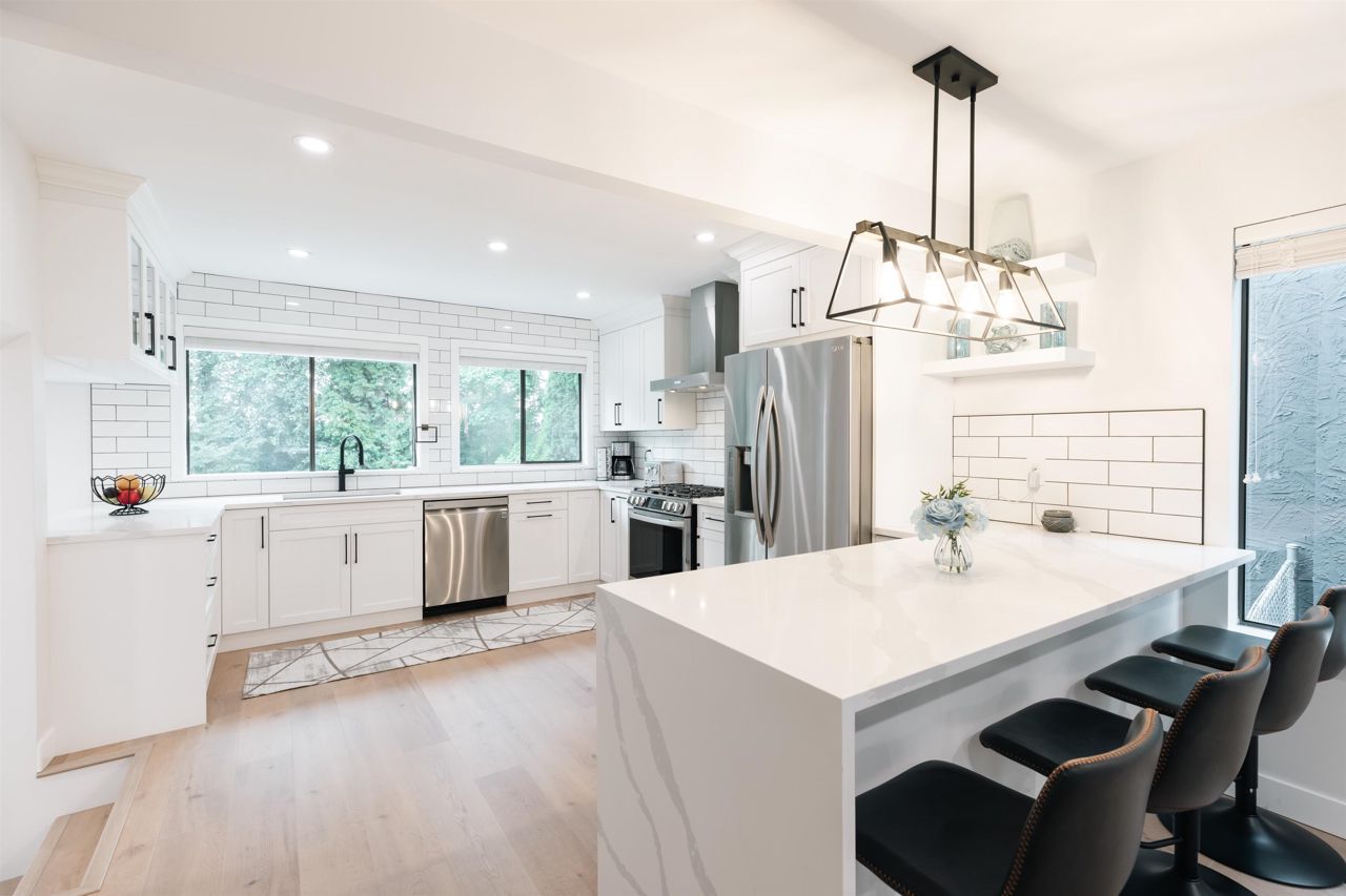 Fully updated home with high-end finished, modern design, situated on a quiet cul-de-sac with a huge backyard surrounded by greenery (8051sf lot!). Inside has been beautifully renovated with new floors, a modern bathroom and a bright kitchen with windows overlooking the backyard. LG Appliances, modern white cabinets, LED smart lighting controlled by Alexa or Google, very bright and meticulously designed. 2 large wood burning fireplaces, dining room opens on to large 20x16' west facing deck overlooking the backyard. Enjoy sunsets, partial city views and complete privacy surrounded by greenery. Basement suite (1 Bed, 1 Bath) with high-end finishes, new modern kitchen and bathroom, laminate floors, in-suite laundry and separate entry.