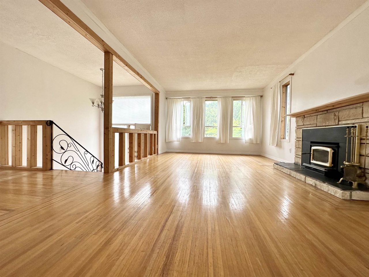 Centrally located in a quiet family-oriented neighbourhood, this charming home is situated on a large 10,428 sq ft lot with ample parking! Features a split entry with a bright living space with h/w flooring throughout and a partially updated kitchen with new backsplash. 3 generous size bedrooms and 1 full bath on the main. Spacious rec room with suite potential, offers1 bed and half bath on the lower level. Wood beams add character to the space. Access to a large deck and private entertainers backyard from the rec room. Bring your design ideas! Walking distance to all levels of schools, transit and parks. Quick access to Hwy 1. A fantastic starter home or investment opportunity!