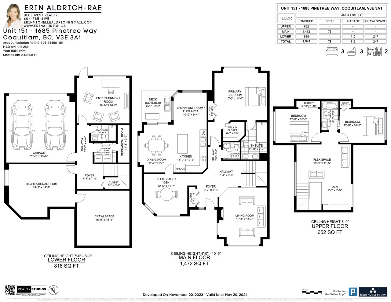 Legal DescriptionSTRATA LOT 51, PLAN LMS1312, DISTRICT LOT 6769, SECTION 23, TOWNSHIP 39, GROUP 1, NEW WESTMINSTER LAND DISTRICT, TOGETHER WITH AN INTEREST IN THE COMMON PROPERTY IN PROPORTION TO THE UNIT ENTITLEMENT OF THE STRATA LOT AS SHOWN ON FORM 1