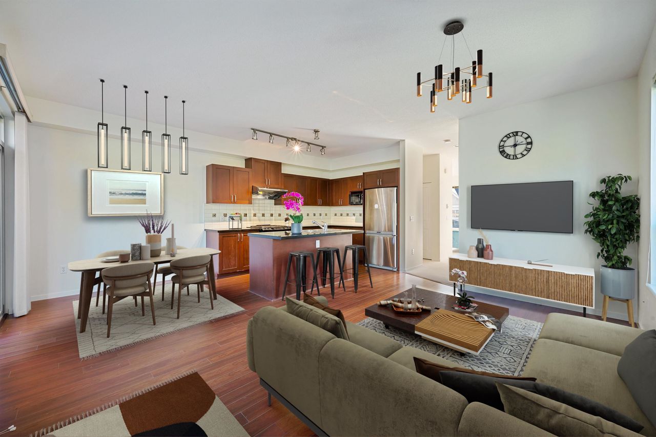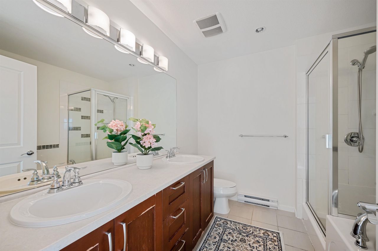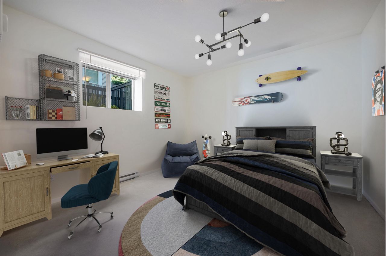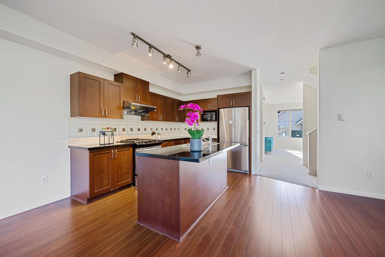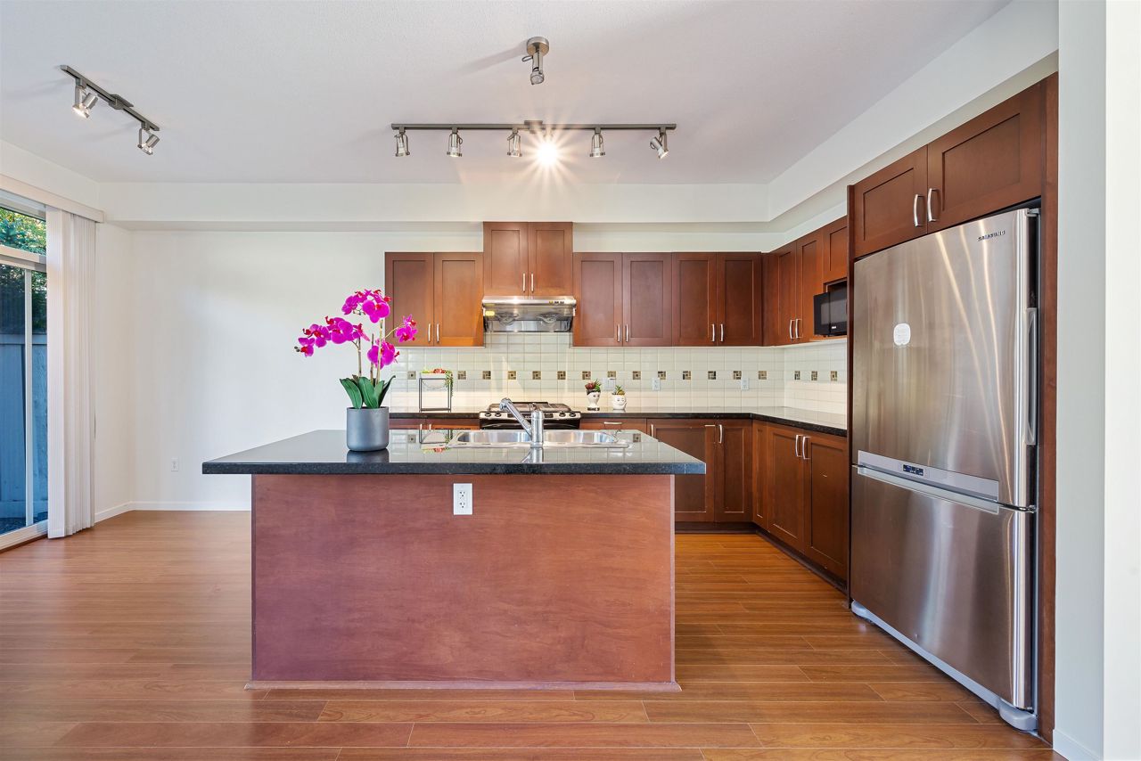 Quality built by reputable Polygon. Well Kept 4 bedroom & 3.5 bathroom CORNER UNIT with big fenced yard in the Quiet and Friendly neighborhood. South facing with a lot of sunshine. Double side by side Garage with extra 2 parking in front. Newly painted interior. New Gas Stove. Main floor has Granite counter top perfectly matches with Stainless Steel appliances. Upper floor has a huge & bright Primary bedroom and 2 spacious bedrooms. Fully finished basement comes with a huge bedroom with ensuite for guests or your in-laws makes this a perfect family home. Exclusive clubhouse amenities include outdoor poor, movie theatre, exercise room, guest suite and more. Great located within walking distance to Lafarge Lake, Skytrain, Pinetree Secondary and Douglas College.