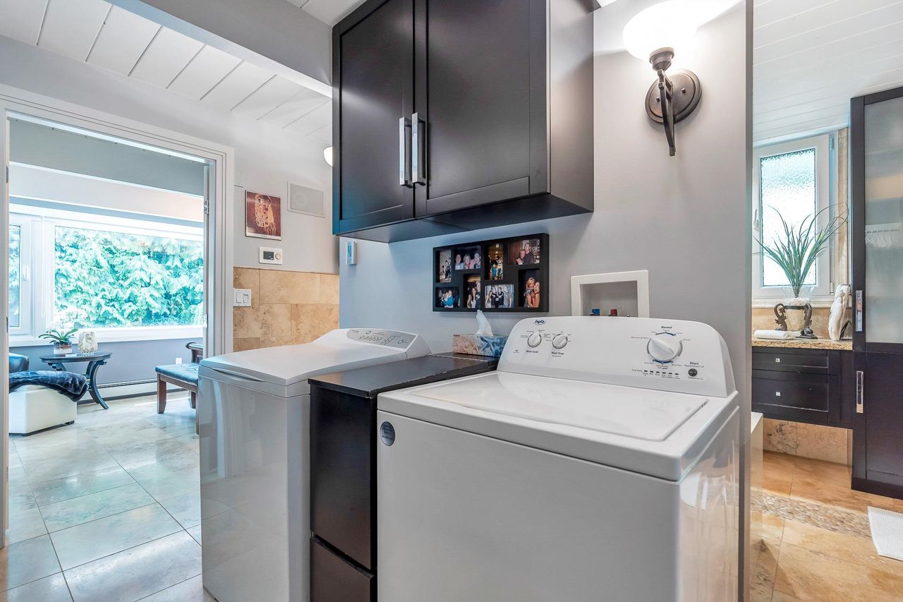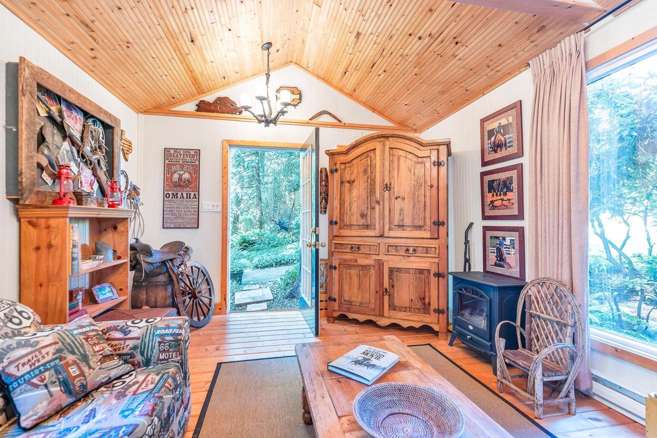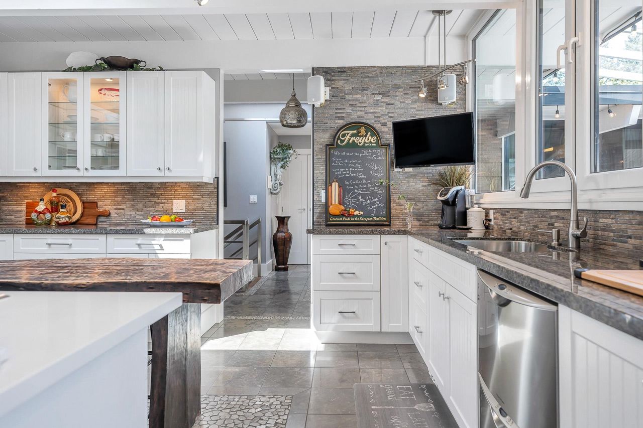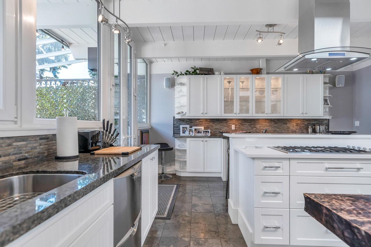 A truly unique property! This 2500 sqft, 2 bedroom (could be 3), 2 bathroom, completely remodeled home sits on a park-like 17,000+ sqft lot on a quiet street! Spacious high end kitchen built for entertaining features Fisher Paykel appliances, heated floors, fabulous kitchen island and wet bar. Newer roof, plumbing, deck, tilt and turn windows, 2 car garage with heating and new door, big driveway, 3 separate private outdoor areas include a Zen area, covered front patio and huge back deck that overlooks a completely serene backyard and views of the Fraser River. Updated bathrooms with extensive tile and travertine stone, heated floors and a spa inspired ensuite bathroom off primary bedroom. Backyard features a separate garden sanctuary, creek and garden cottage. Downstairs offers flexibility