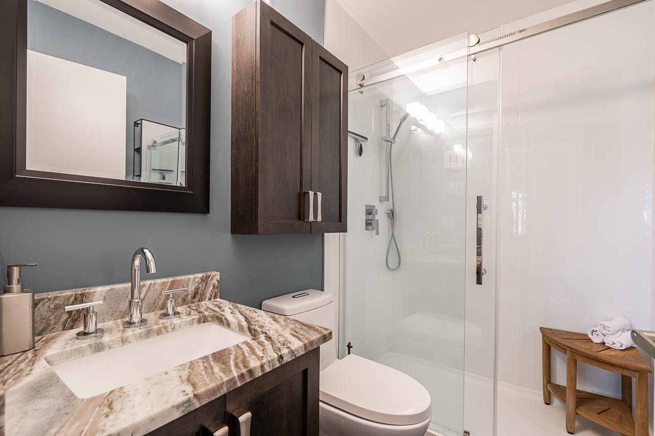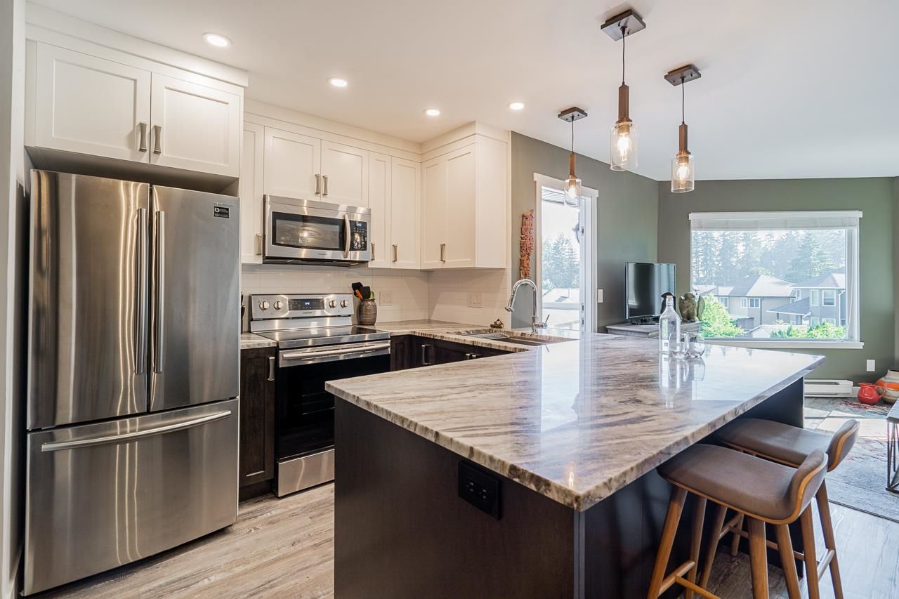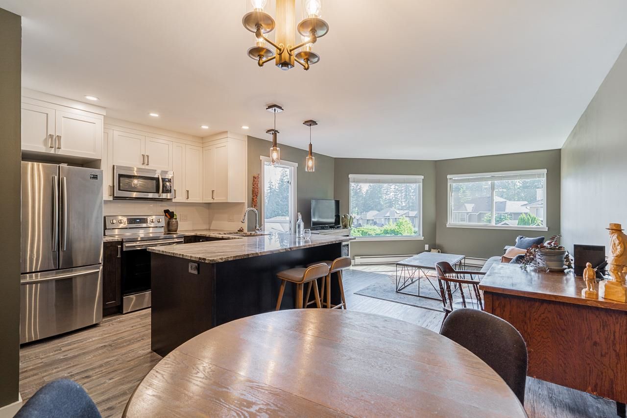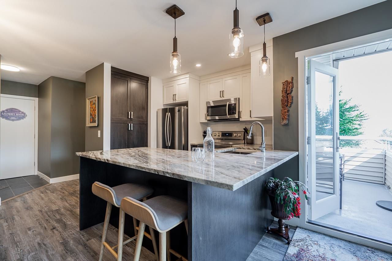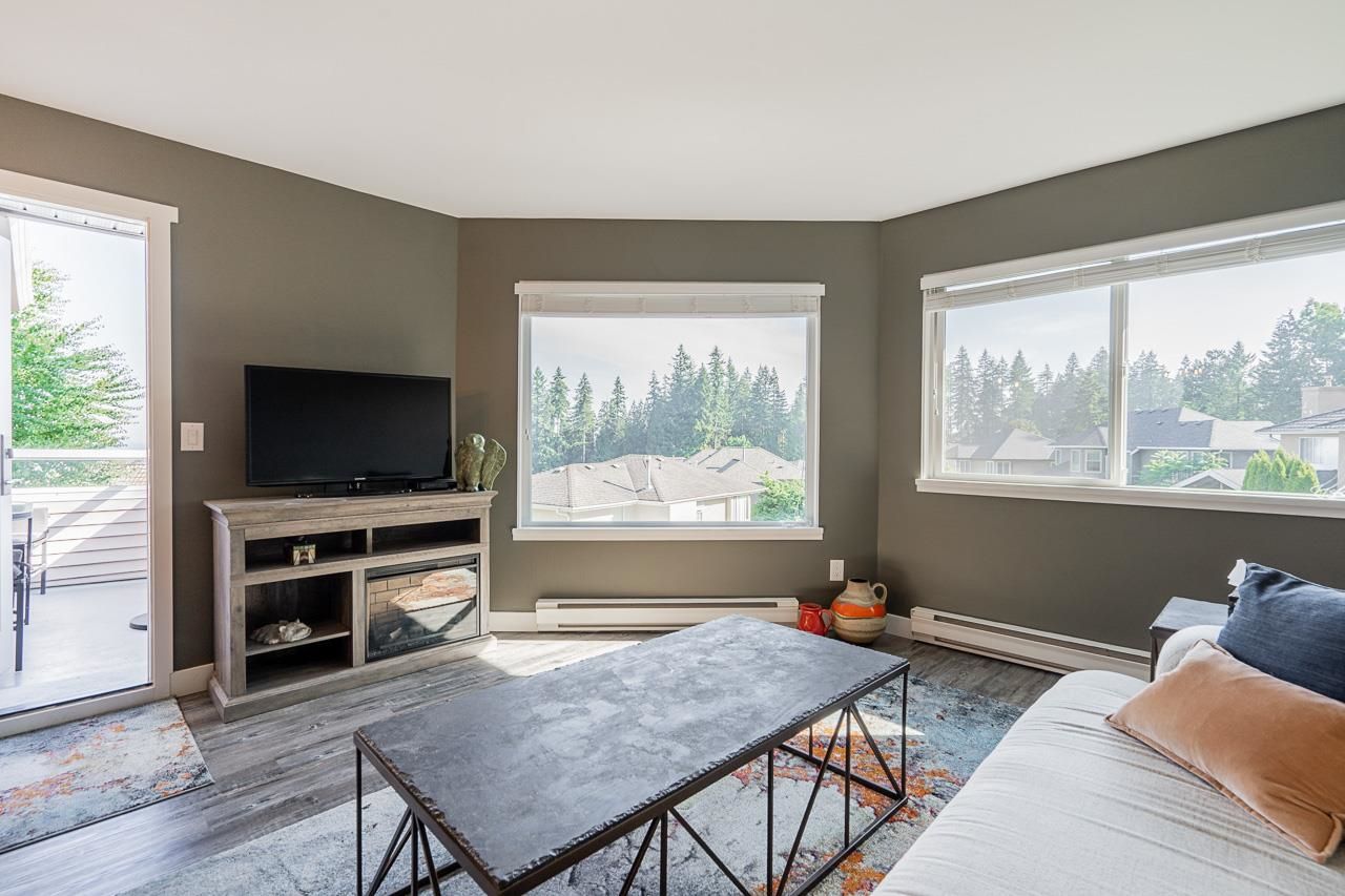 ABSOLUTELY NOTHING TO DO BUT MOVE IN! This is it! Top floor, panoramic views and fully renovated 2 bed and 2 full bath home. Fully renovated top to bottom: new floors, quartz kitchen and bathroom countertops, maximized custom built-in storage organizers in all closets. BONUS: an in-suite laundry room. Enjoy this quiet and private complex and your morning coffee on the balcony looking over the private green space. Tons of natural light flood the living area and you can enjoy the panoramic views of Mount Baker and south Coquitlam. Centrally located for easy walking access to shops, transits and parks. Comes with 1 parking stall and large storage locker. Well run strata with new vinyl windows, replaced deck membranes, re-piping approx 2014. Don't miss out! OPEN HOUSE JUNE 10 & 11, 2:30-4:30PM