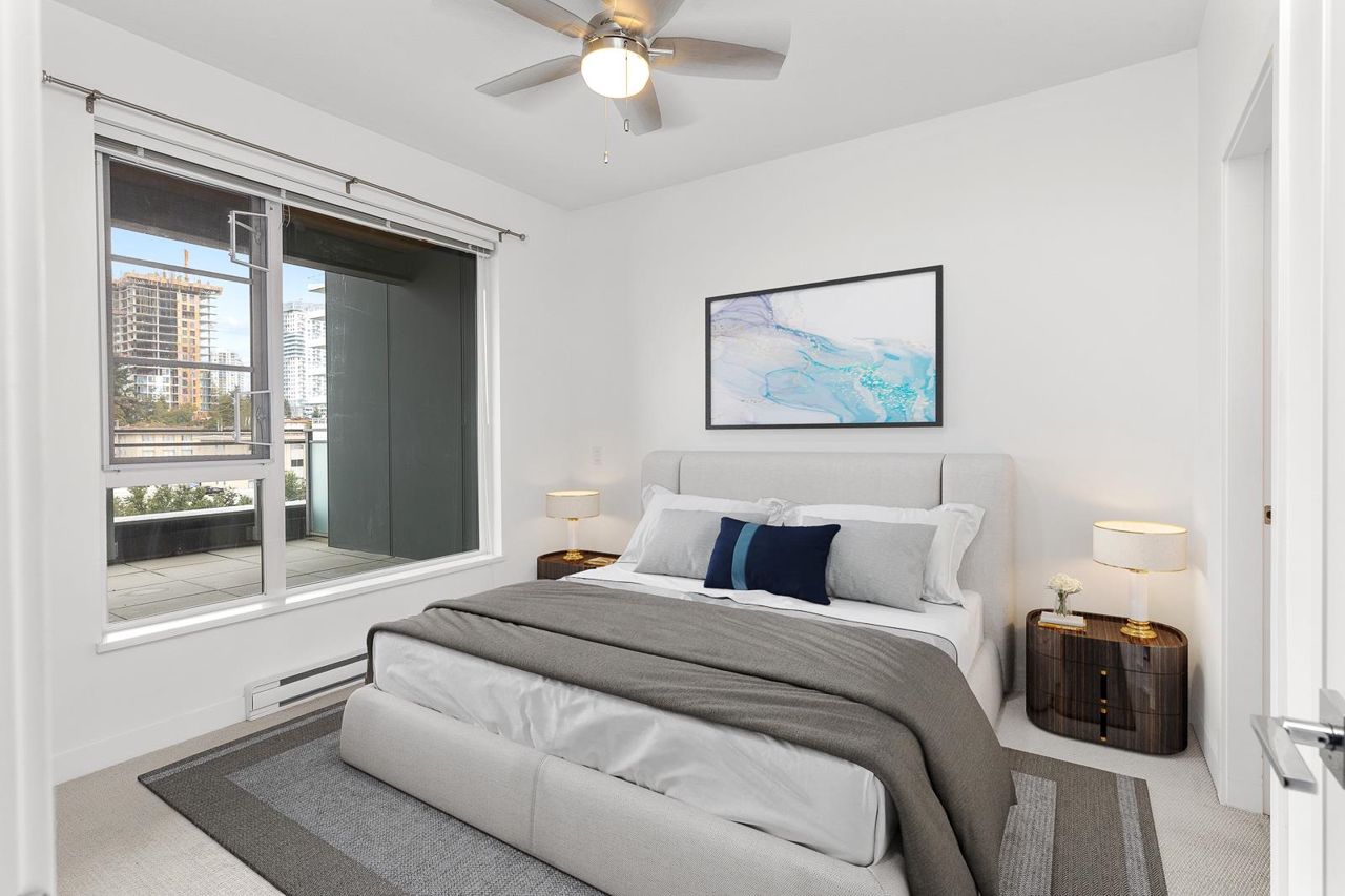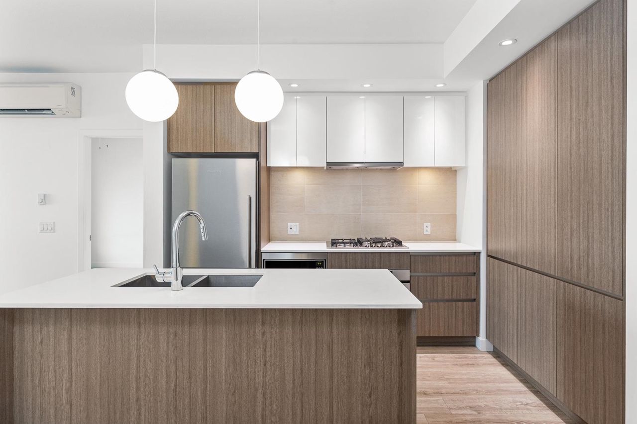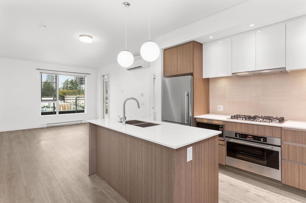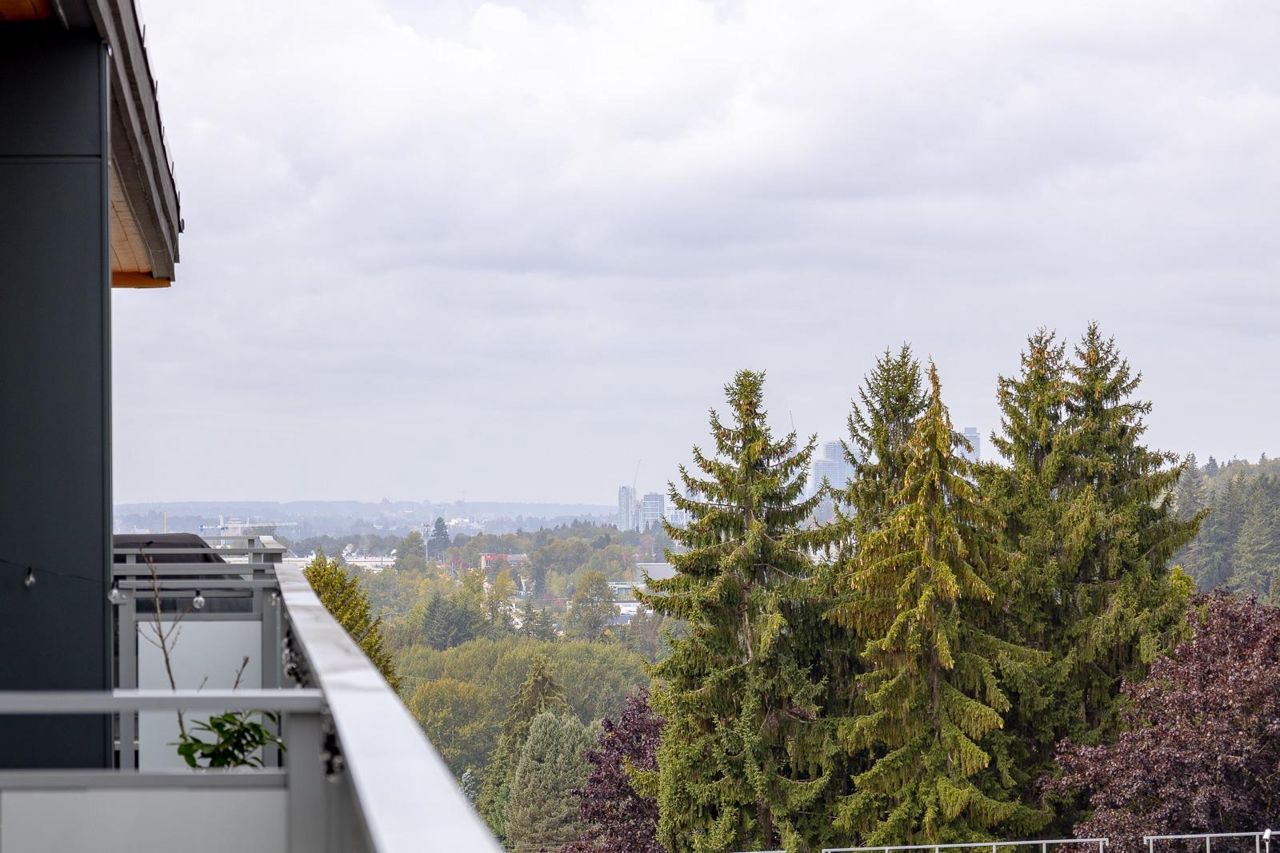 Welcome to the Penthouse at "Nelson on Foster", nestled in the heart of Burquitlam and walkable to the Skytrain, groceries and Lougheed Mall. This 2 bedroom + den has a great layout and modern finishings. Features include laminate throughout the main living areas and quartz counters, stainless steel appliances, under mount sink and gas range in the kitchen. The master bedroom has carpet and a full-size, tiled bathroom with walk-in shower and double vanity. There's also a second bedroom (opposite the master), a second full-size bathroom and an office/den. North-facing deck covers the full length of the home at 300sq/ft. Complete with one parking stall & one storage locker. With a gym in the complex, this unit is truly a hidden gem.