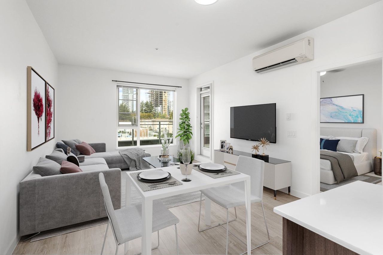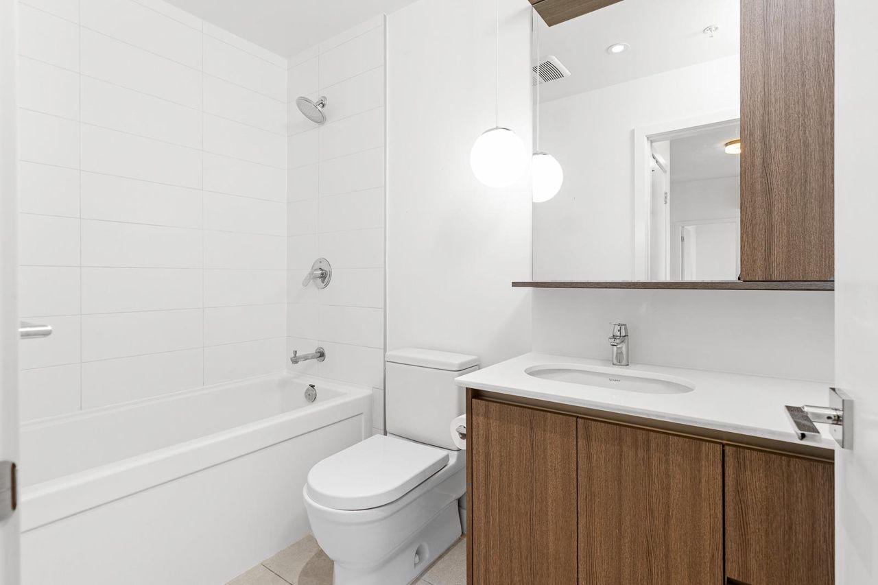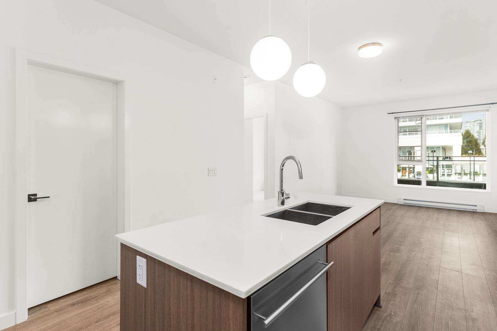 Welcome to the Penthouse at "Nelson on Foster", nestled in the heart of Burquitlam and walkable to the Skytrain, groceries and Lougheed Mall. This 2 bedroom + den has a great layout and modern finishings. Features include laminate throughout the main living areas and quartz counters, stainless steel appliances, under mount sink and gas range in the kitchen. The master bedroom has carpet and a full-size, tiled bathroom with walk-in shower and double vanity. There's also a second bedroom (opposite the master), a second full-size bathroom and an office/den. North-facing deck covers the full length of the home at 300sq/ft. Complete with one parking stall & one storage locker. With a gym in the complex, this unit is truly a hidden gem.