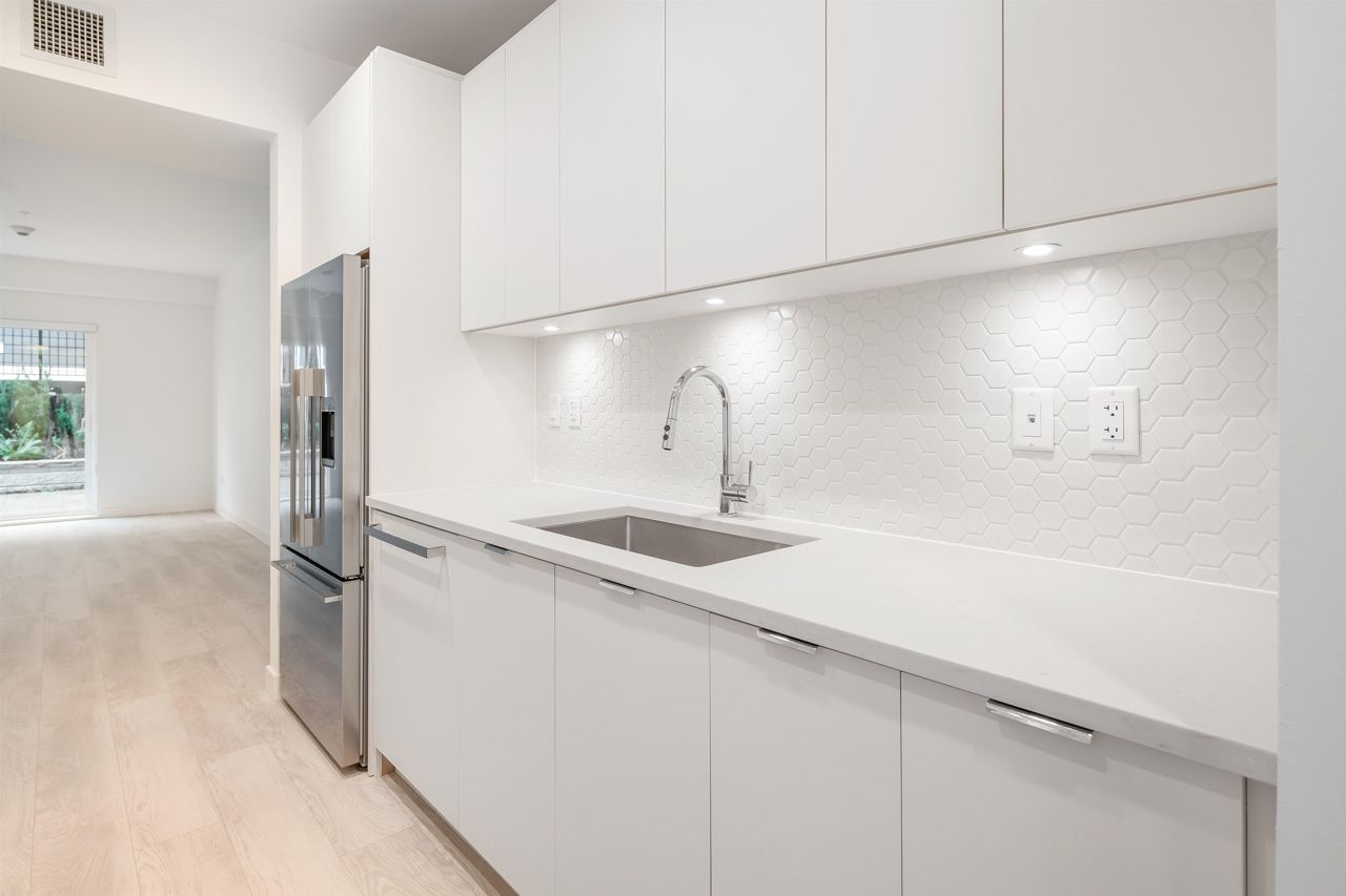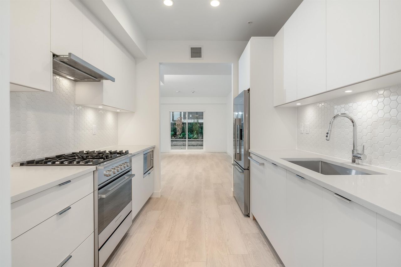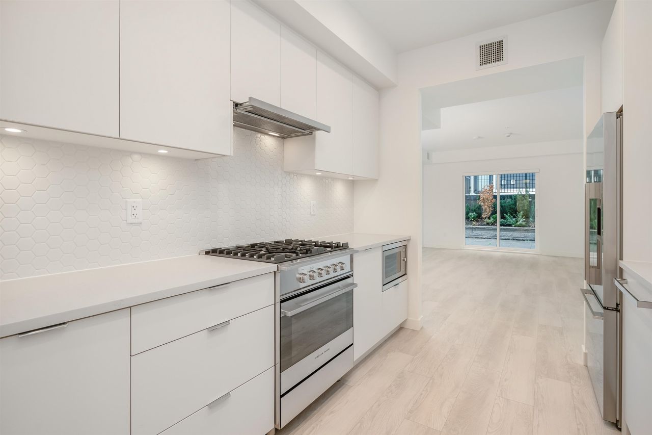 Garden level townhome at Avana, boutique collection 52 contemp townhomes nestled w/in serene neighbourhd yet central West Coq. Situated just mins to Burquitlam Skytrain, New YMCA, shopping, transit, schools, & expanded Cottonwood Park. Don’t love stairs? You’ll love this South facing 1-level 2 bed/2 bath home w/ expansive windows for max natural light; custom designed - contemporary kitchen cabinetry w/ quartz countertops & tile backsplash, gas stove, retractable rangehood, French doors fridge & built-in microwave oven. Easy care laminate & tile floorings throughout. Spacious primary bedroom with ensuite, 2nd bed with full bath, linen closet, full sized laundry set. EV ready secure underground parking, spacious patio with gas bib for summer BBQ & entertaining. Move in anytime!!!