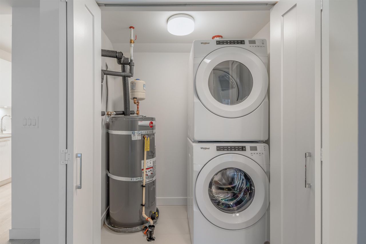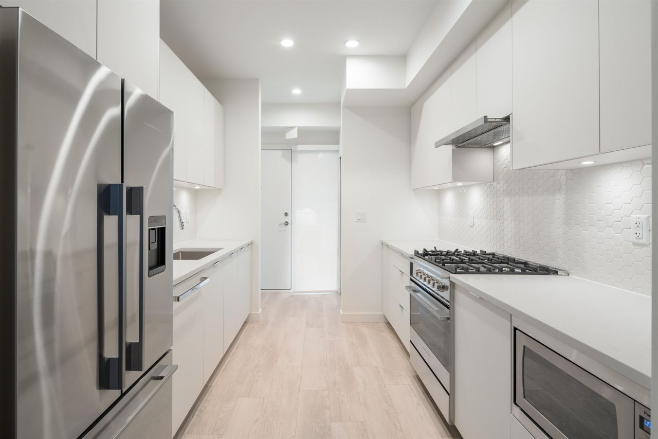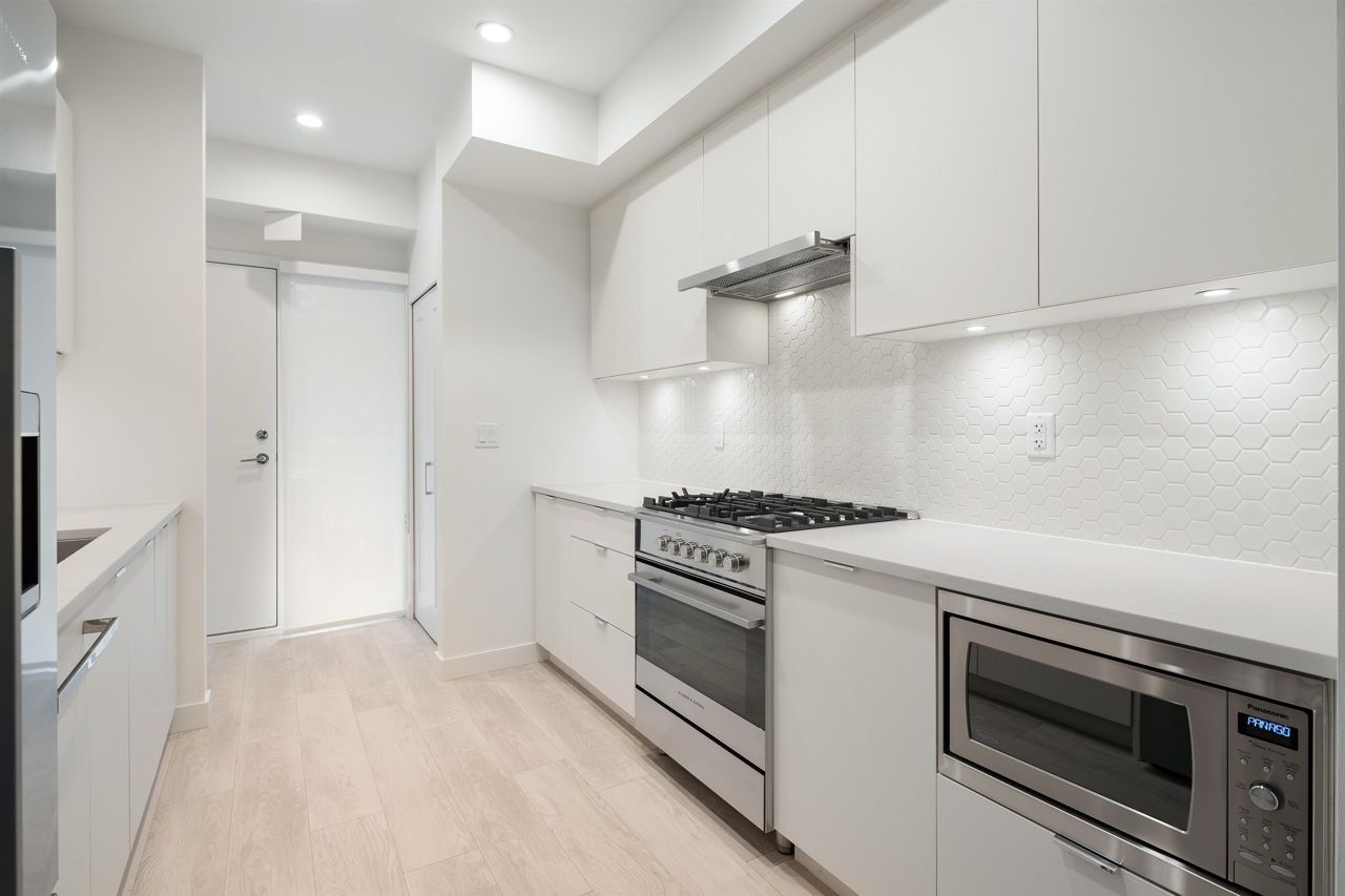 Garden level townhome at Avana, boutique collection 52 contemp townhomes nestled w/in serene neighbourhd yet central West Coq. Situated just mins to Burquitlam Skytrain, New YMCA, shopping, transit, schools, & expanded Cottonwood Park. Don’t love stairs? You’ll love this South facing 1-level 2 bed/2 bath home w/ expansive windows for max natural light; custom designed - contemporary kitchen cabinetry w/ quartz countertops & tile backsplash, gas stove, retractable rangehood, French doors fridge & built-in microwave oven. Easy care laminate & tile floorings throughout. Spacious primary bedroom with ensuite, 2nd bed with full bath, linen closet, full sized laundry set. EV ready secure underground parking, spacious patio with gas bib for summer BBQ & entertaining. Move in anytime!!!