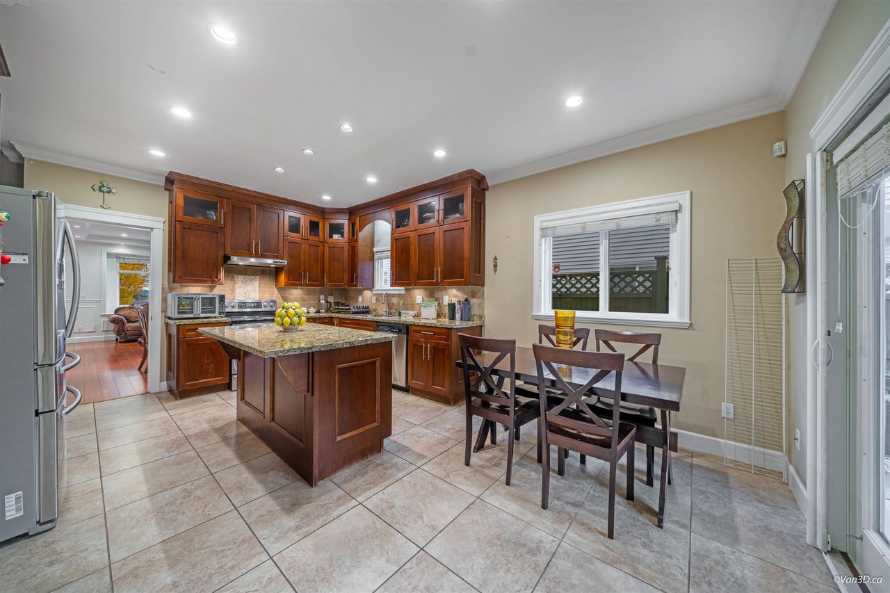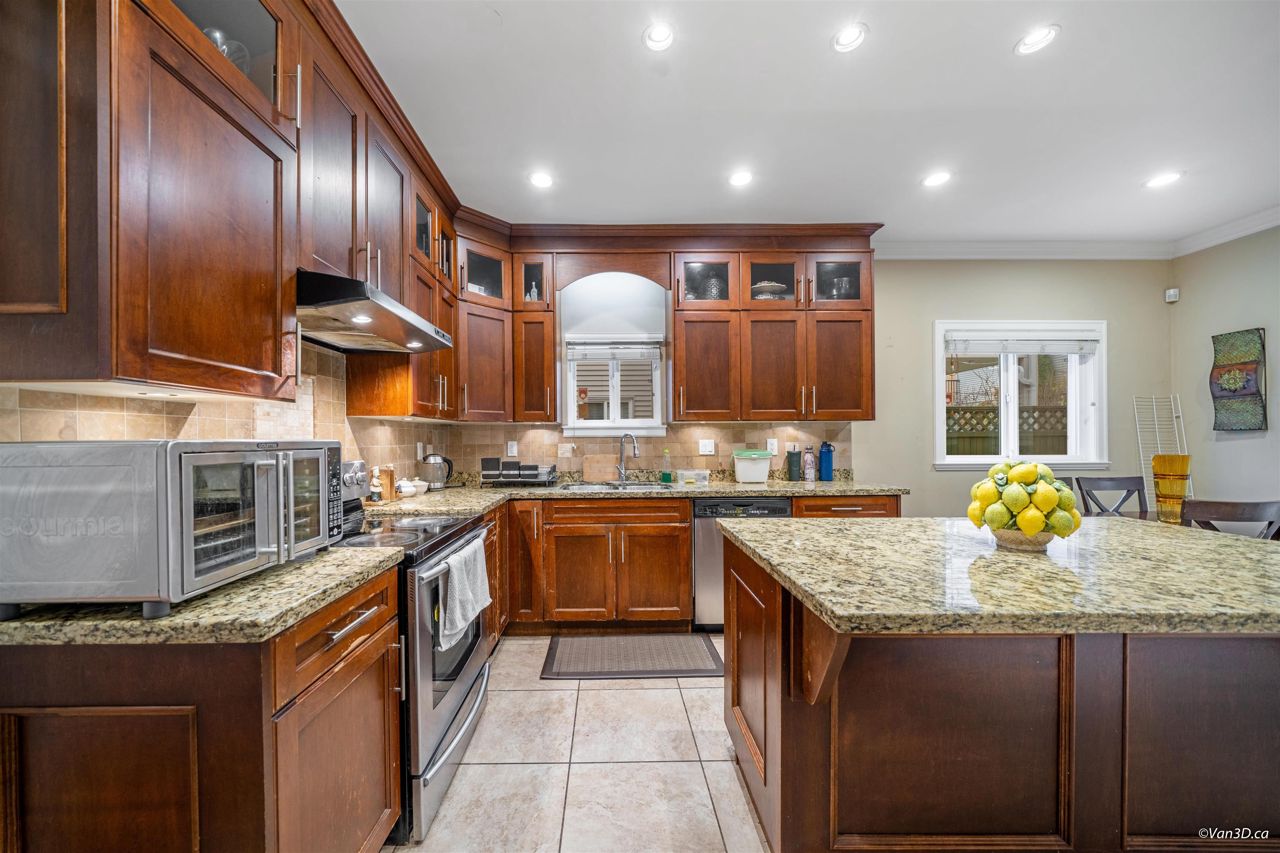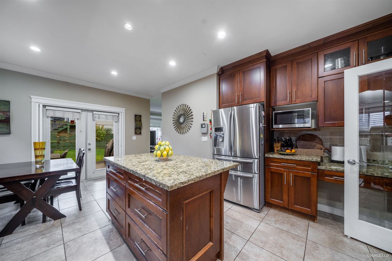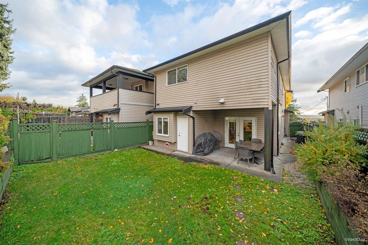 Central location. Rarely found over 2200 sqft 1/2 Duplex with South View of the Fraser River, 4 Bedrooms, 3.5 Baths, big front yard and back yard. Radiant Heating. Main floor has spacious living + dinning space with nature gas fire place. Bright Kitchen with Granite Counters, Maple Cupboards, and connect to back yard patio. Main floor also has 1 bedroom and 1 bathroom and a recreation area with mini bar, provide excellent opportunity for 1 bedroom Suite with seperate entry. Lighted Stairs. Upstairs has 3 large bedrooms and 2 bathrooms, and master bedroom is ensuite. Garage with additional parking on side. Open house 2-4pm, Feb 18