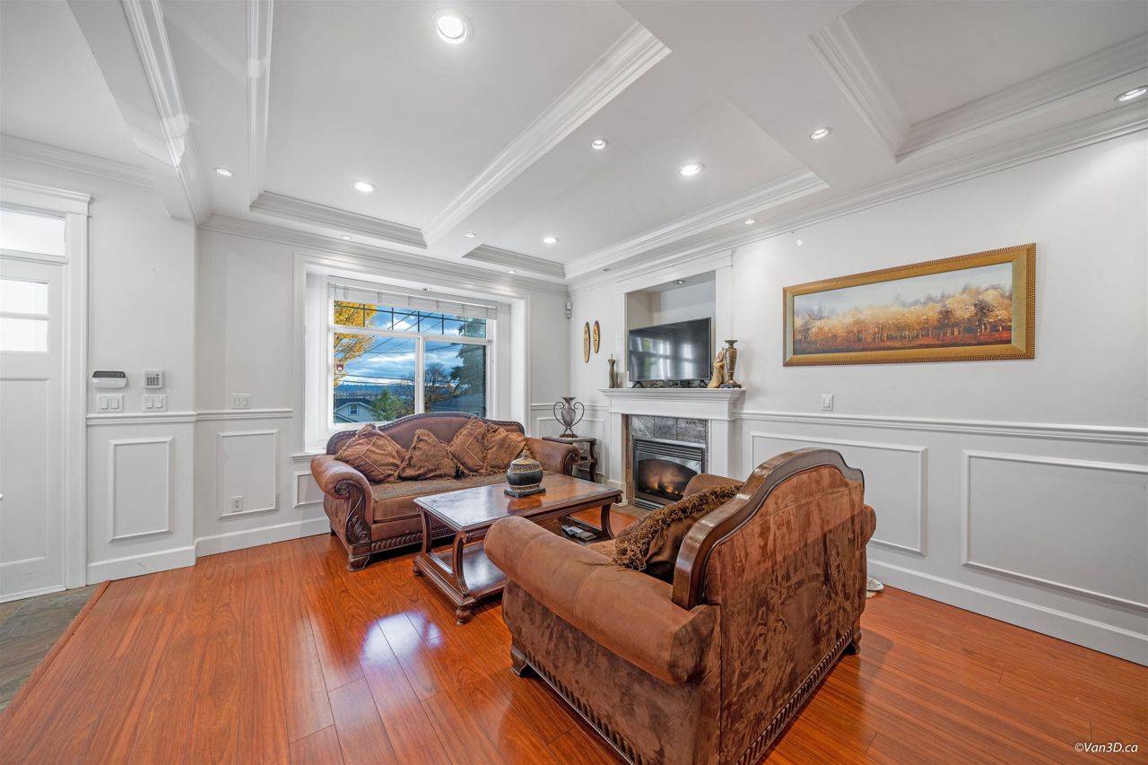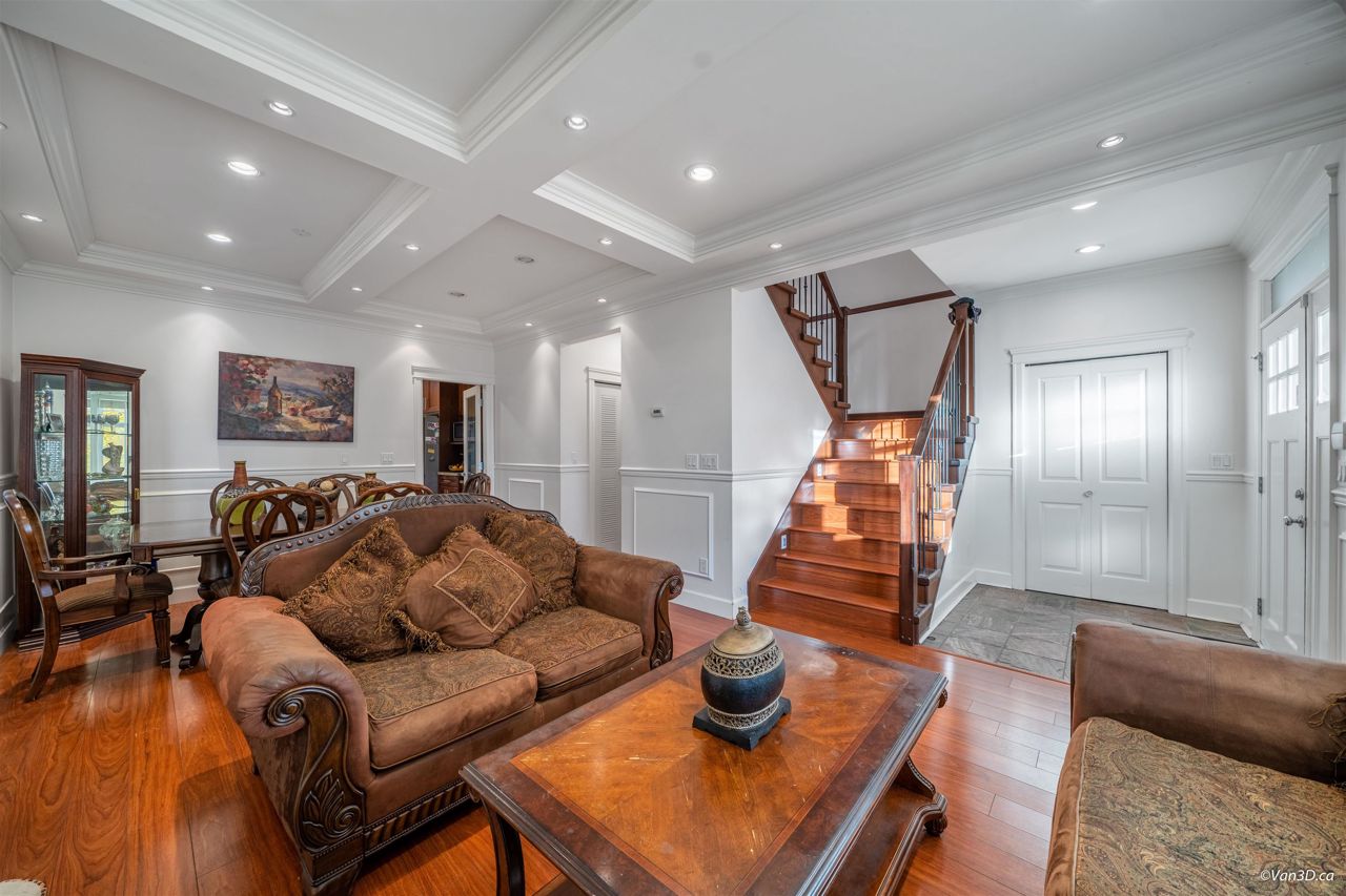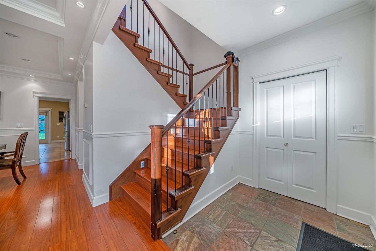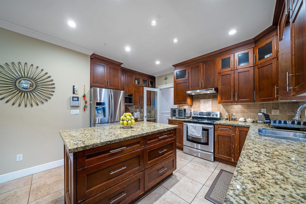 Central location. Rarely found over 2200 sqft 1/2 Duplex with South View of the Fraser River, 4 Bedrooms, 3.5 Baths, big front yard and back yard. Radiant Heating. Main floor has spacious living + dinning space with nature gas fire place. Bright Kitchen with Granite Counters, Maple Cupboards, and connect to back yard patio. Main floor also has 1 bedroom and 1 bathroom and a recreation area with mini bar, provide excellent opportunity for 1 bedroom Suite with seperate entry. Lighted Stairs. Upstairs has 3 large bedrooms and 2 bathrooms, and master bedroom is ensuite. Garage with additional parking on side. Open house 2-4pm, Feb 18