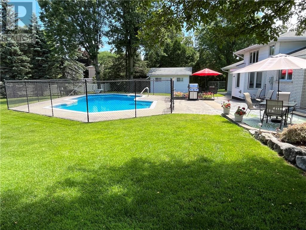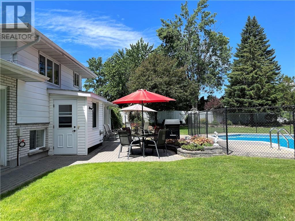 Here's a rare opportunity to own a unique home that is nestled on one of the biggest residential lots in the city (1/2 acre)! This 4-level side split home is situated on a sought after, family friendly crescent and just a short walk to the Cornwall Community Hospital. Sitting on a nicely landscaped lot, the huge fenced-in backyard with in-ground swimming pool (cement), large patio area and 16'x16' shed/pool room, is a very rare find in the city! Inside, the main floor features a bright & spacious living room w/gas fireplace, a nice kitchen w/breakfast bar & ample cupboard/counter space, and a dining area with French doors that lead to a backyard oasis. The upper level has 3 bedrooms and a 3pc bathroom, while the 2 lower levels add 800sq ft of living space and feature a family room w/gas fireplace, 3pc bath, extra bedroom, a large rec room w/kitchenette and space for an office/den/bdrm. This home has been very well cared for and is ready for a new family to call it their own! (id:22211)