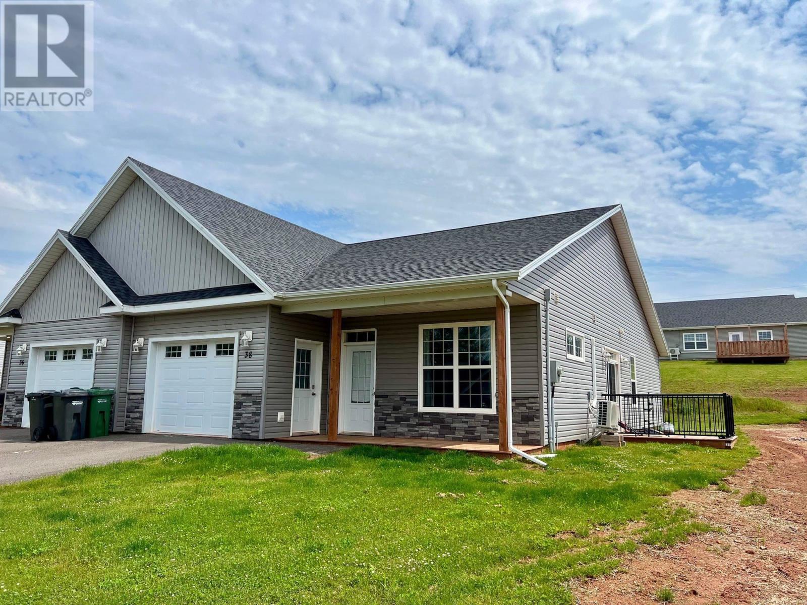 Welcome to 38 Mill Pond Lane, situated in the highly desirable West River Estates subdivision in Cornwall, PEI. This attractive semi-detached home offers a single level of comfortable living space, spanning over 1250 square feet, and includes an attached heated garage. As you enter, you'll immediately appreciate the inviting open concept design with 9-foot ceilings throughout the house. With 3 bedrooms and 2 bathrooms, including an ensuite in the master bedroom, this home provides ample accommodation. Additionally, it features convenient amenities such as an attached garage, a side privacy deck supported by sturdy goliath screw piles, and a charming front covered veranda. The heating system comprises a ductless heat pump and electric baseboards, ensuring efficient electric heating. (id:22211)