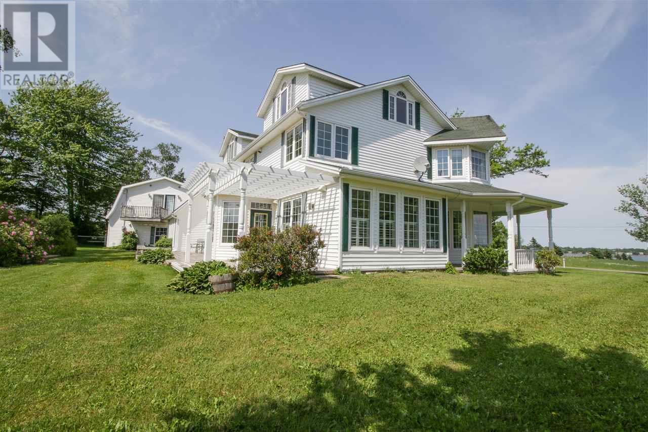 This custom built home with panoramic water views of the Charlottetown Harbour. Its move in ready! As an added bonus, there is a 936 sq. foot in-law suite or office over the triple garage. This could also be a perfect Air B&B area. Families will enjoy the bright and spacious open concept kitchen/great room with a bay window eating area, breakfast bar and a propane fireplace. With plenty of counter and cupboard space, this is the gathering area of the home. Both the dining room and living room with propane fireplace, look out to the views of the Charlottetown Harbour and can easily accommodate large groups of family and friends. Upstairs you?ll find the master suite with a propane fireplace, bay window overlooking the view and a spa like ensuite with a soaker tub, double sinks and separate shower. There are 2 generous size bedrooms on this floor and on the 3rd floor there are 2 more bedrooms which could be playrooms or office space. This home is family friendly with huge mudroom/entry off the triple garage. Being less than 10 minutes to Charlottetown allows one the peace of country style living with the convenience of the city just a short drive away. (id:22211)
