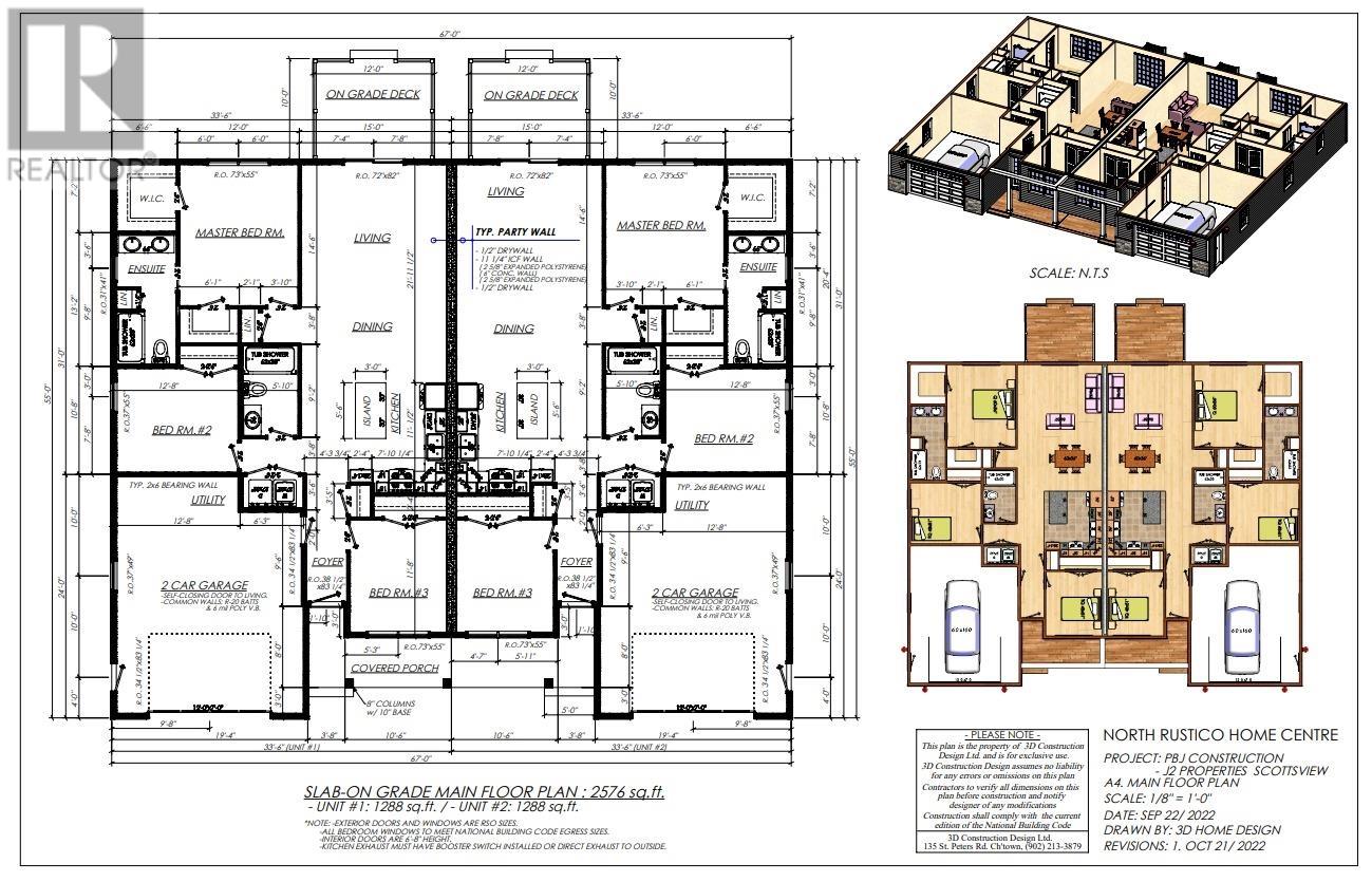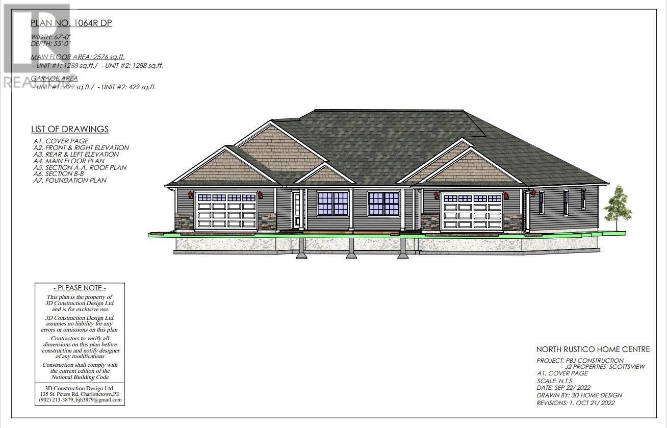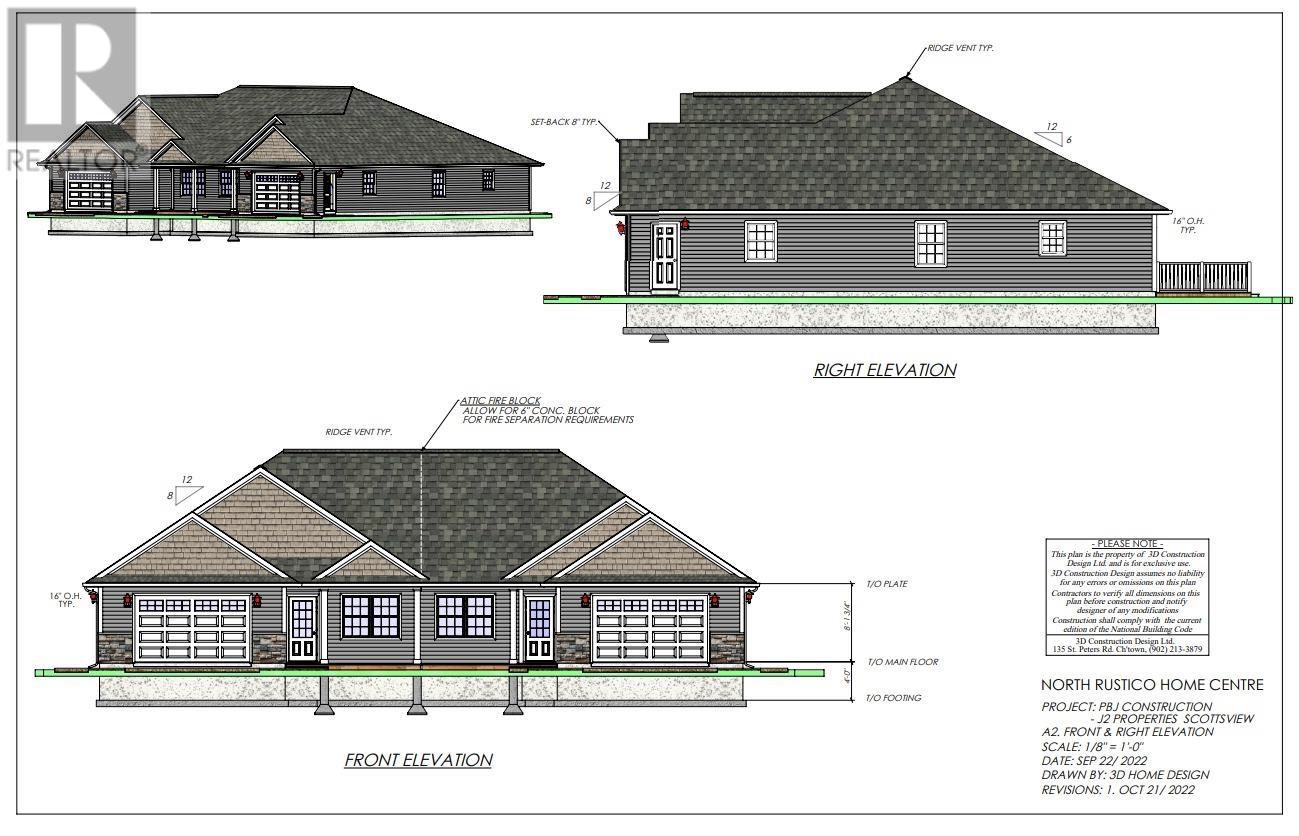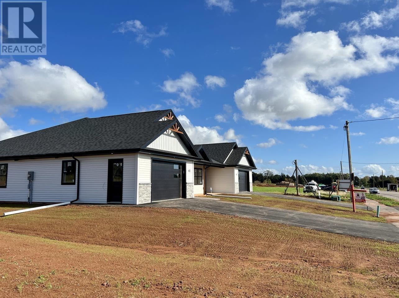 Be the first to own a residence in the new Scottsview Meadows subdivision, nestled in Cornwall, PEI. This semi-detached dwelling, constructed by the prestige contractors of J2 Properties, boasts a large 1288 square feet layout, featuring 3 bedrooms, 2 bathrooms, and an oversized garage. The construction of this property comes with an impressive 8-year lux warranty, highlighting its quality and reliability. Noteworthy features include an ICF party wall designed for noise reduction, electric rads complemented by a ductless heat pump for efficient heating and cooling, R20 batt insulation coupled with 1" foam board on exterior walls, and a generous R50 blown insulation in the attic. The interior showcases a custom kitchen and vanities with full quartz countertops, complete with under-cabinet lighting. The home extends its allure outdoors, offering a back deck accompanied by a privacy fence, a welcoming front covered porch to wind down and filled in ditches. Situated within this upscale, newly developed subdivision is a spacious walking path that seamlessly connects to your front lawn, granting effortless access to the various amenities Cornwall has to offer. The convenience of village life is at your doorstep, including the Independent grocery store, Tim Hortons coffee shop, Village Green Brewery, Murphy's Pharmacy, an Esso gas station, the Canada Post office, numerous dining options, and the community recreation centre. Despite its rural ambience, this home ensures easy access to all necessary amenities, providing an idyllic blend of comfort and convenience. (id:22211)
