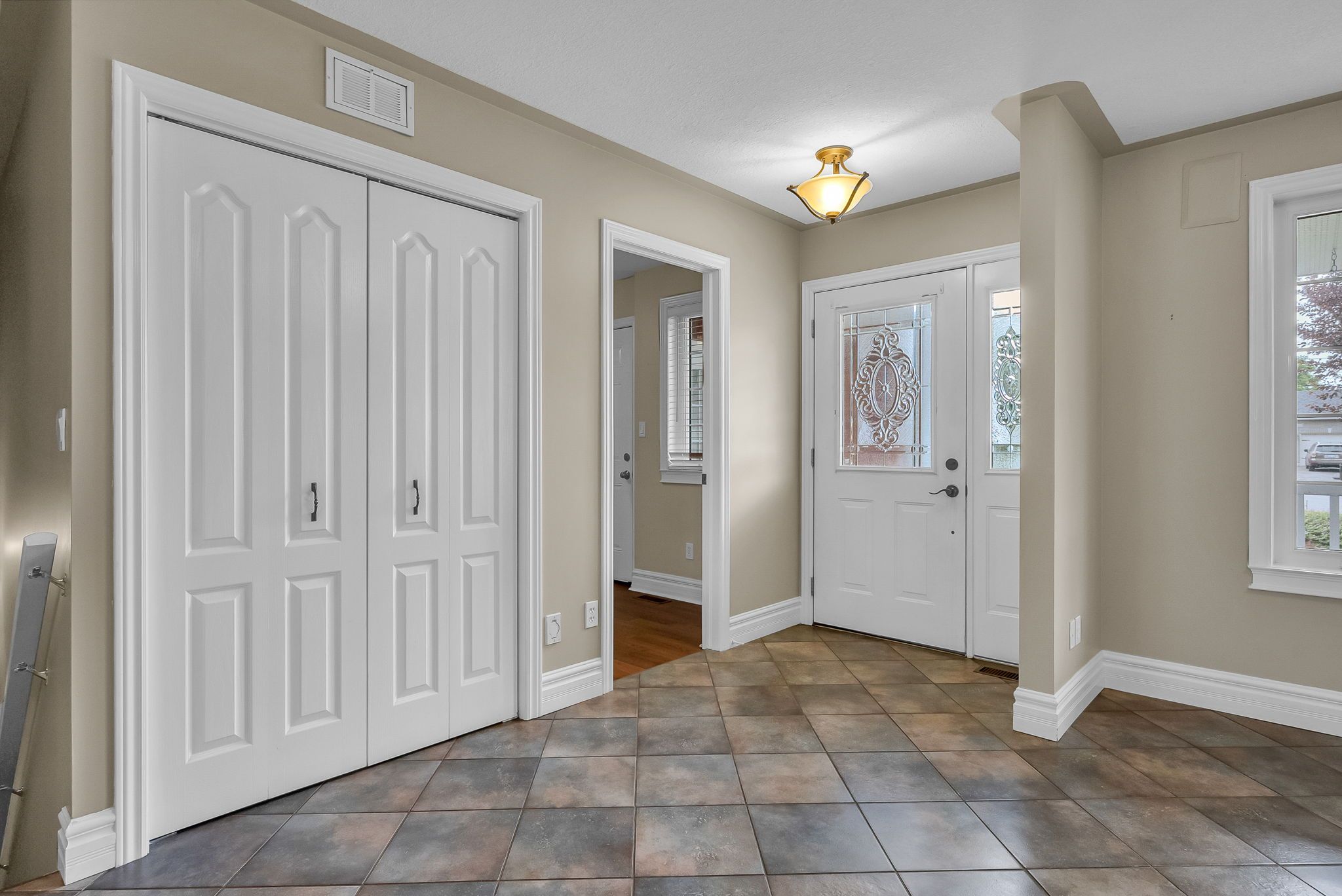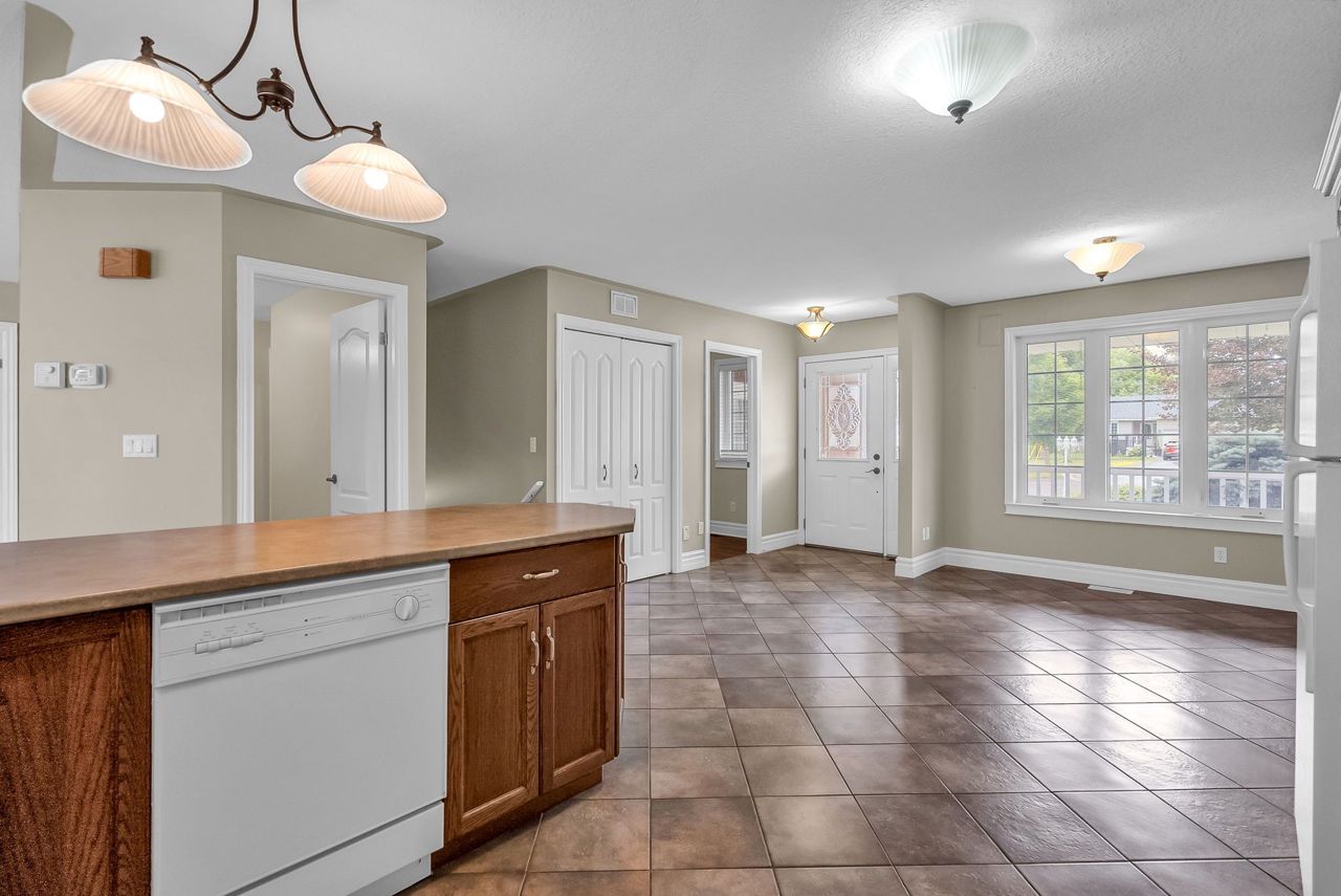 Solid built bungalow by Mike Voskamp in 2005. Offers open concept kitchen and dining room. Walkout from family room to an L-shaped deck overlooking the fenced backyard. Spacious primary bedroom with 4pc bath and laundry. Has a 2nd bedroom and 3pc bath on main floor. 2 car garage has entrance into house. Basement is totally finished with rec room, gas fireplace and walkout to backyard, along with 2pc bath and 3rd bedroom. Utility area offers loads of storage and attached cold room. Excellent location on a quiet court and last house on the left side of court.