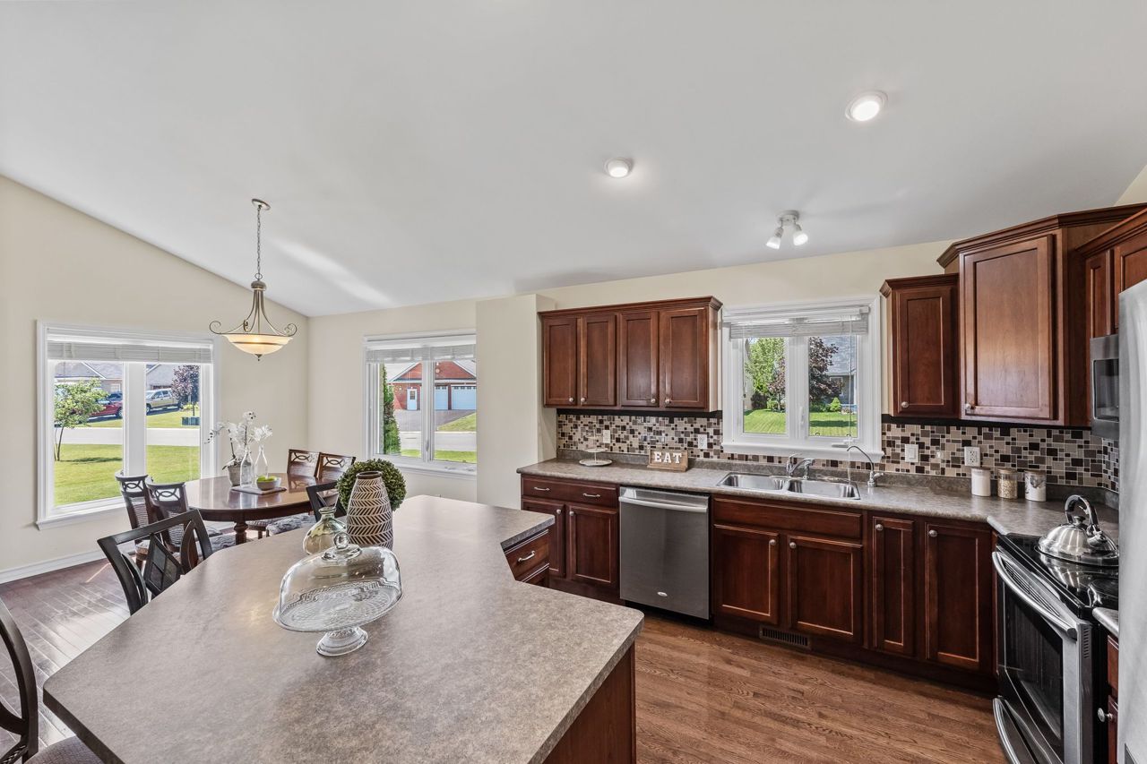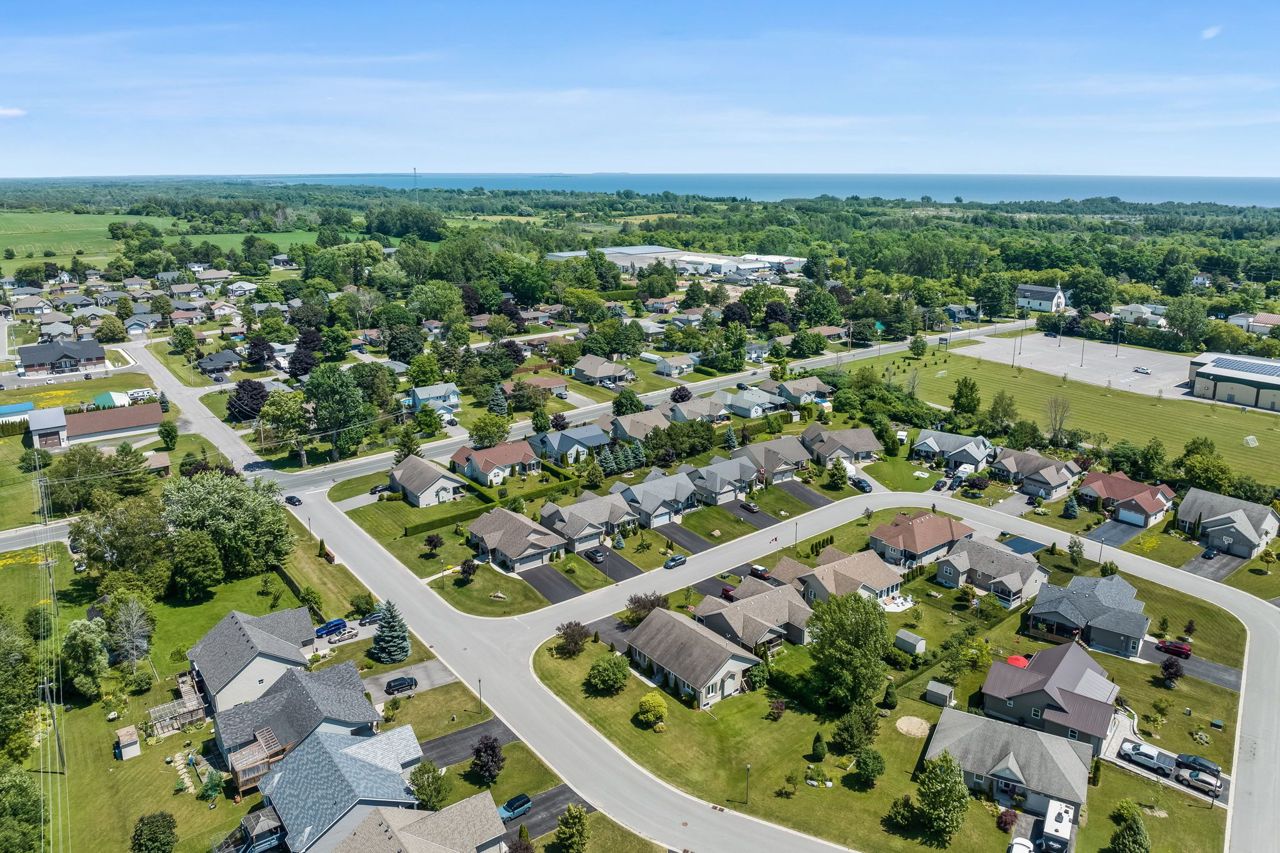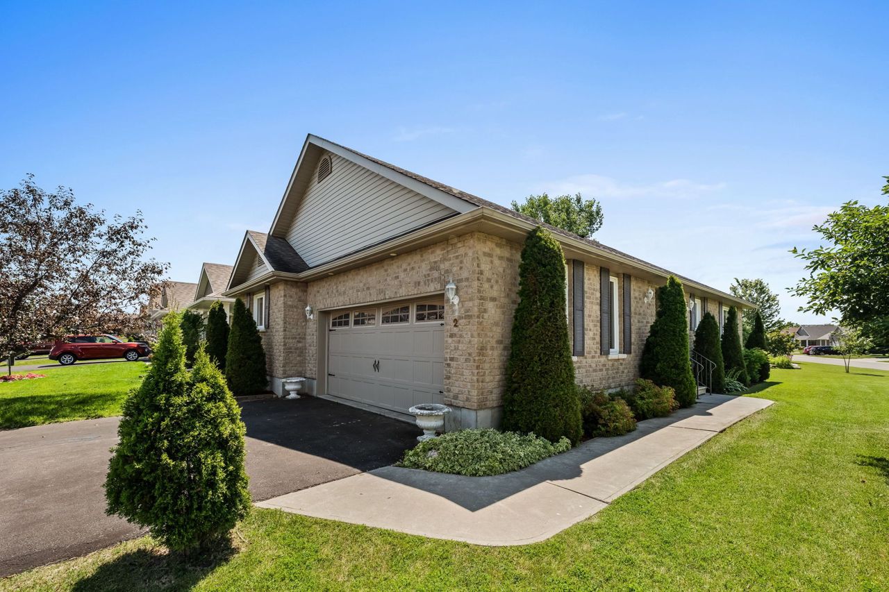 Welcome to 2 Cortland Cr., located in a quiet, friendly subdivision in the quaint town of Colborne, 90 minutes from Toronto and a short drive to golf courses, marinas, wineries and the 401. This 1,200 sq ft energy efficient bungalow, built in 2008 as the builder's model home, is ideal for both retirees and young families. The main floor features an open concept floor plan with warm-toned hardwood floors in the kitchen, living and dining areas; oversized windows and vaulted ceiling enhance the feeling of spaciousness. The kitchen with cherry cabinetry includes stainless steel appliances and central island. Cozy up to the natural gas fireplace in the living room this winter, and enjoy the covered porch this summer, also ideal for year-round barbecuing. The large primary bedroom with walk-in closet and 3-pc bathroom; second bedroom and a second bathroom with a double sink.Full basement with 8’ ceiling awaits your personal touches. A ground heating system makes this home energy efficient!