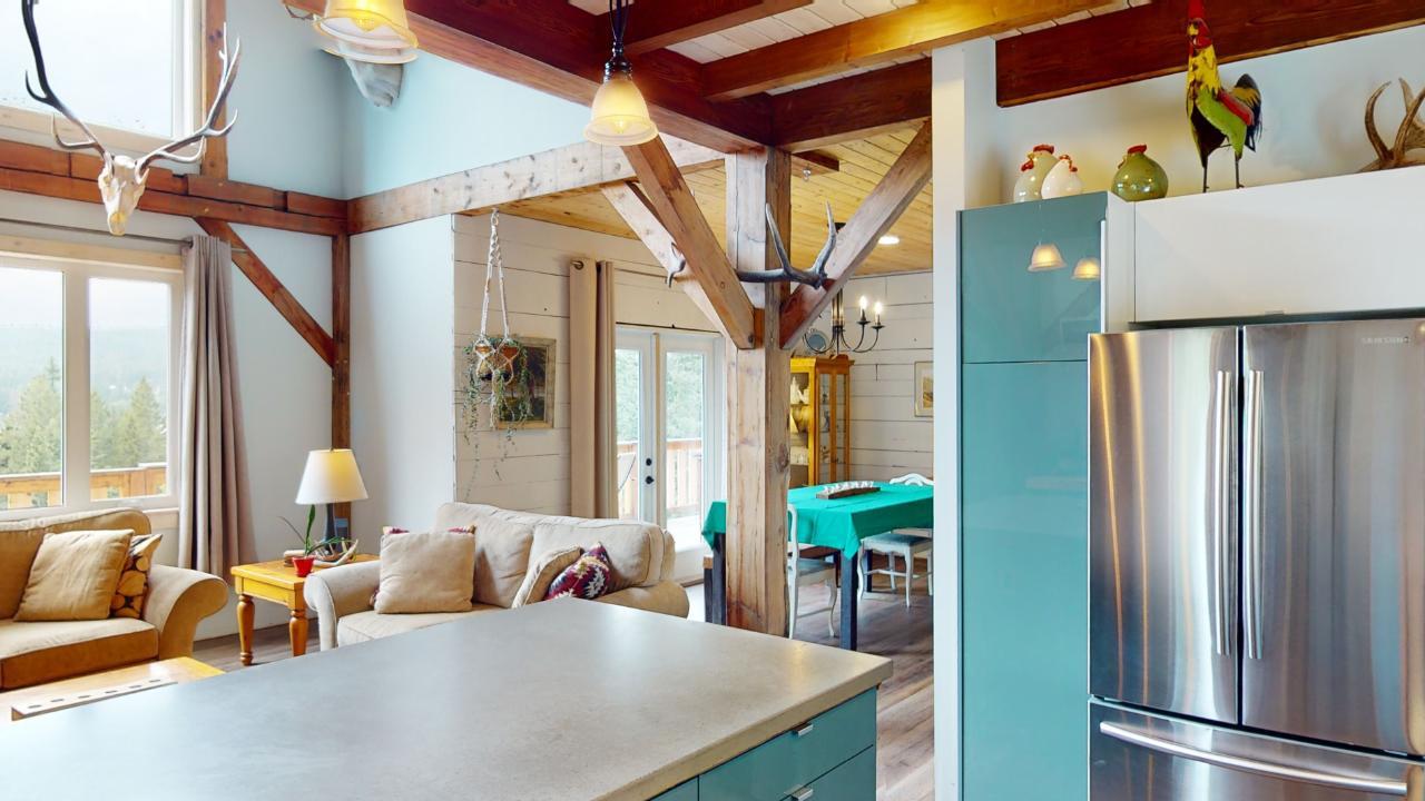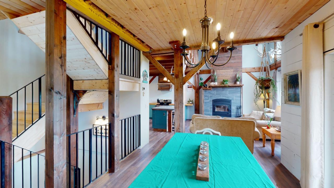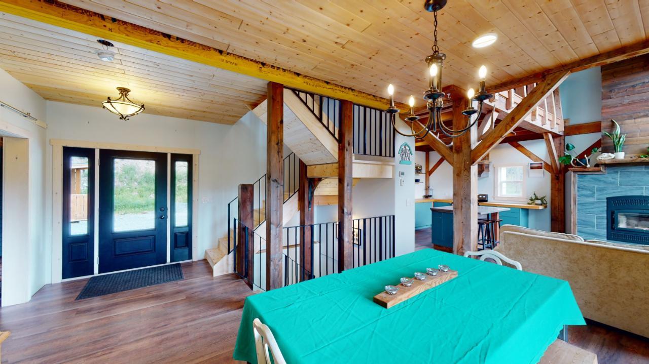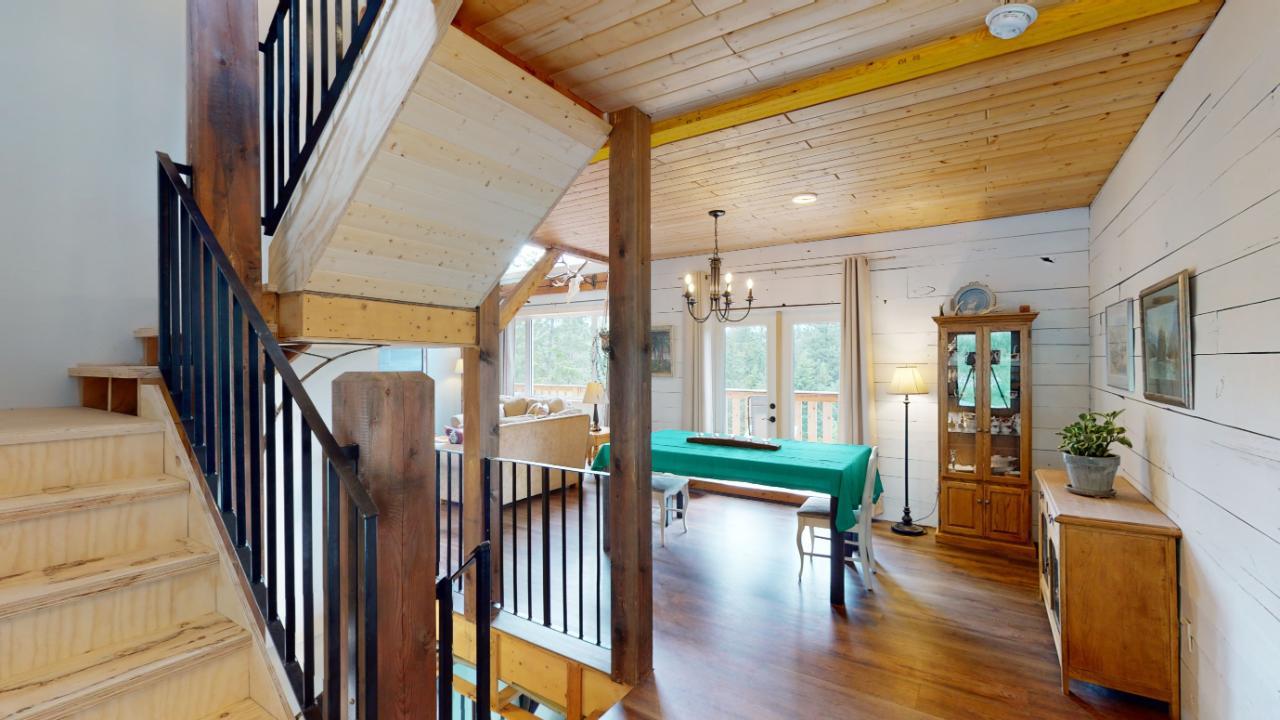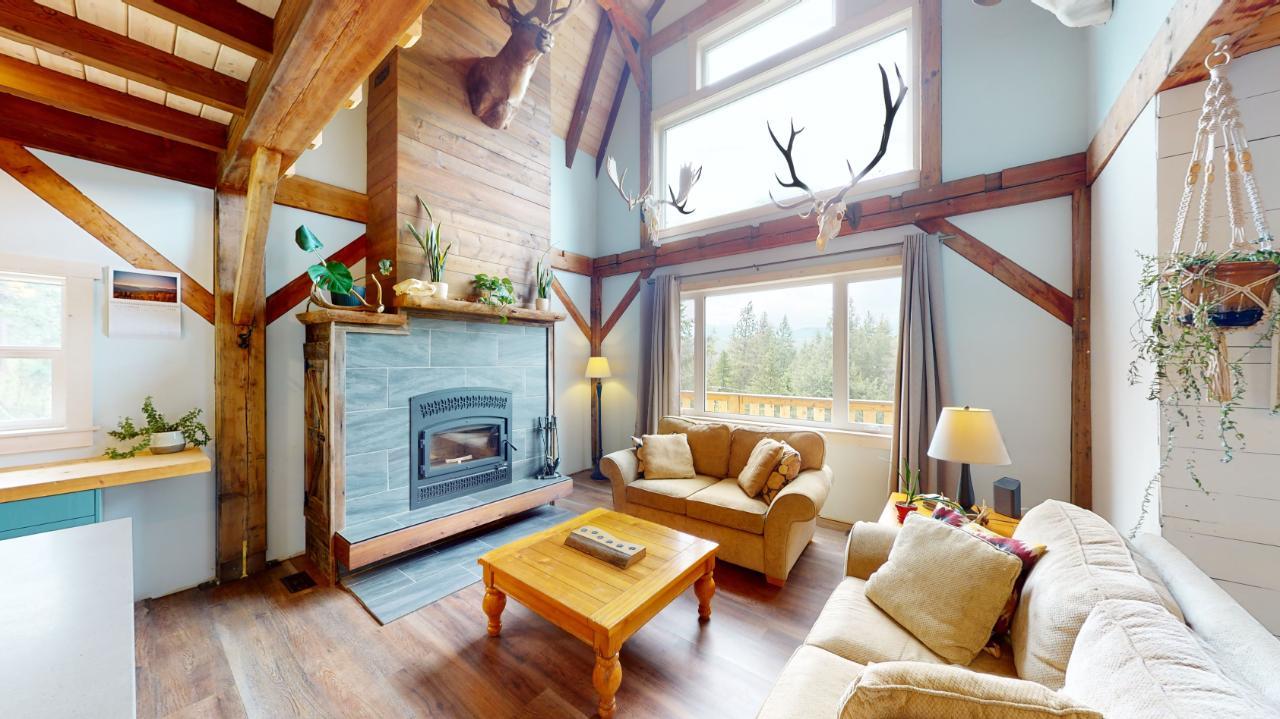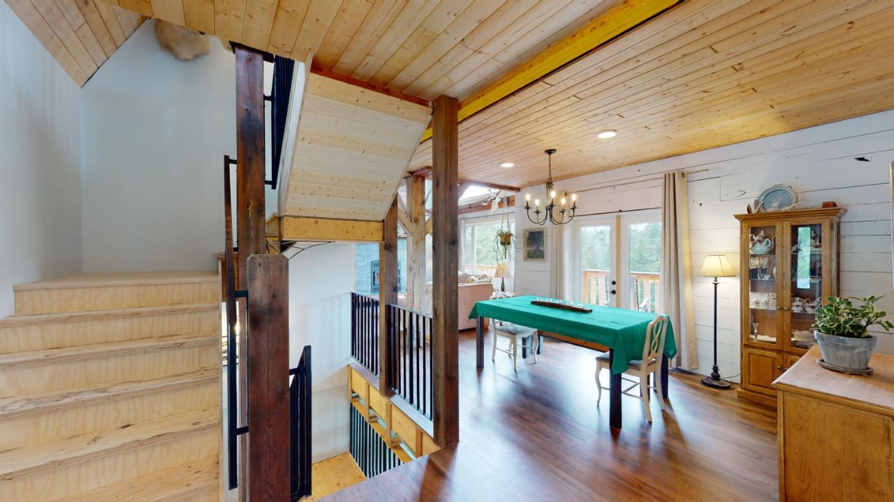 Introducing the perfect retreat at 793 Silver Creek Road! Step into your dream home with its unique open beam concept and towering vaulted 20 ft ceilings that will take your breath away. This stunning property boasts a state-of-the-art boiler system with in-floor heating ensuring comfort and warmth in every corner. The beautiful loft area offers a versatile space for an office, library, or relaxation area. The bright open kitchen is a chef's delight, featuring modern appliances and ample counter space for all your culinary creations. Imagine hosting family and friends on the spacious wrap-around deck, where you can soak up the sun and enjoy breathtaking views of the surrounding natural beauty. Cozy up on those chilly winter evenings in front of not one, but two wood-burning fireplaces, creating a warm and inviting ambiance. The master bedroom is a true sanctuary with a generous 4-piece ensuite and a huge walk-in closet, providing ample storage for your wardrobe and accessories. The stylish rear entrance adds a touch of character to this remarkable home. With a 200 amp panel, you'll never have to worry about running out of electrical capacity. Situated on an expansive 3.52-acre lot in the desirable Silver Creek area, this property offers the perfect blend of tranquility and convenience. For those with hobbies or extra space needs, the 24 x 28 2-storey shop is an ideal bonus. It can be set up as a potential in-law suite, additional shop space, or your very own man cave. The possibilities are endless! (id:22211)