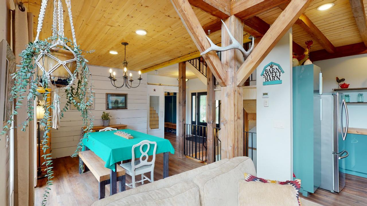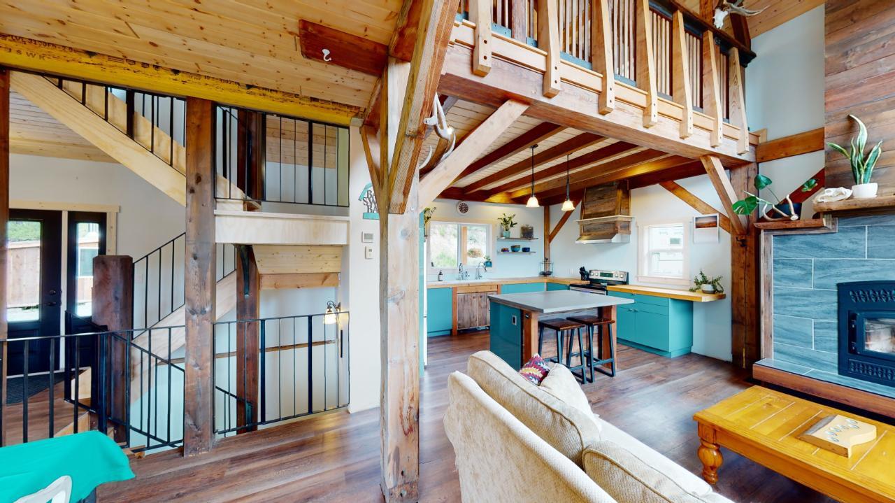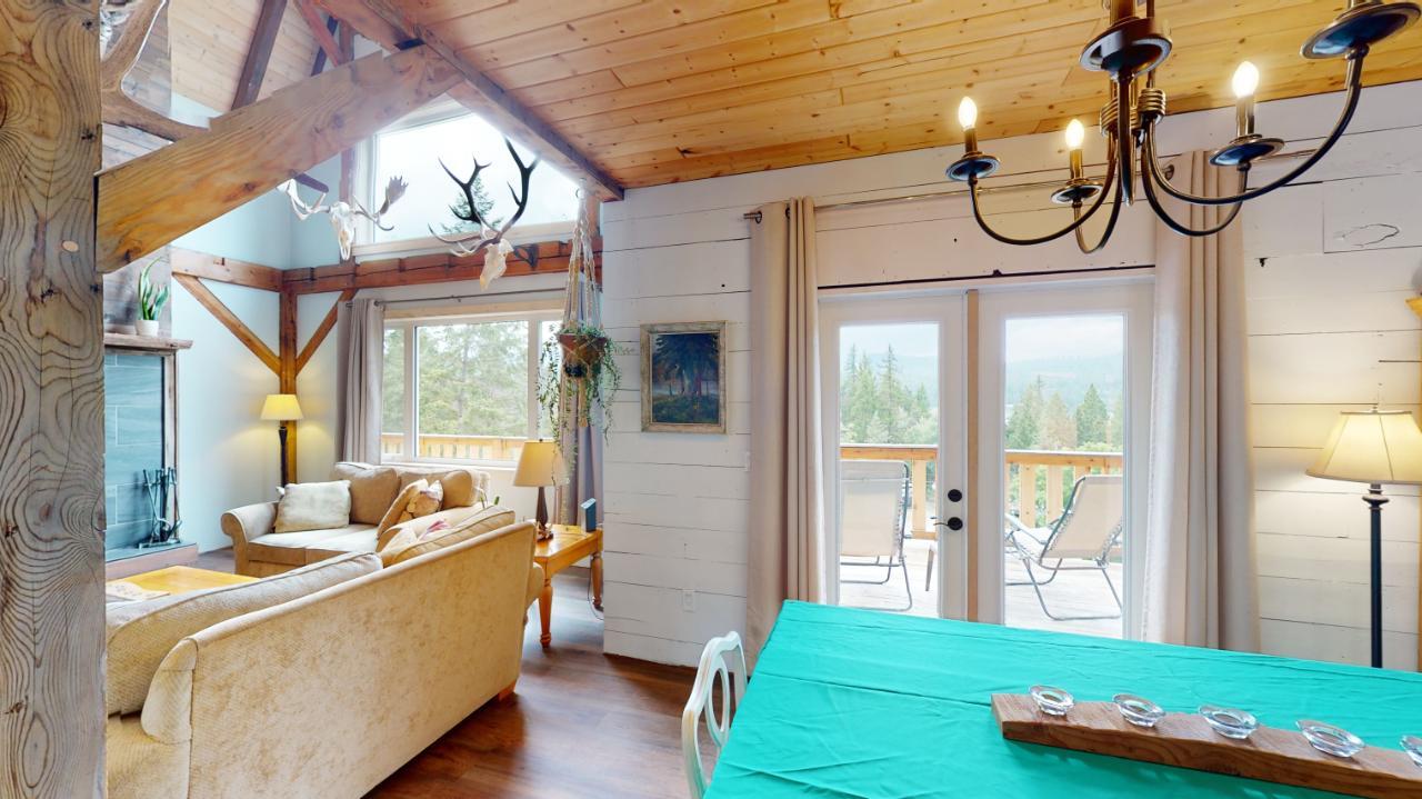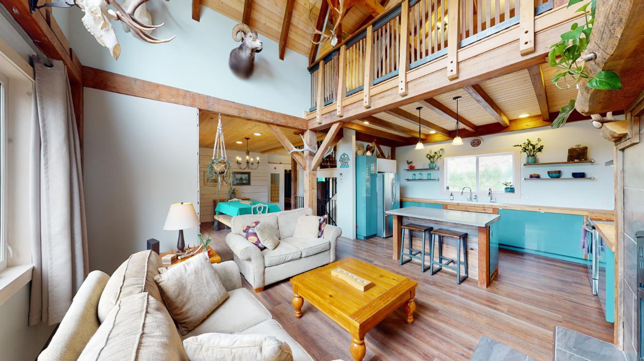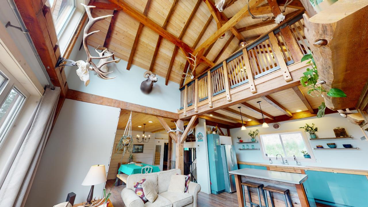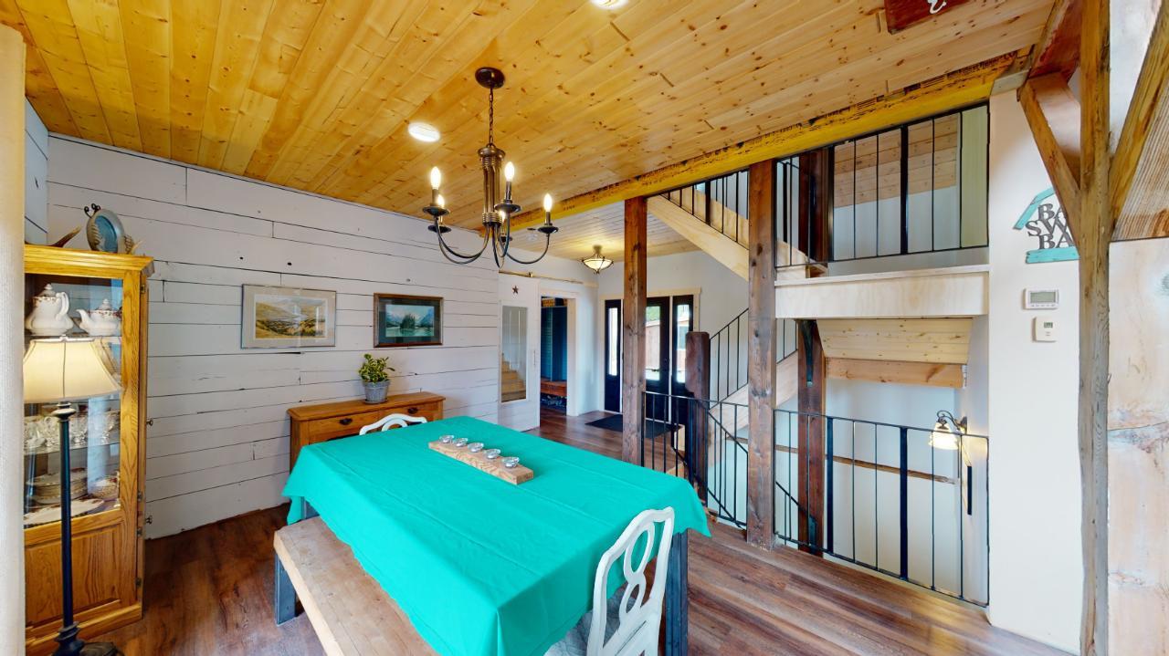 Introducing the perfect retreat at 793 Silver Creek Road! Step into your dream home with its unique open beam concept and towering vaulted 20 ft ceilings that will take your breath away. This stunning property boasts a state-of-the-art boiler system with in-floor heating ensuring comfort and warmth in every corner. The beautiful loft area offers a versatile space for an office, library, or relaxation area. The bright open kitchen is a chef's delight, featuring modern appliances and ample counter space for all your culinary creations. Imagine hosting family and friends on the spacious wrap-around deck, where you can soak up the sun and enjoy breathtaking views of the surrounding natural beauty. Cozy up on those chilly winter evenings in front of not one, but two wood-burning fireplaces, creating a warm and inviting ambiance. The master bedroom is a true sanctuary with a generous 4-piece ensuite and a huge walk-in closet, providing ample storage for your wardrobe and accessories. The stylish rear entrance adds a touch of character to this remarkable home. With a 200 amp panel, you'll never have to worry about running out of electrical capacity. Situated on an expansive 3.52-acre lot in the desirable Silver Creek area, this property offers the perfect blend of tranquility and convenience. For those with hobbies or extra space needs, the 24 x 28 2-storey shop is an ideal bonus. It can be set up as a potential in-law suite, additional shop space, or your very own man cave. The possibilities are endless! (id:22211)