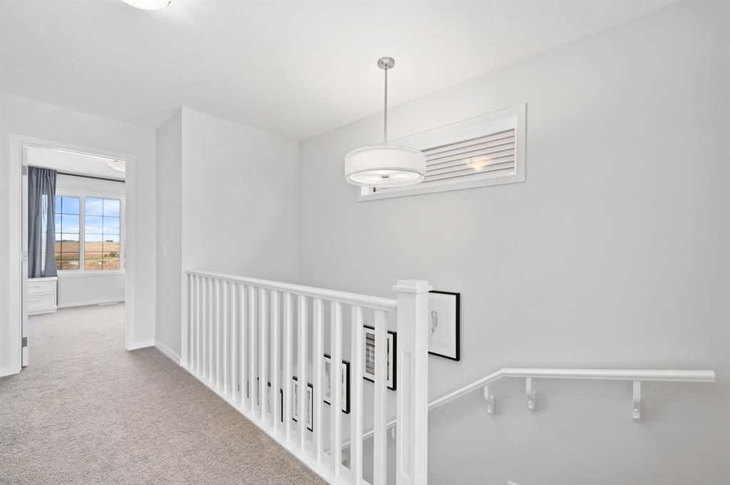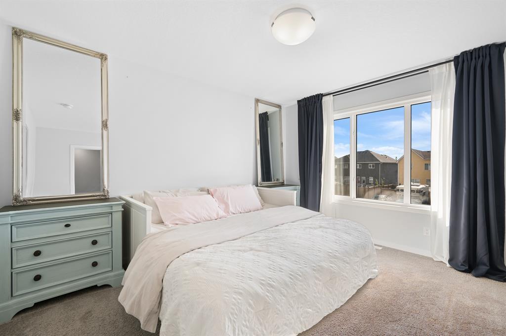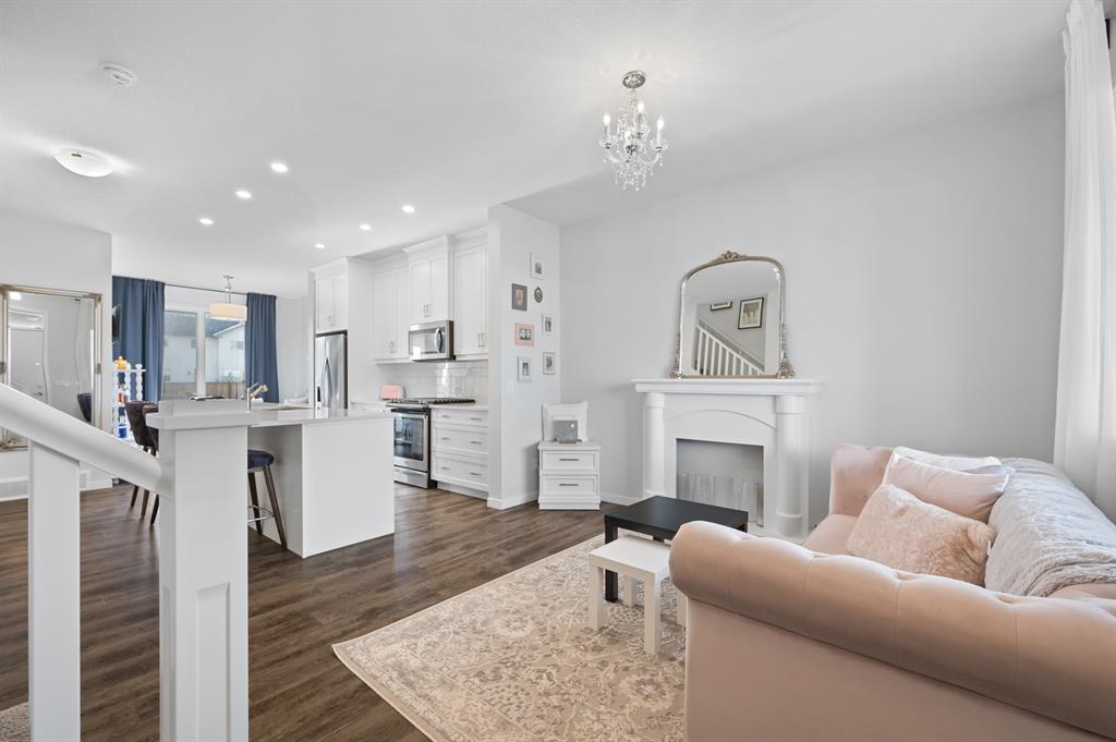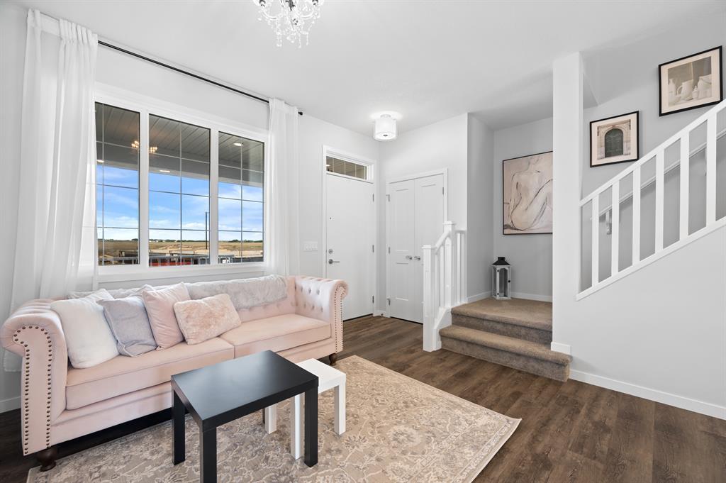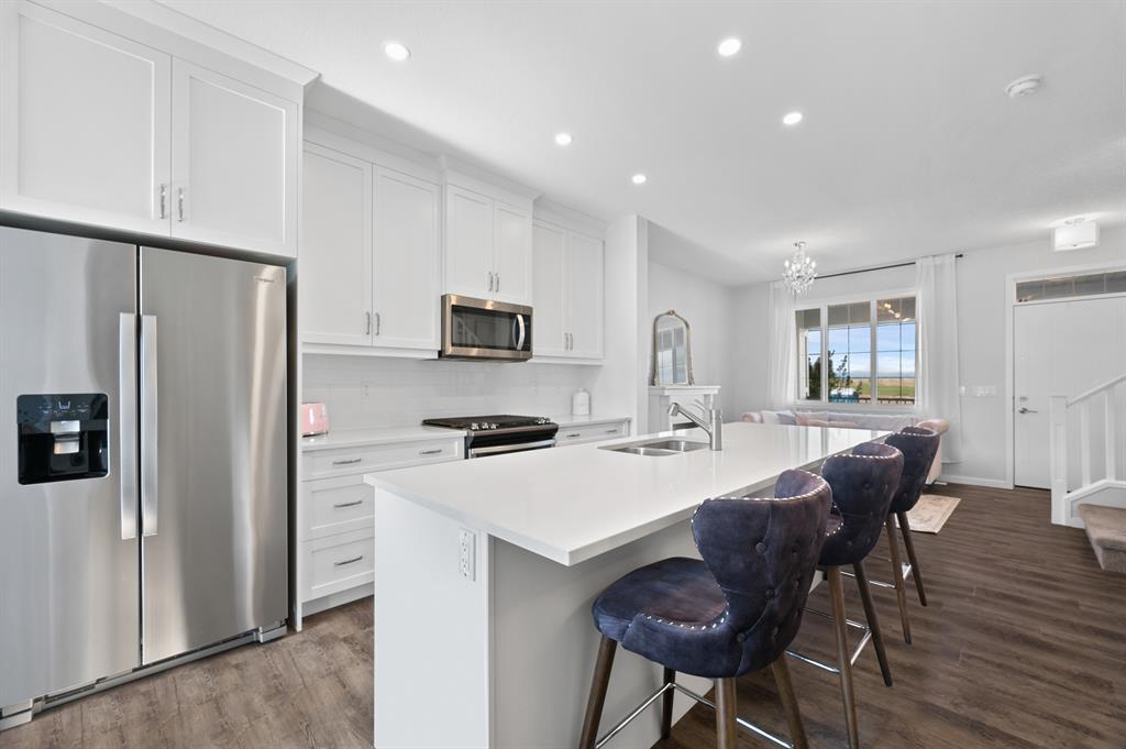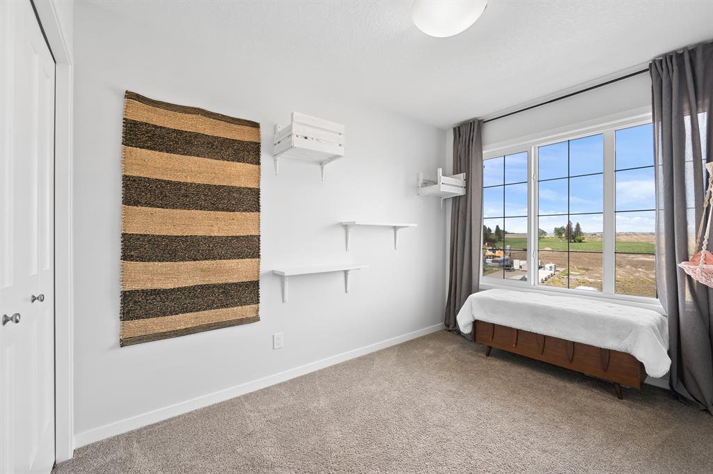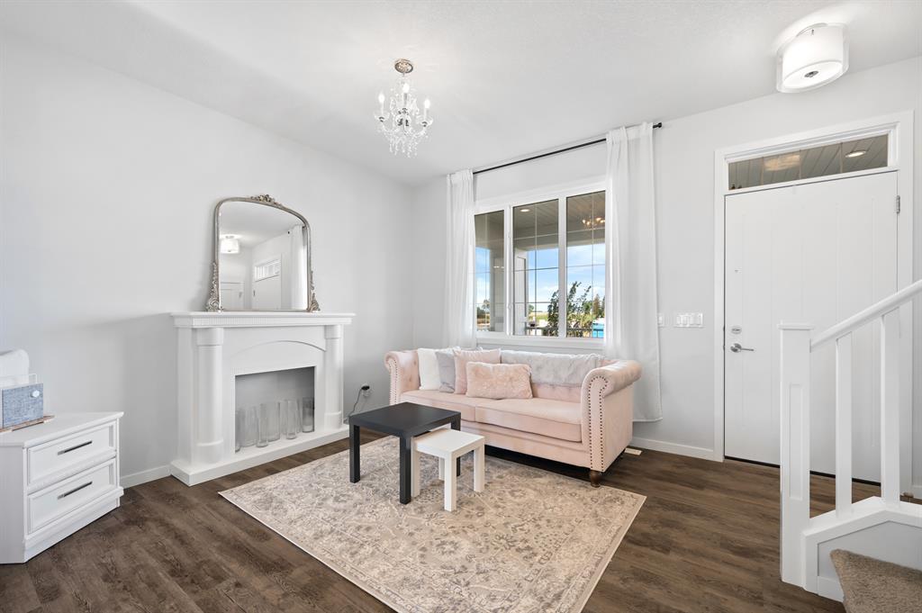 Welcome to "The Noah" by Dreams in Crossfield! This stunning 2020 new build is a single-family home with $40K in upgrades is designed to exceed your expectations. With its impeccable features and fantastic location, this property offers a delightful living experience. As you step inside, you'll immediately notice the airy and spacious feel created by the 9-foot ceilings on the main floor. The rich luxury vinyl plank flooring adds a touch of elegance, while the large TRIPLE PANE windows flood the space with abundant sunshine. A charming faux fireplace serves as a cozy focal point, perfect for relaxing evenings. The kitchen is a true culinary haven, boasting numerous upgrades. Prepare meals with ease on the 9ft island with quartz countertops, surrounded by floor-to-ceiling shaker-style cabinets that provide ample storage space. The gas range and stainless steel appliances add a modern touch, while the soft-close cabinetry ensures a seamless experience. The walk-in pantry offers additional convenience, making organization a breeze. The main floor also features a rear dining room, ideal for hosting, as well as a convenient 1/2 bath powder room. Moving upstairs, the primary suite awaits, offering generous space for a king bed and a walk-in closet to accommodate your wardrobe needs and a stylish barn door. The ensuite is a luxurious retreat, featuring a stand-up shower tiled to the ceiling. Two other good-sized bedrooms offer breathtaking mountain views. Completing this level is a 3pc bathroom and a full laundry room, adding convenience to your daily routine. The lower level presents a versatile living room, providing a cozy space for entertainment or relaxation. An additional bedroom and a 4pc bathroom make the lower level perfect for accommodating guests or family. The backyard is a blank canvas, awaiting your personal touch to transform it into your dream outdoor oasis. Take advantage of the untapped potential to design a space that suits your unique lifestyle and pref erences. Crossfield offers a multitude of community amenities including; community garden boxes, 4 kilometers of walking trails, 5 acres of protected wetlands, and 20 acres of green spaces that surround the area. Engage in outdoor activities at the outdoor hockey rink, skateboard park, sports fields, and mini soccer field. The stocked pond provides opportunities for fishing, while the picnic areas with fire pits, splash park, and playground ensure endless fun for the whole family. Don't miss the opportunity to make "The Noah" your dream home. (id:22211)