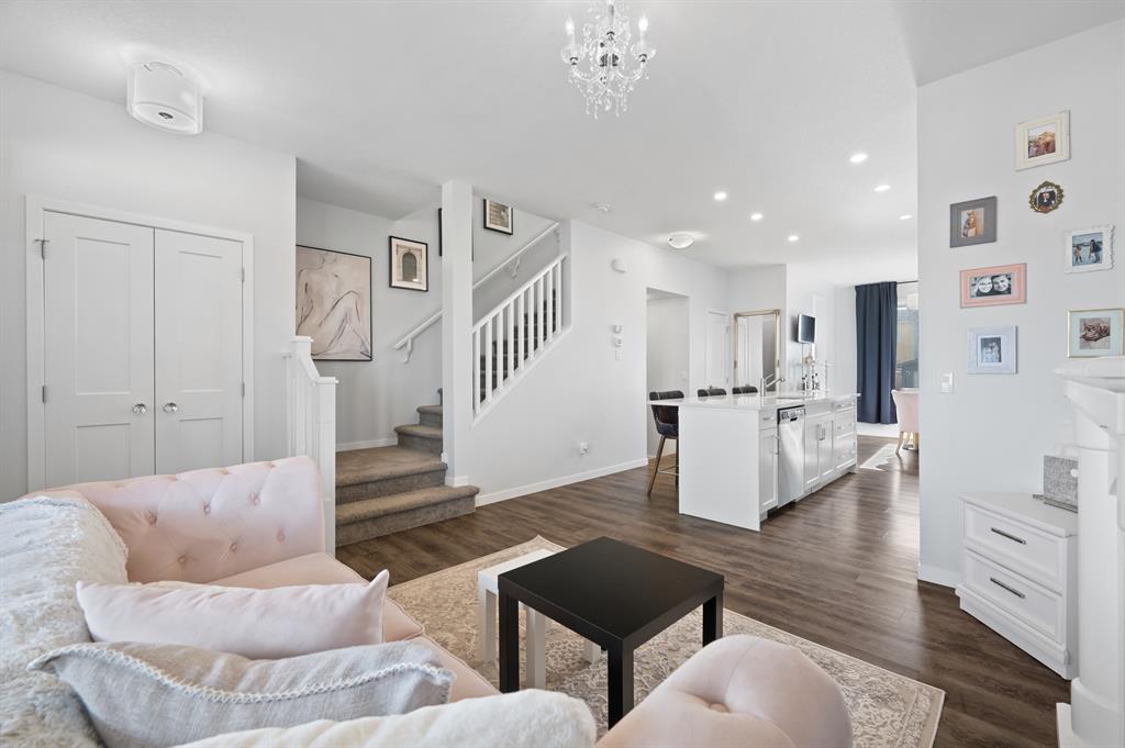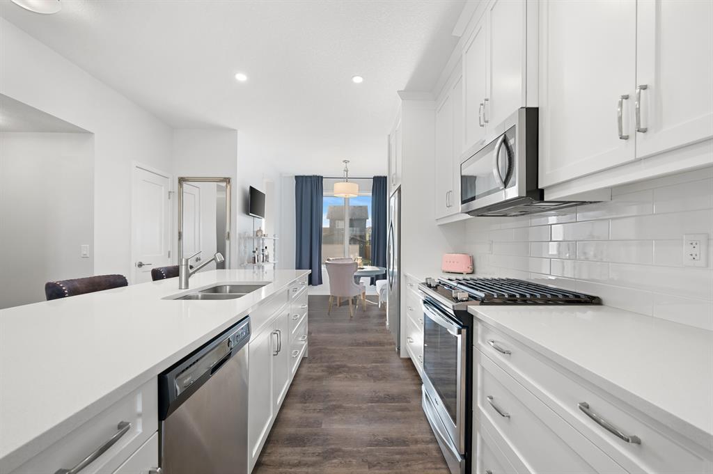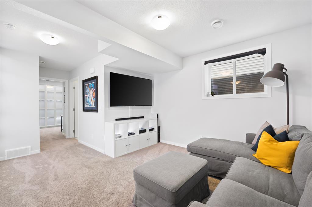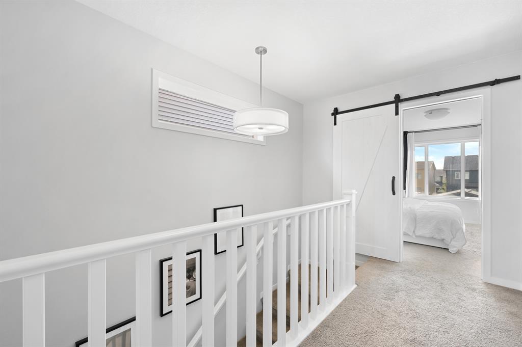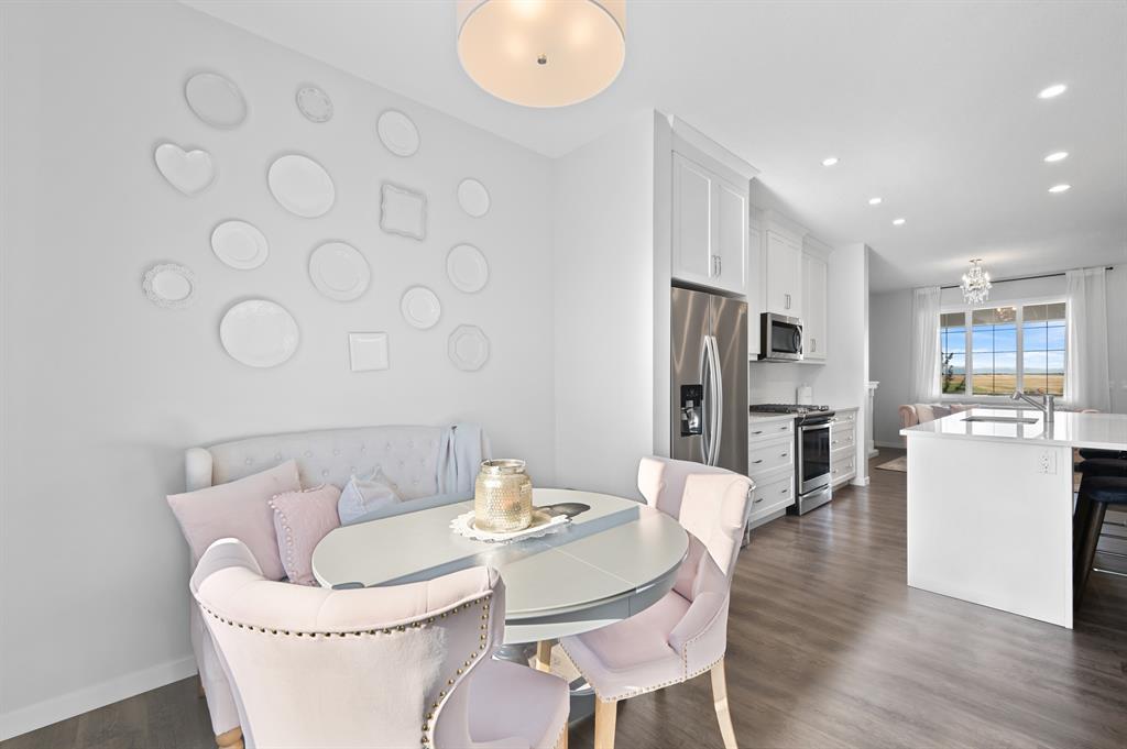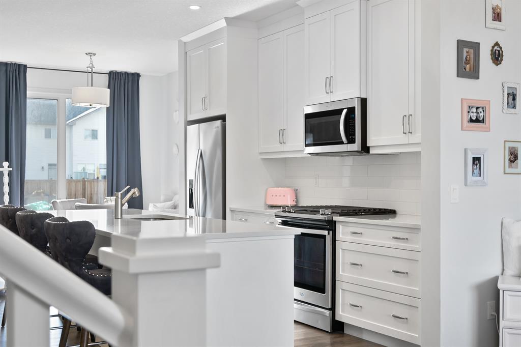 Welcome to "The Noah" by Dreams in Crossfield! This stunning 2020 new build is a single-family home with $40K in upgrades is designed to exceed your expectations. With its impeccable features and fantastic location, this property offers a delightful living experience. As you step inside, you'll immediately notice the airy and spacious feel created by the 9-foot ceilings on the main floor. The rich luxury vinyl plank flooring adds a touch of elegance, while the large TRIPLE PANE windows flood the space with abundant sunshine. A charming faux fireplace serves as a cozy focal point, perfect for relaxing evenings. The kitchen is a true culinary haven, boasting numerous upgrades. Prepare meals with ease on the 9ft island with quartz countertops, surrounded by floor-to-ceiling shaker-style cabinets that provide ample storage space. The gas range and stainless steel appliances add a modern touch, while the soft-close cabinetry ensures a seamless experience. The walk-in pantry offers additional convenience, making organization a breeze. The main floor also features a rear dining room, ideal for hosting, as well as a convenient 1/2 bath powder room. Moving upstairs, the primary suite awaits, offering generous space for a king bed and a walk-in closet to accommodate your wardrobe needs and a stylish barn door. The ensuite is a luxurious retreat, featuring a stand-up shower tiled to the ceiling. Two other good-sized bedrooms offer breathtaking mountain views. Completing this level is a 3pc bathroom and a full laundry room, adding convenience to your daily routine. The lower level presents a versatile living room, providing a cozy space for entertainment or relaxation. An additional bedroom and a 4pc bathroom make the lower level perfect for accommodating guests or family. The backyard is a blank canvas, awaiting your personal touch to transform it into your dream outdoor oasis. Take advantage of the untapped potential to design a space that suits your unique lifestyle and pref erences. Crossfield offers a multitude of community amenities including; community garden boxes, 4 kilometers of walking trails, 5 acres of protected wetlands, and 20 acres of green spaces that surround the area. Engage in outdoor activities at the outdoor hockey rink, skateboard park, sports fields, and mini soccer field. The stocked pond provides opportunities for fishing, while the picnic areas with fire pits, splash park, and playground ensure endless fun for the whole family. Don't miss the opportunity to make "The Noah" your dream home. (id:22211)